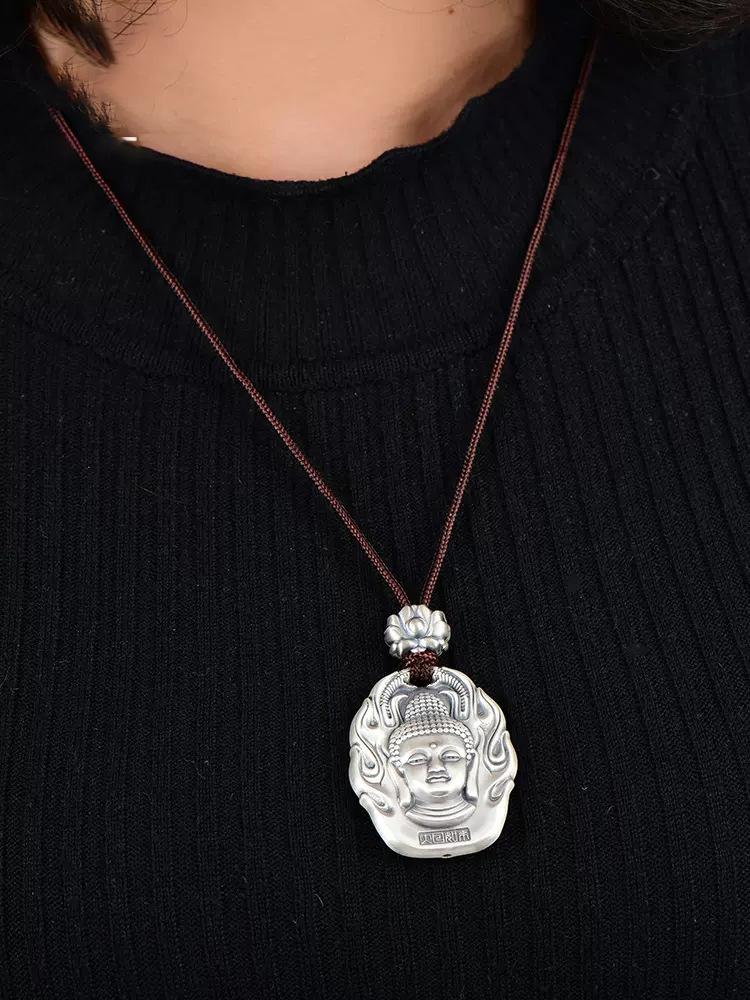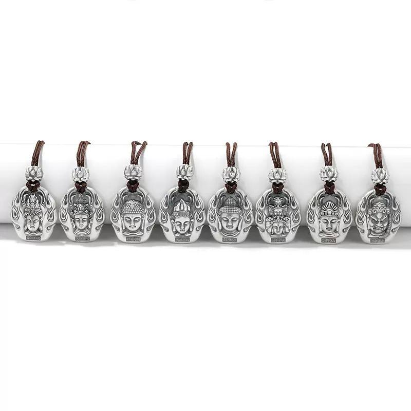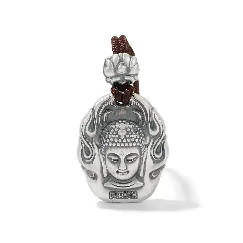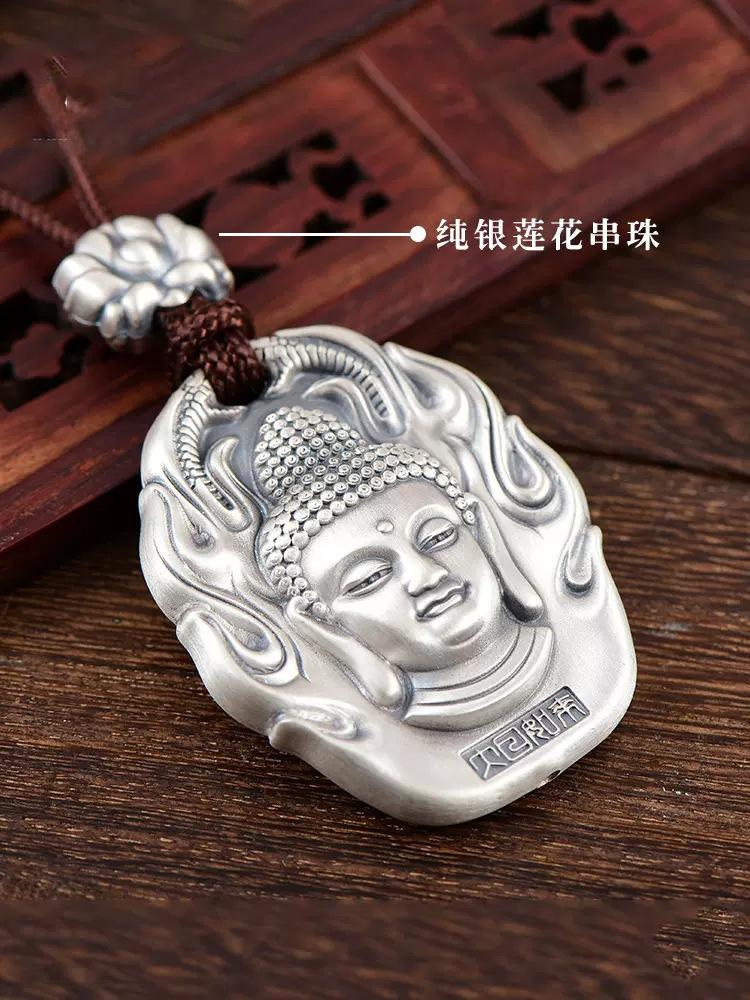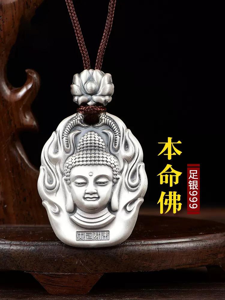 Colgante de Buda de plata esterlina S999 para hombre y mujer, plata de fútbol, doce signos del zodíaco, gran día, Buda Amitabha, collar colgante