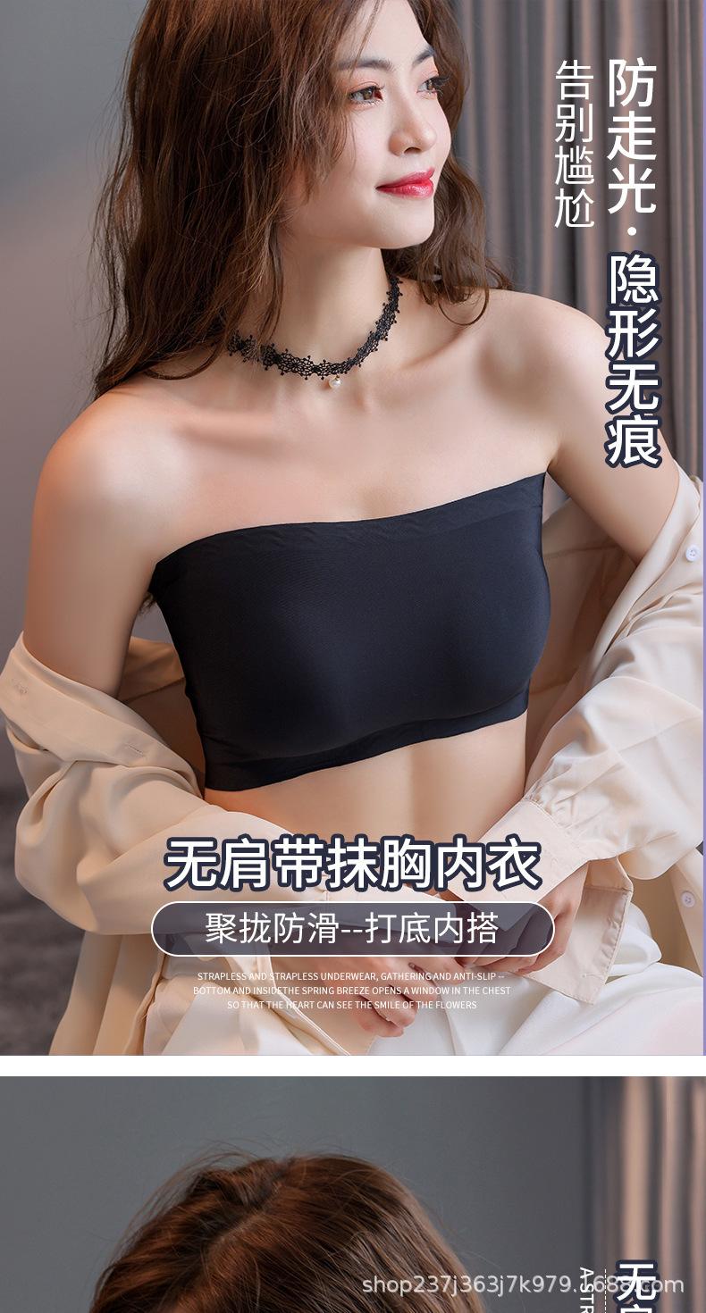 Ropa interior sin tirantes para mujer, push up, pecho pequeño, antideslizante, envuelto en el pecho, antiexposición, sin costuras, parte superior de tubo, interior invisible, sujetador de belleza en la espalda