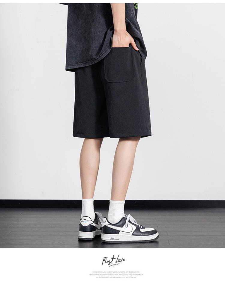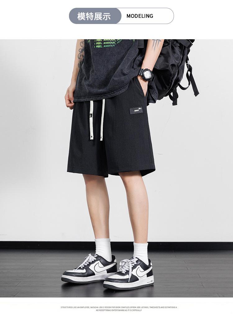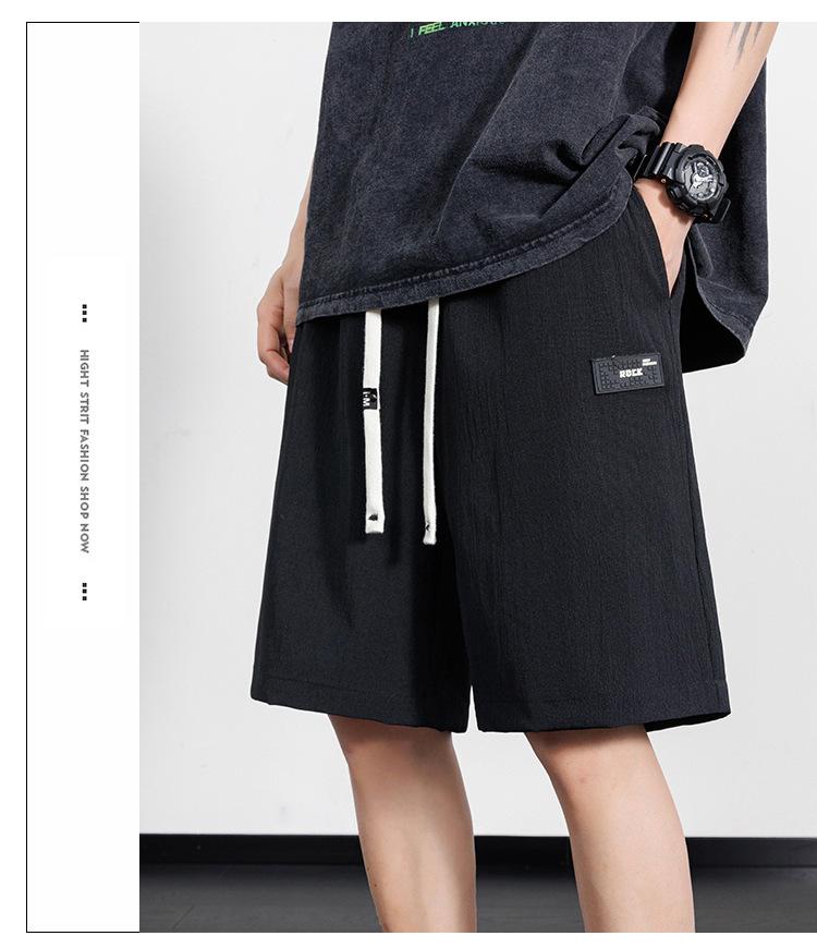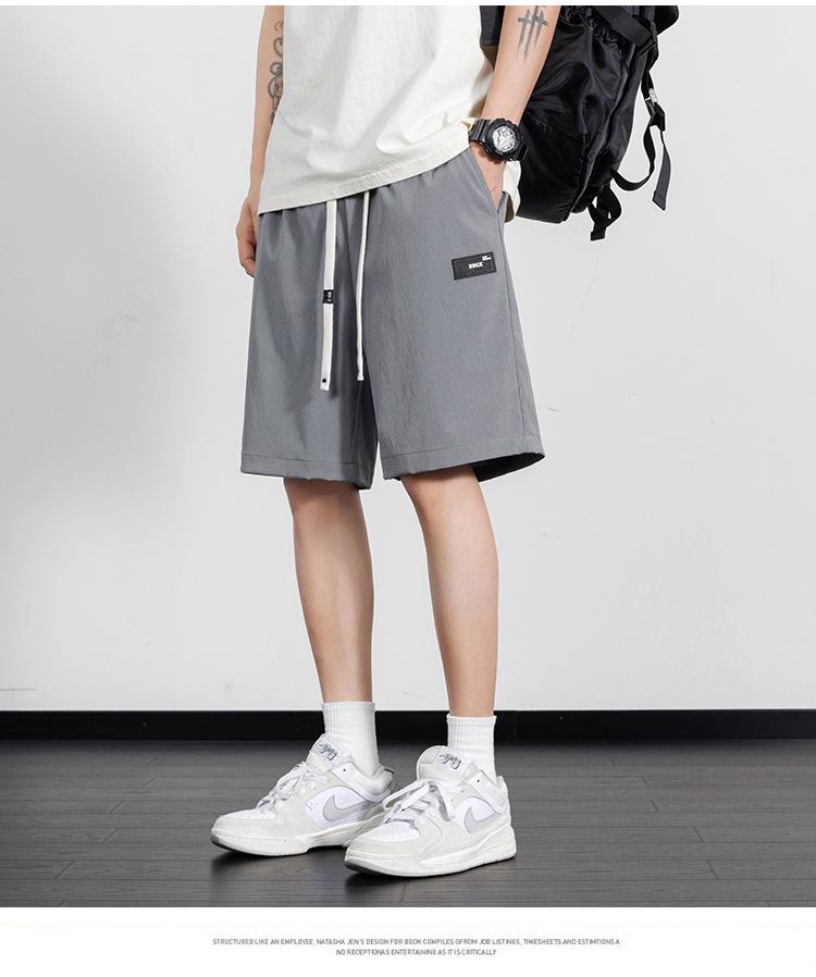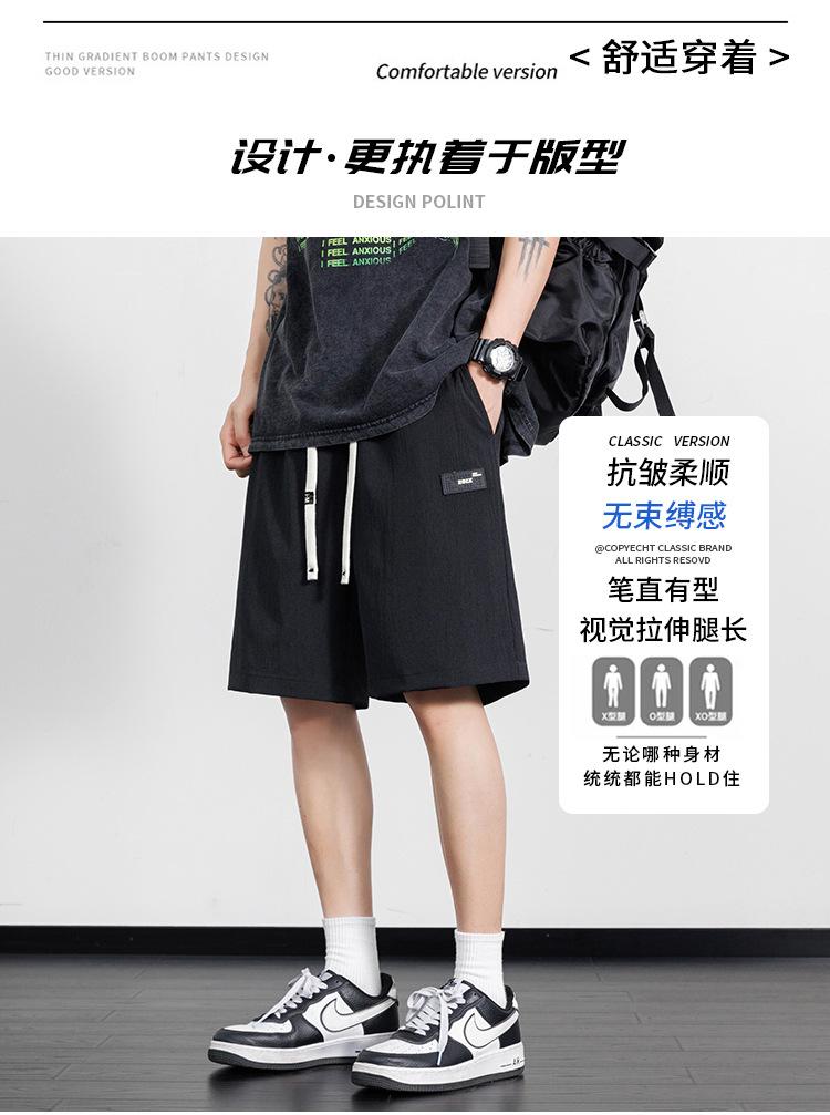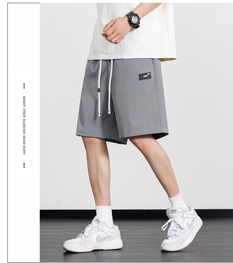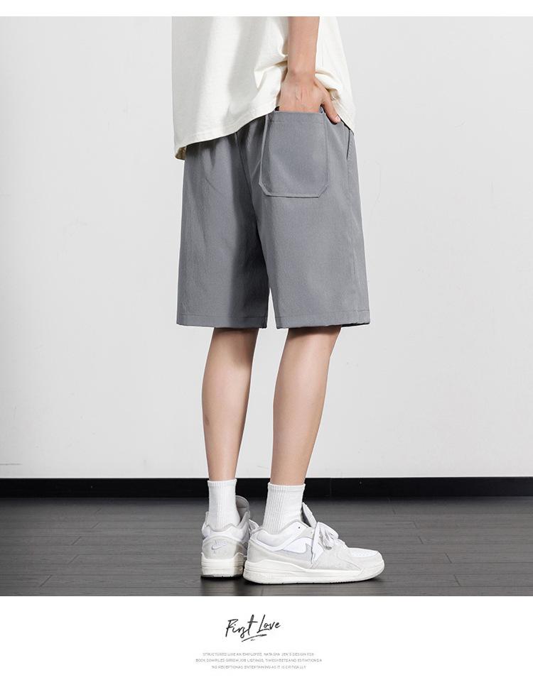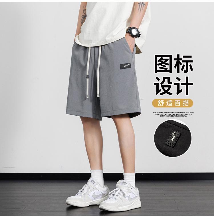 Pantalones cortos casuales de seda de hielo para hombre, pantalones casuales de moda de verano para adolescentes, pantalones rectos sueltos.
