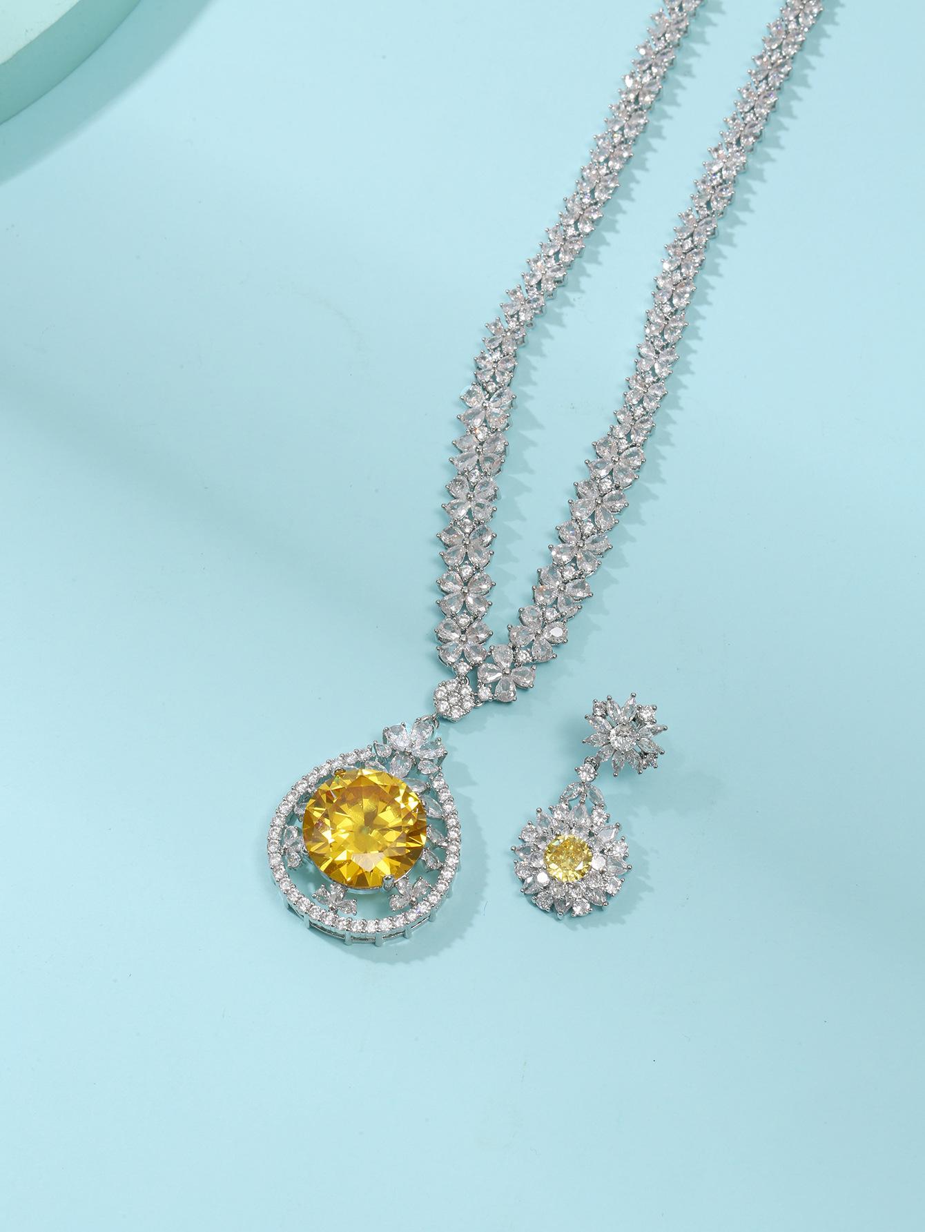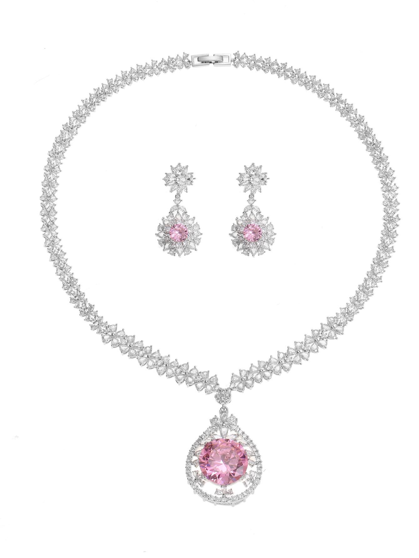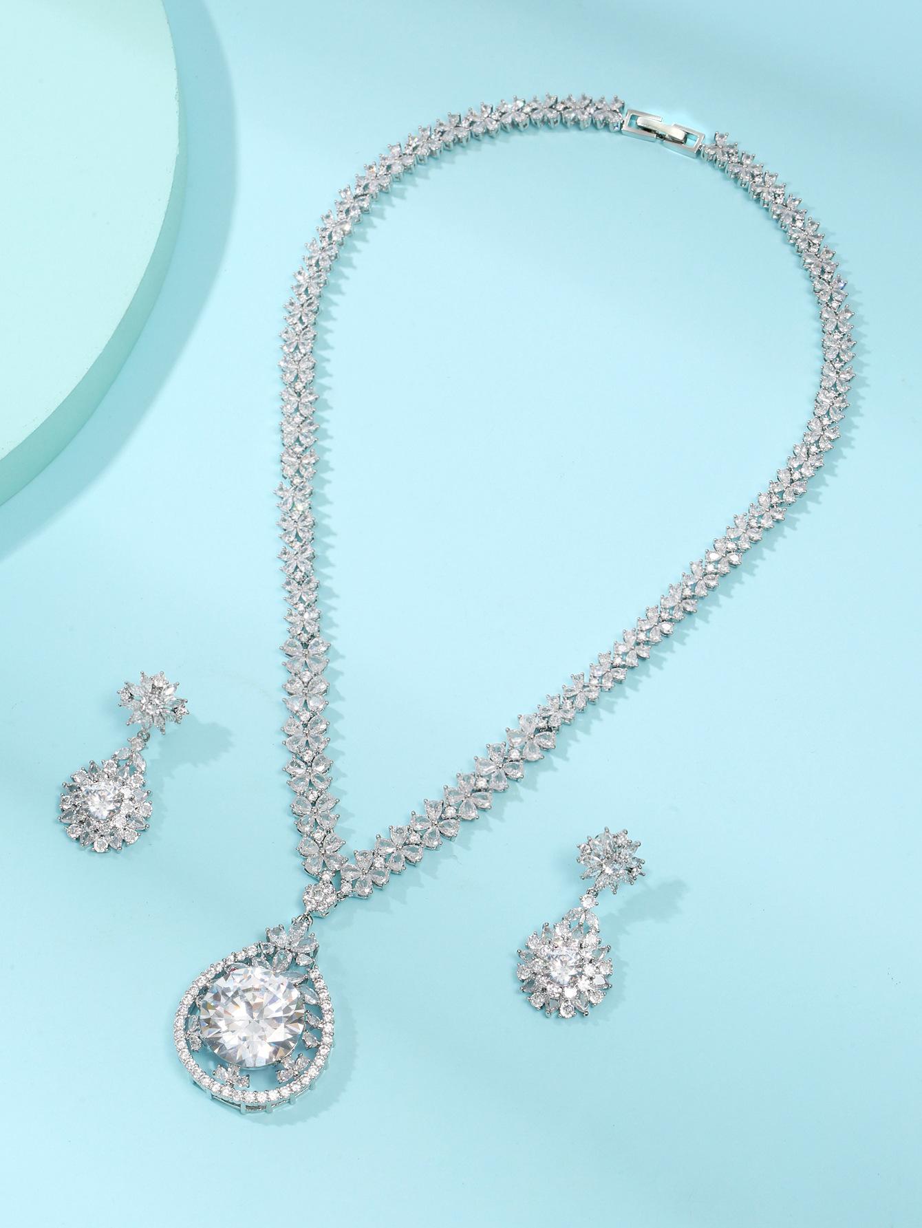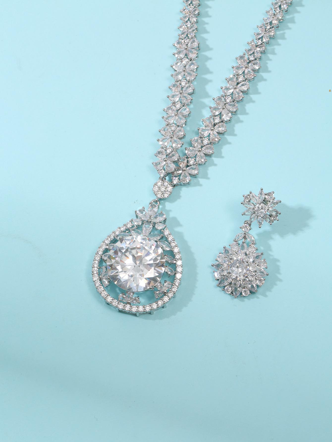 Collar y pendientes de circonita transfronterizos europeos y americanos, ideal para bodas, cenas, joyas de alta gama, decoración floral, ropa festiva para mujer.