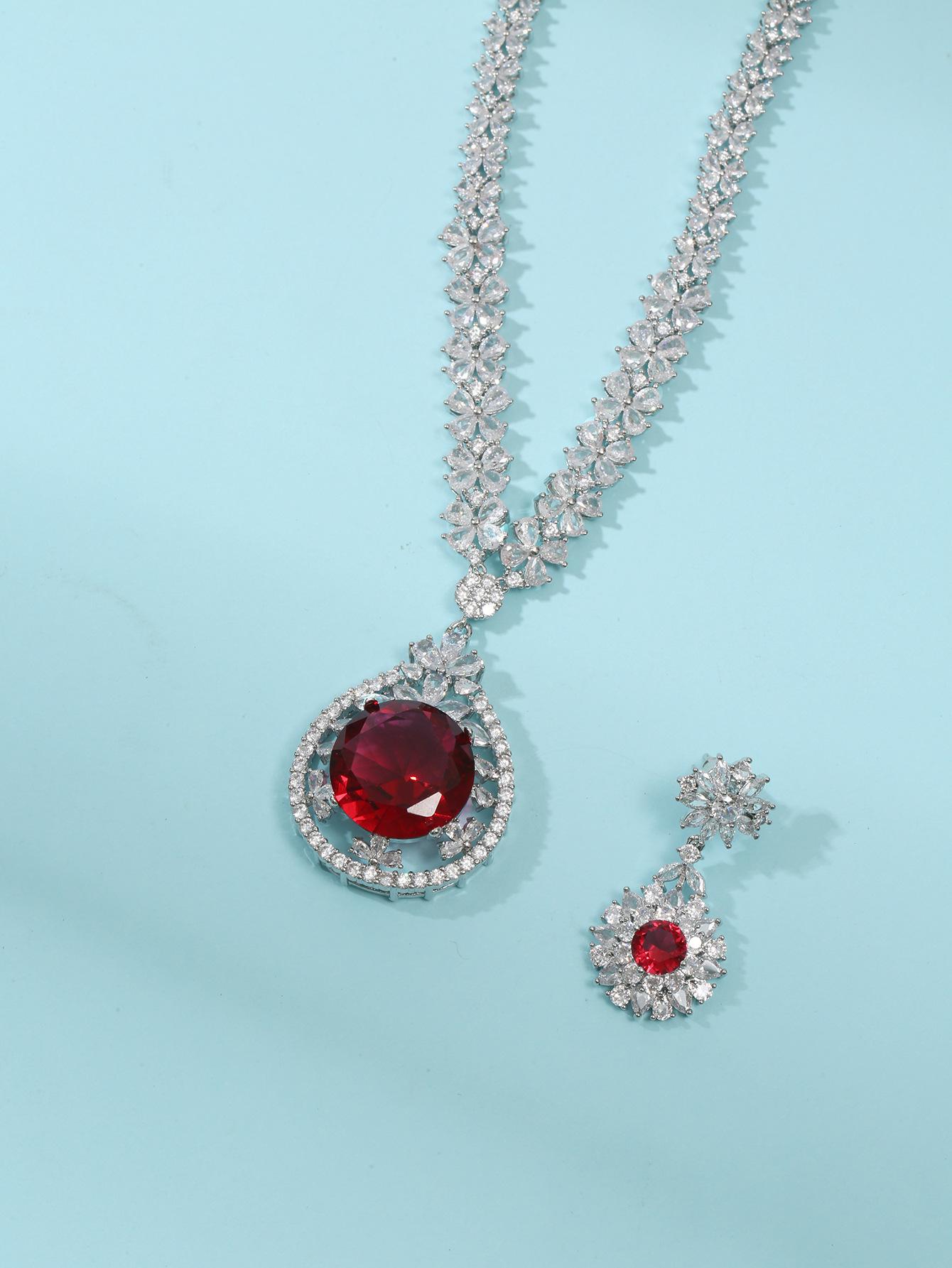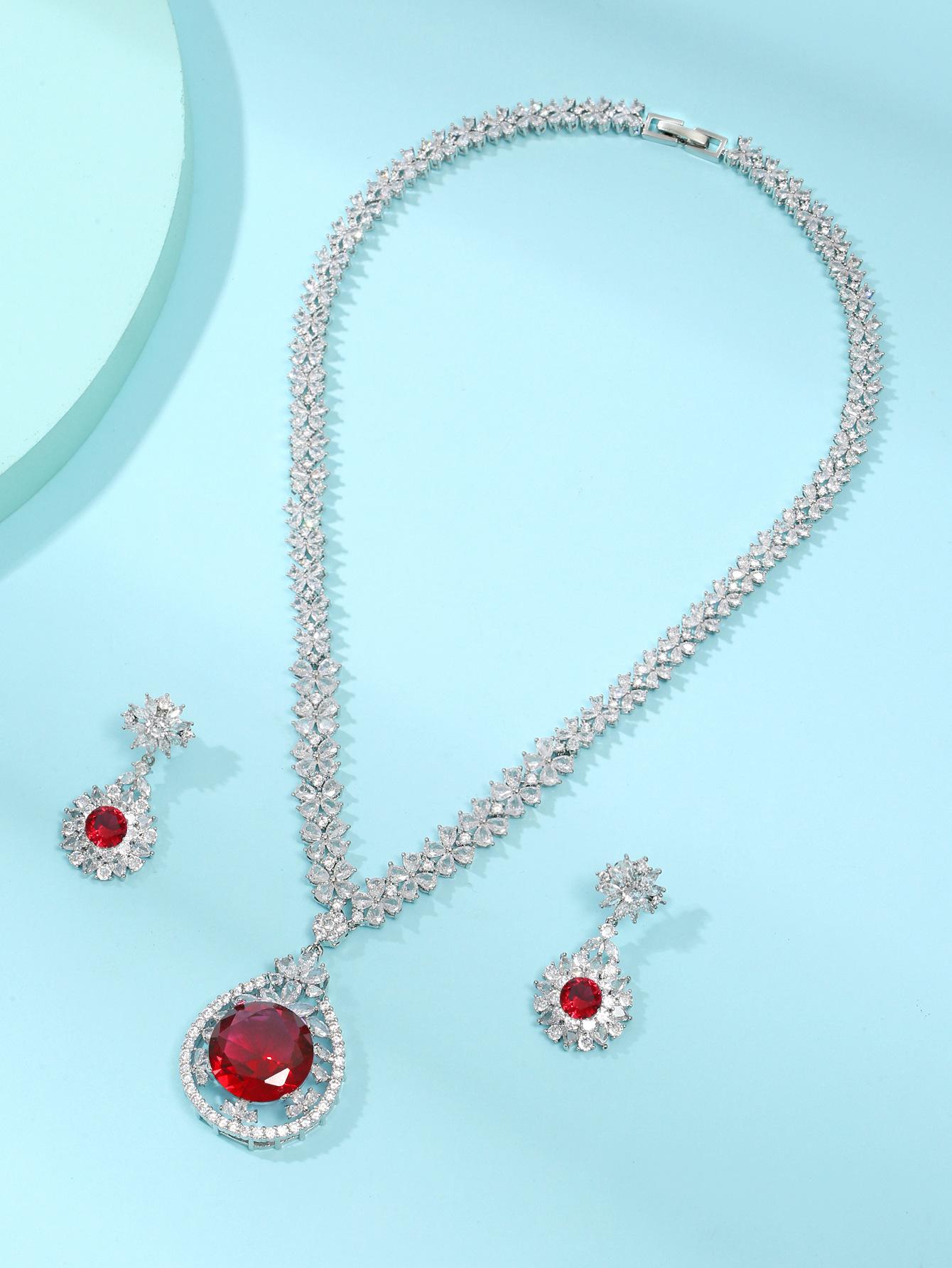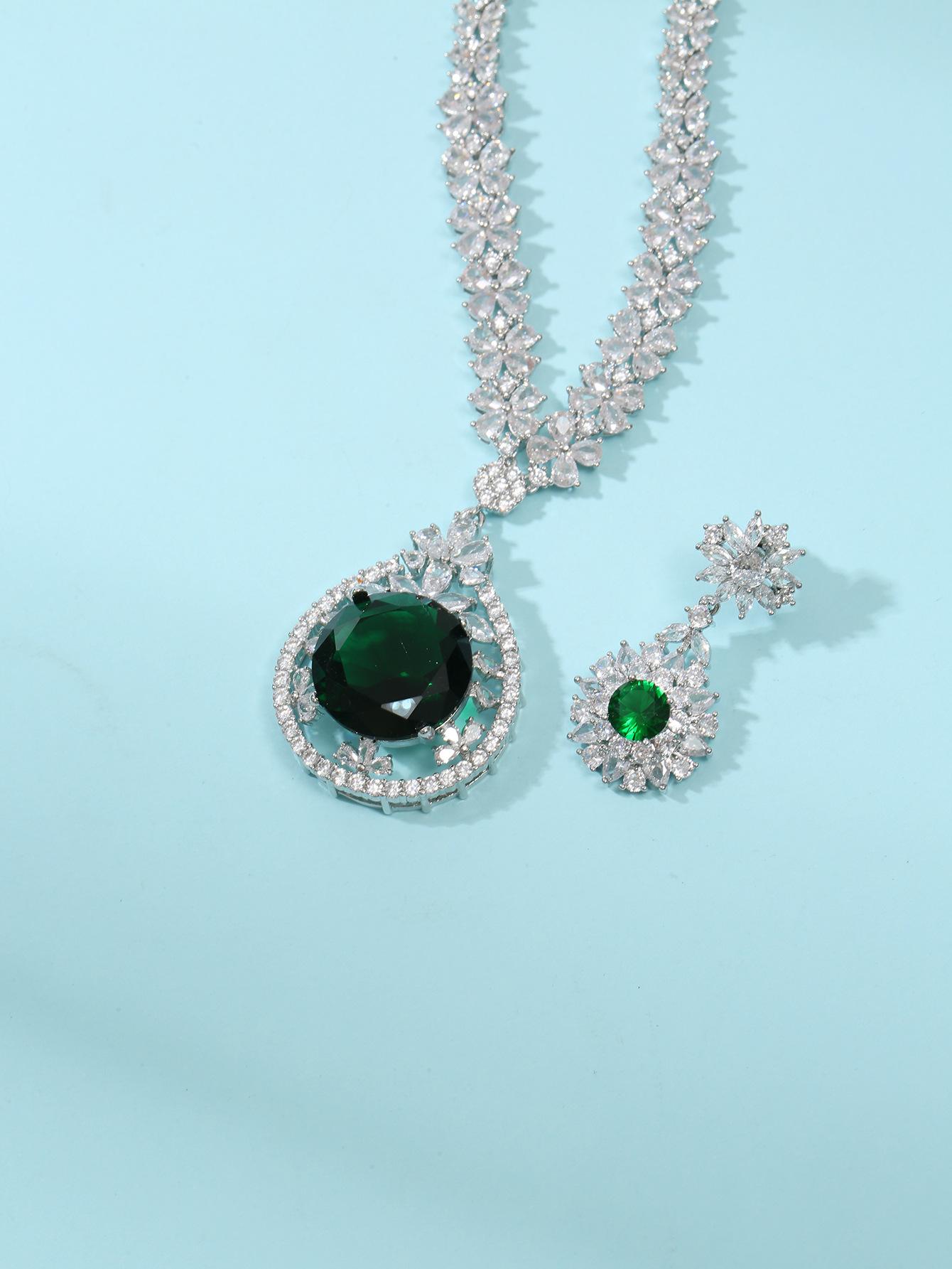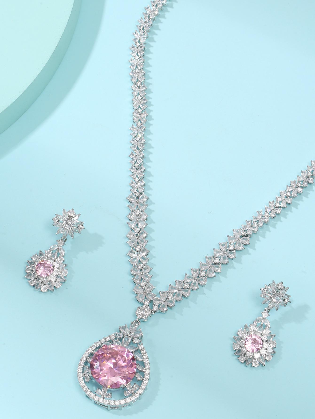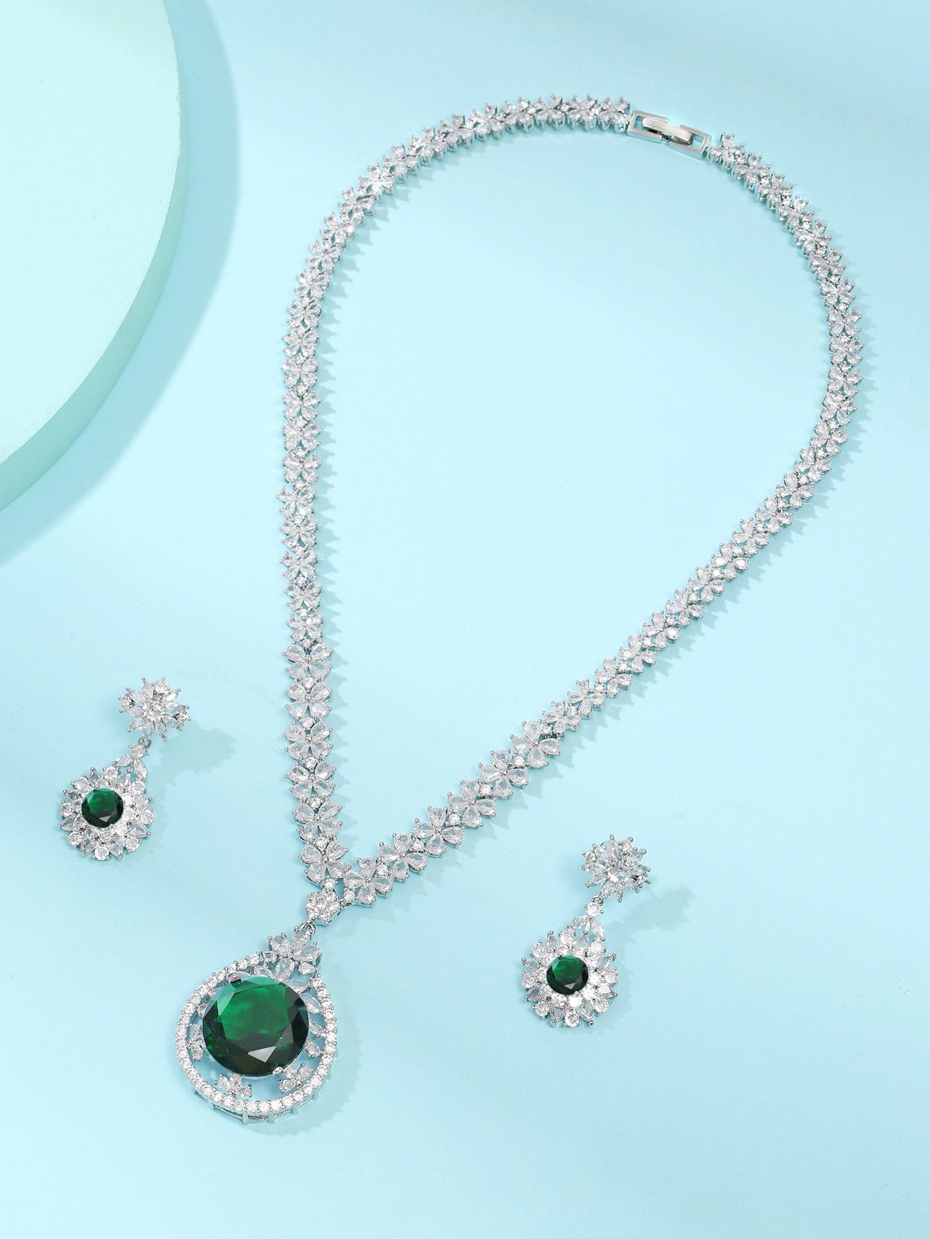 Collar y pendientes de circonita transfronterizos europeos y americanos, ideal para bodas, cenas, joyas de alta gama, decoración floral, ropa festiva para mujer.