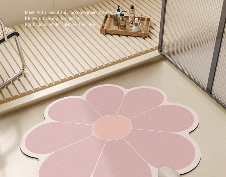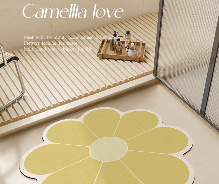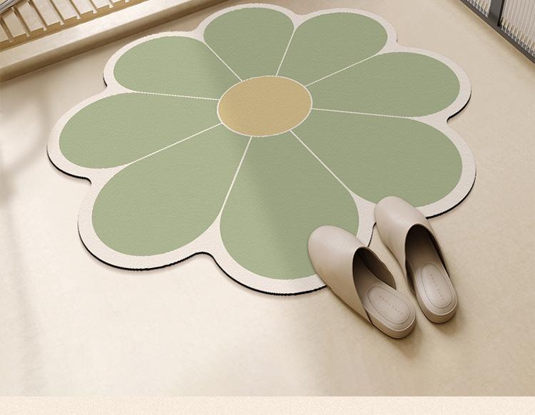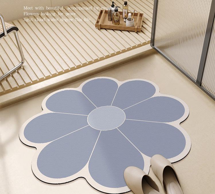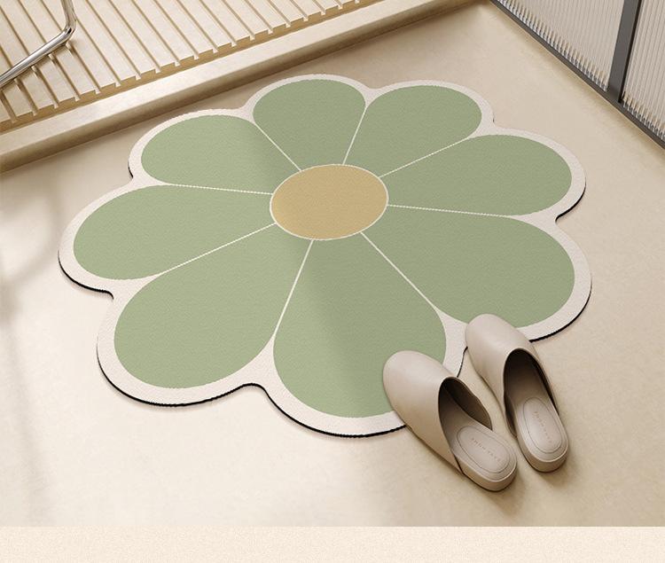 Alfombra de baño con diatomeas y flores frescas, absorbente, de secado rápido, irregular, antideslizante