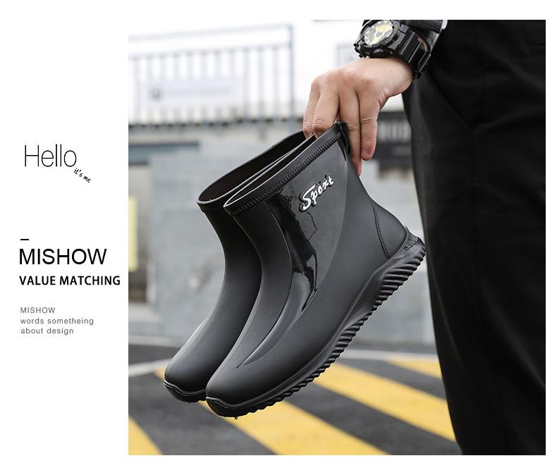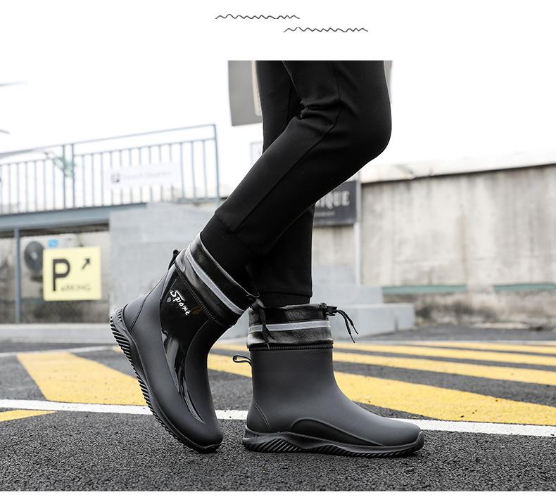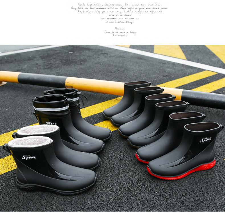 Zapatos impermeables para hombre zapatos de lluvia de moda tubo corto gruesos cálidos zapatos de goma trabajo antideslizantes zapatos de lluvia cortos venta al por mayor transfronteriza