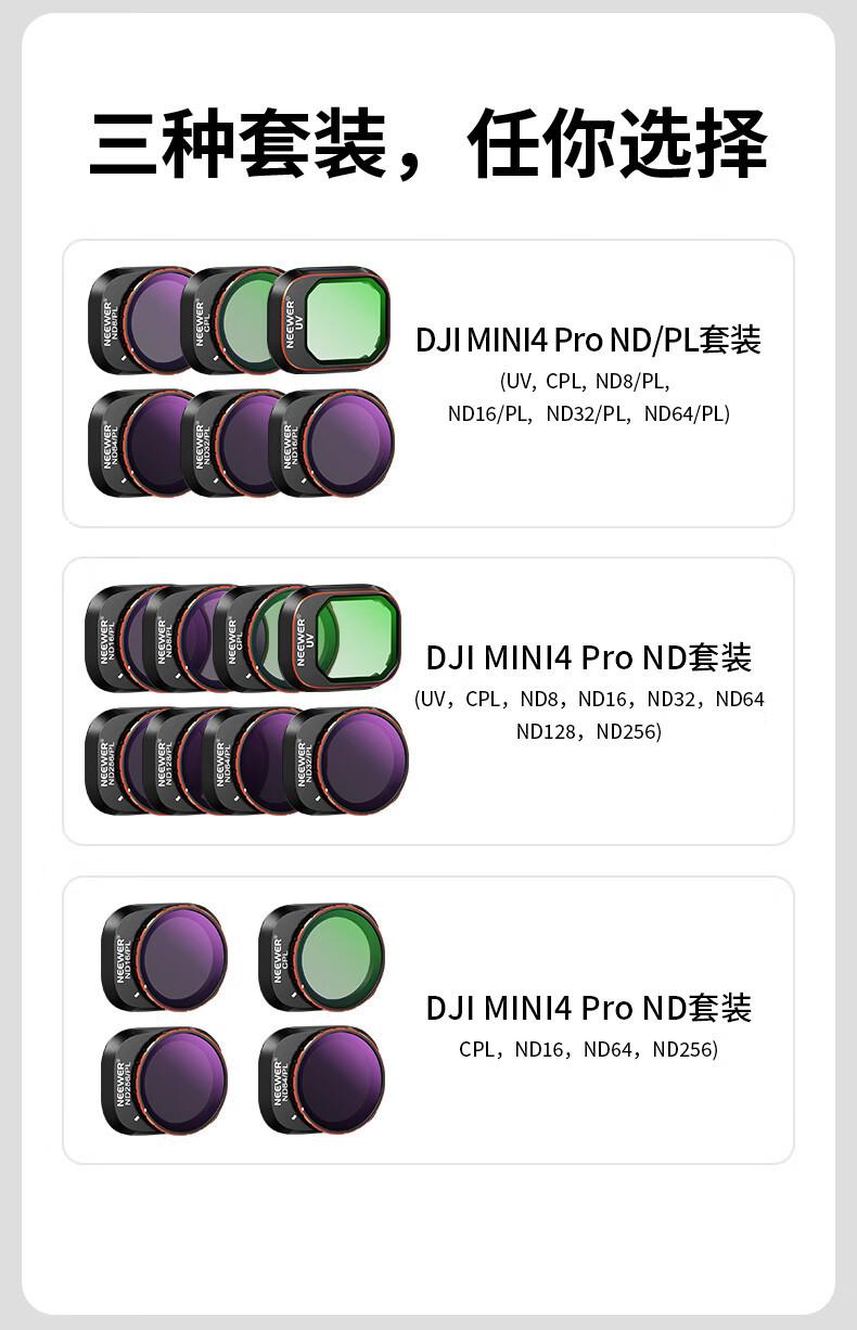 VND2-32 Variable ND Filter Set For DJI Mini 4 Pro, VND2-32 VND64-512 ND Filter Set For DJI Mini 4 Pro, FL-B13 ...