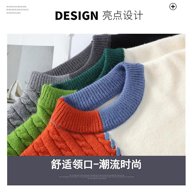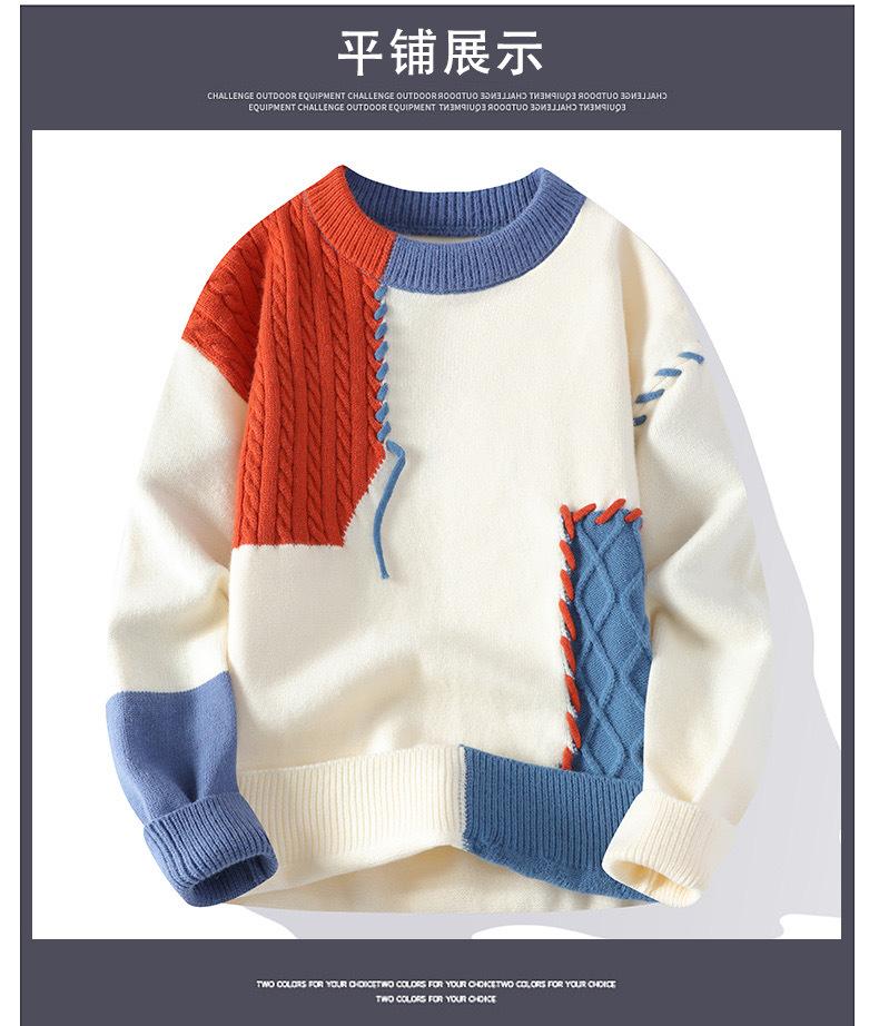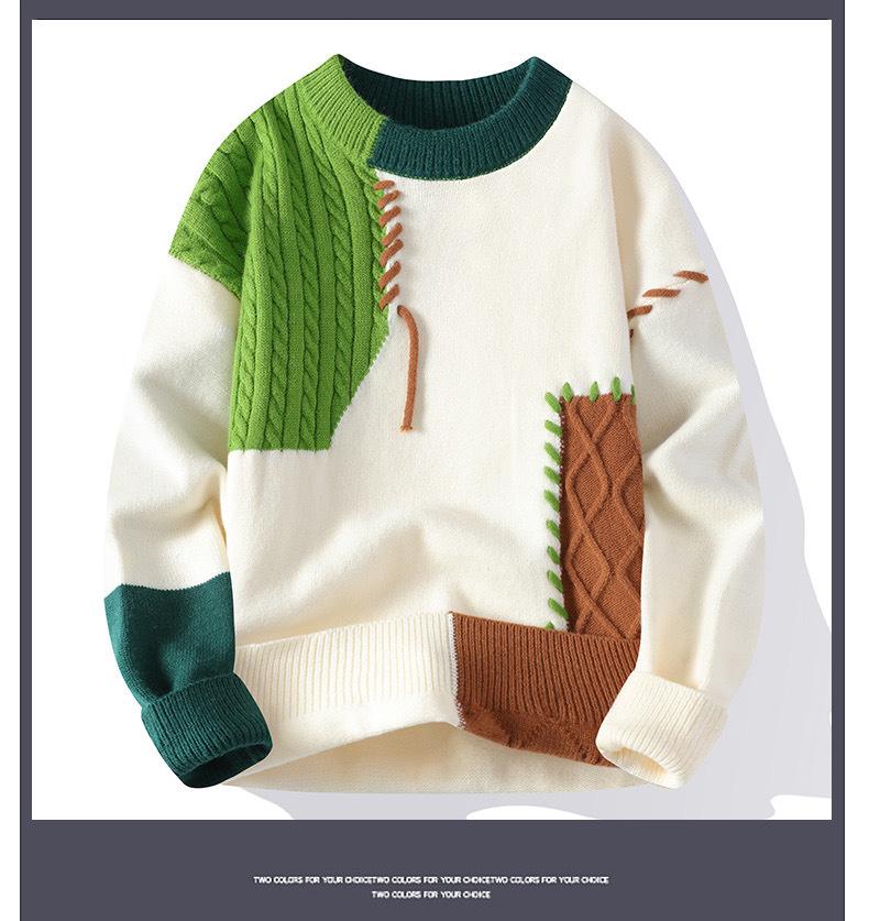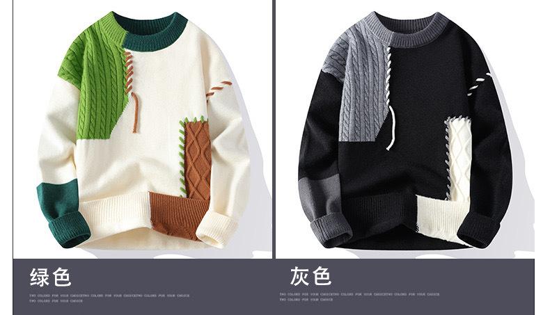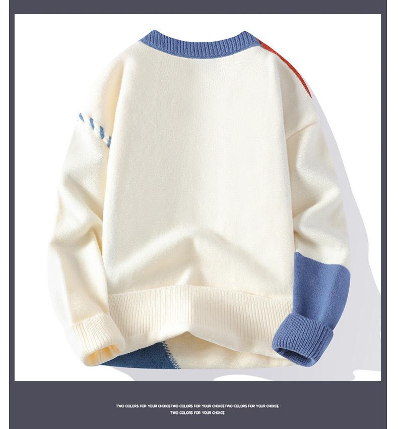 2025 Invierno Transfronterizo Amazon Nuevo Suéter Casual de Moda de Punto para Hombre de Cuello Redondo Suelto con Bloques de Color