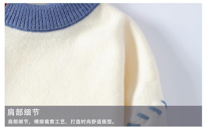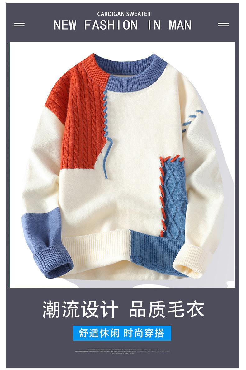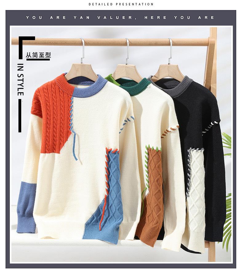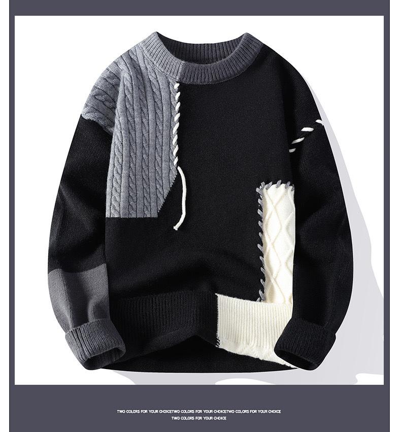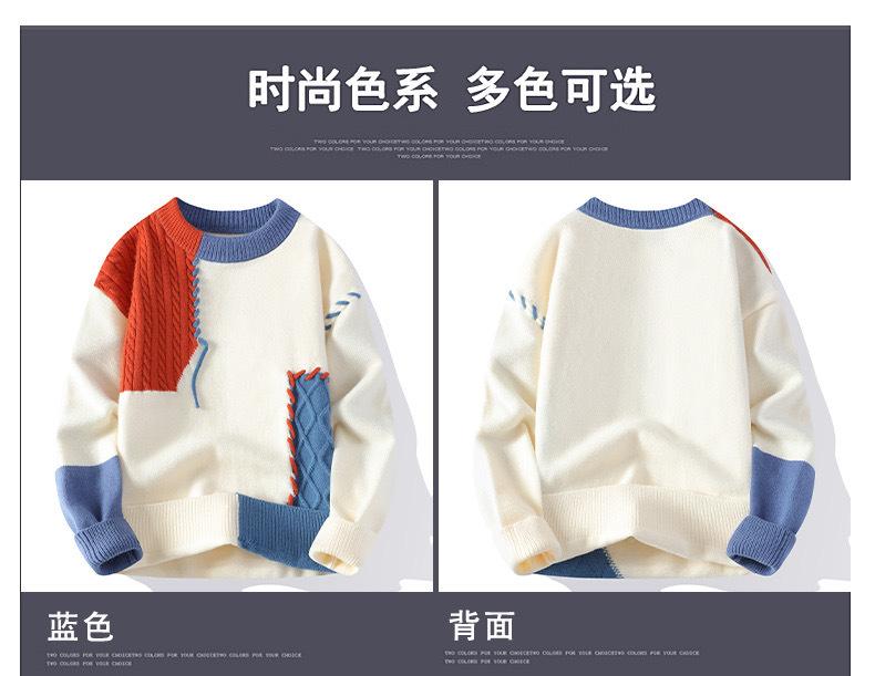 2025 Invierno Transfronterizo Amazon Nuevo Suéter Casual de Moda de Punto para Hombre de Cuello Redondo Suelto con Bloques de Color