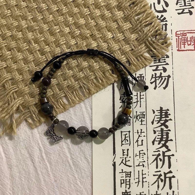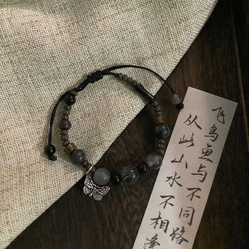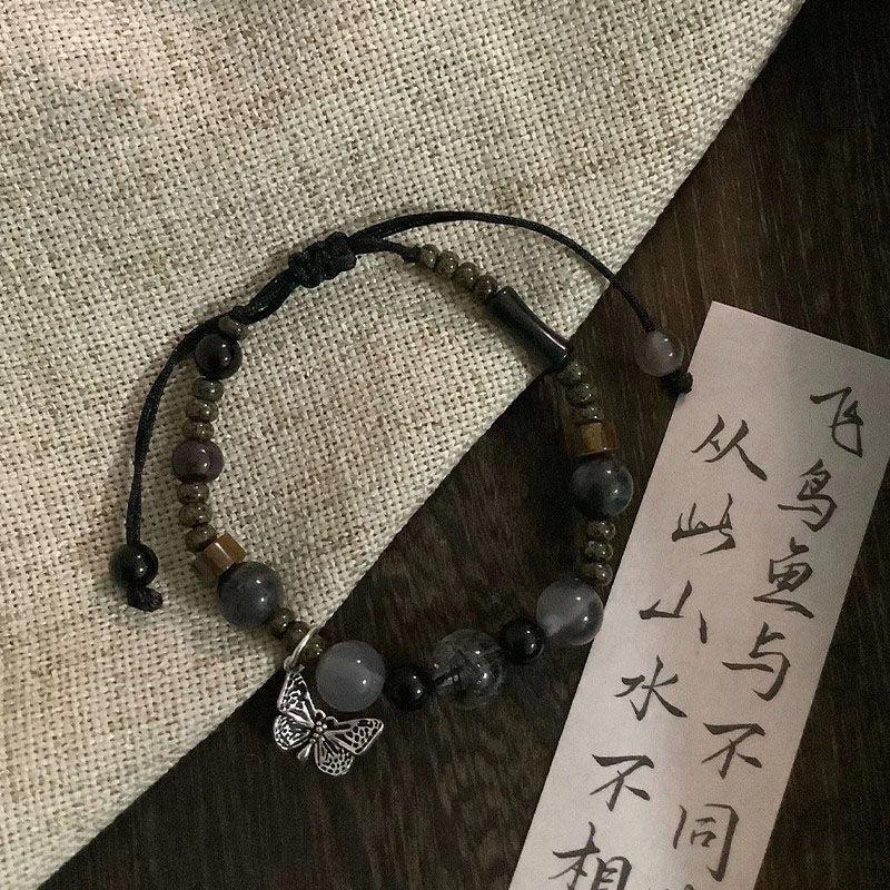 Pulsera de mariposa antigua con cuentas de bambú chinas Little Red Book, nueva y moderna pulsera de diseño de nicho de alta gama para mujer.