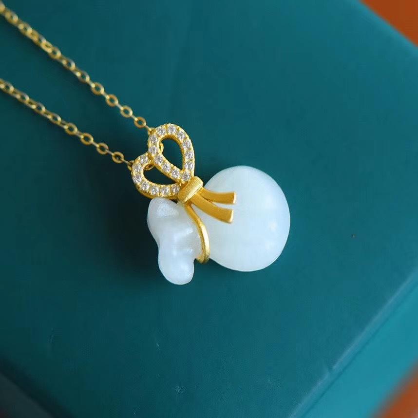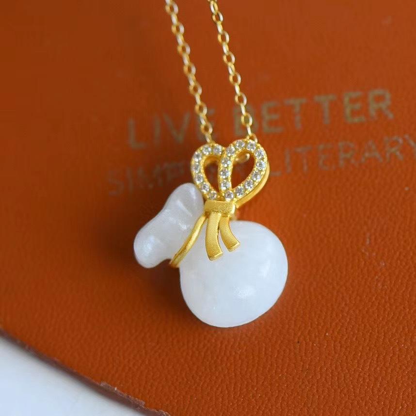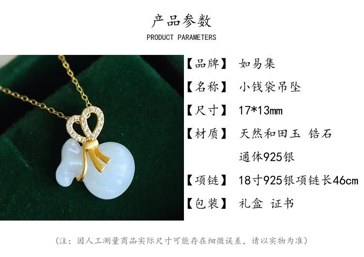 Compra Colgante de jade hetiano de plata esterlina a925, cadena de clavícula femenina, pequeño collar con colgante de bolsa de la suerte, collar vintage de jade, joyería al por mayor en Joom.pro
