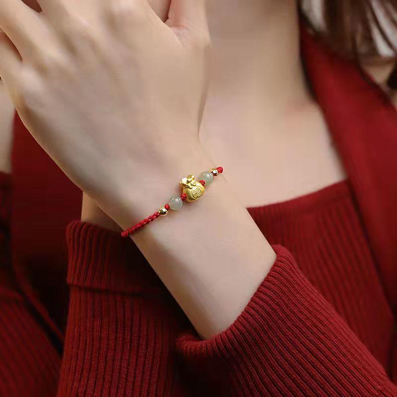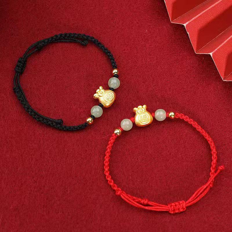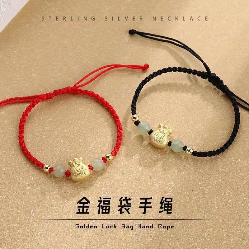 Pulsera Pulsera Fufu Bolsa Negro Rojo Pareja Cuerda de Mano Diseño Nicho Lujo Ligero Simple Exquisito Para Todo Tejida a Mano