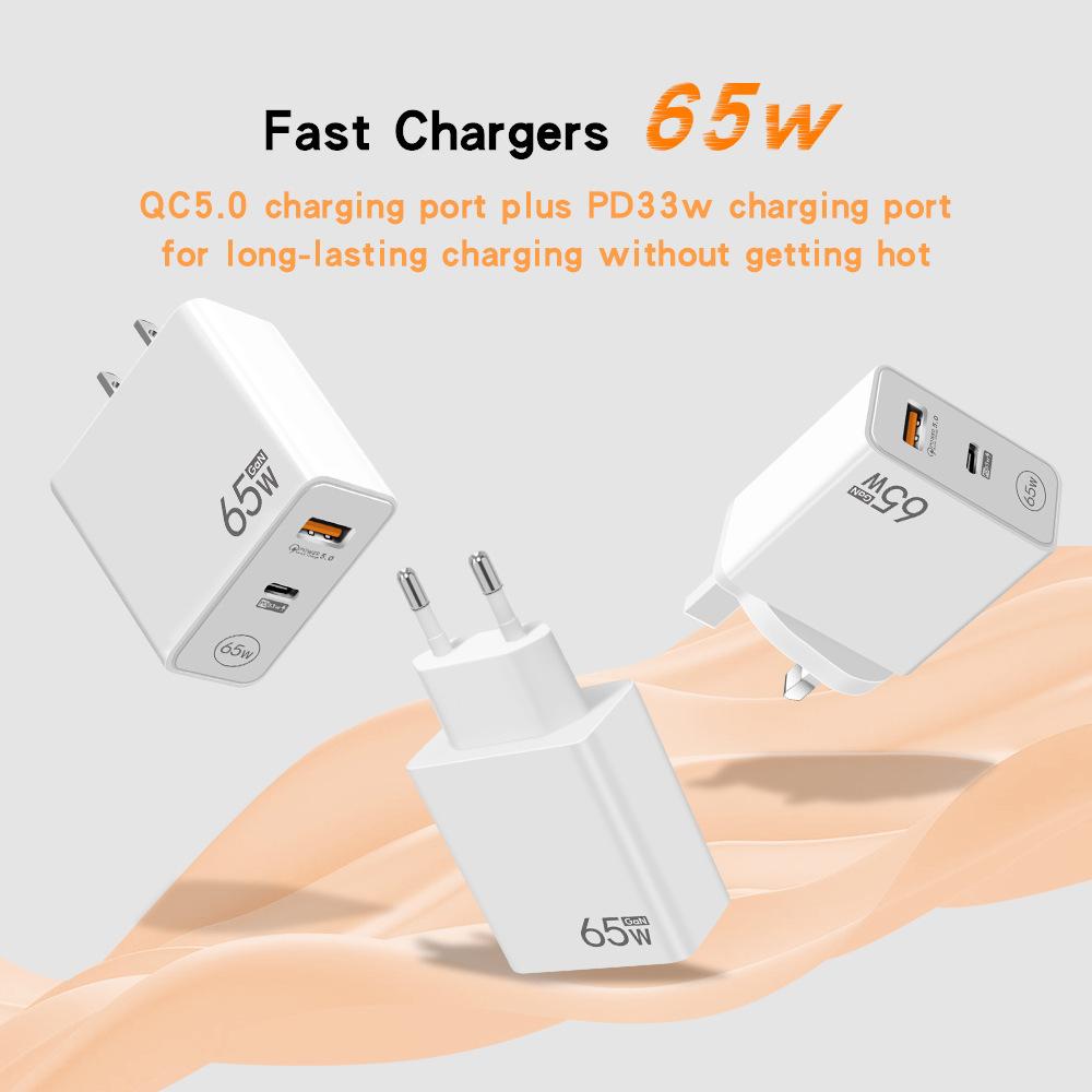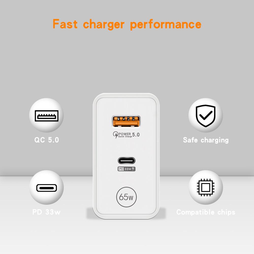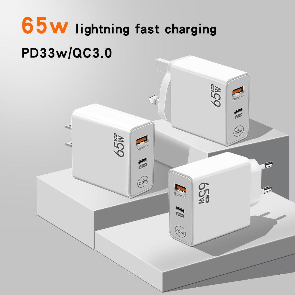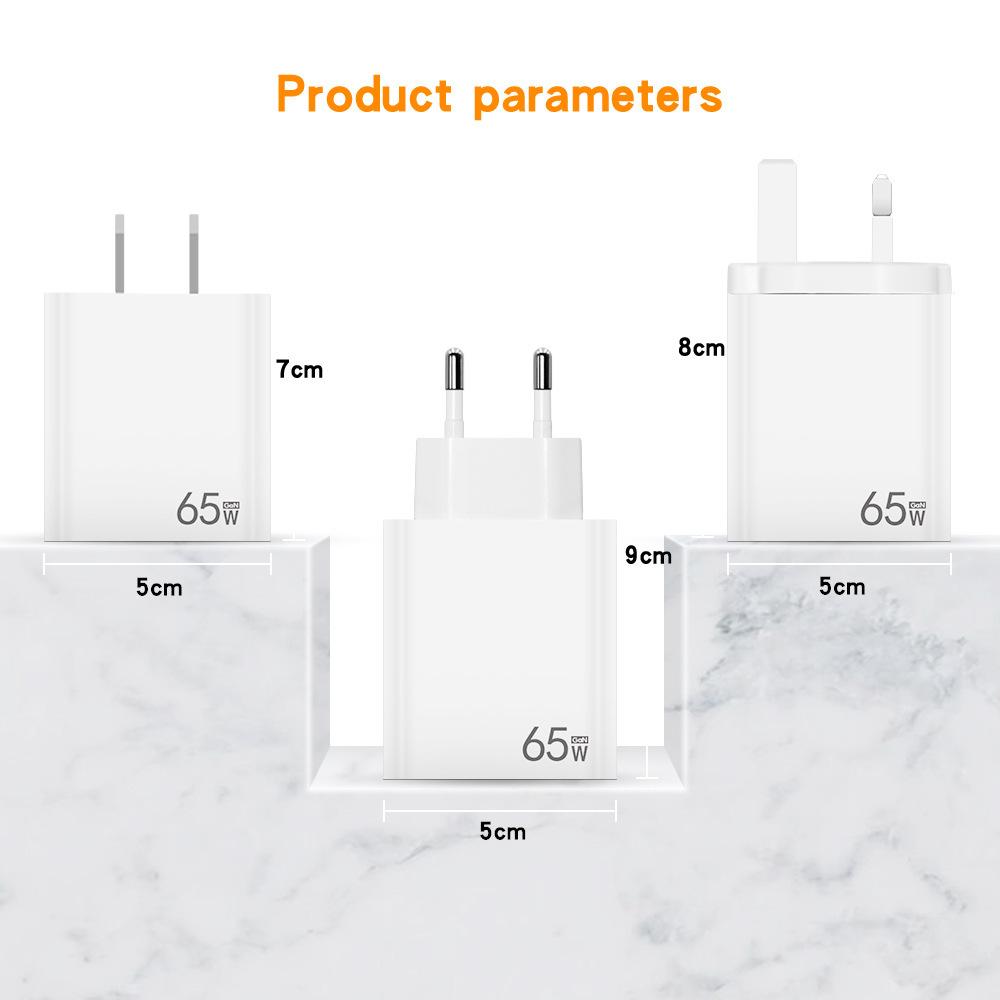 Cargador de nitruro de galio de 65 W PD, carga rápida, cabezal de carga para teléfono móvil QC3.0, fuente de alimentación universal de carga GaN para computadora portátil