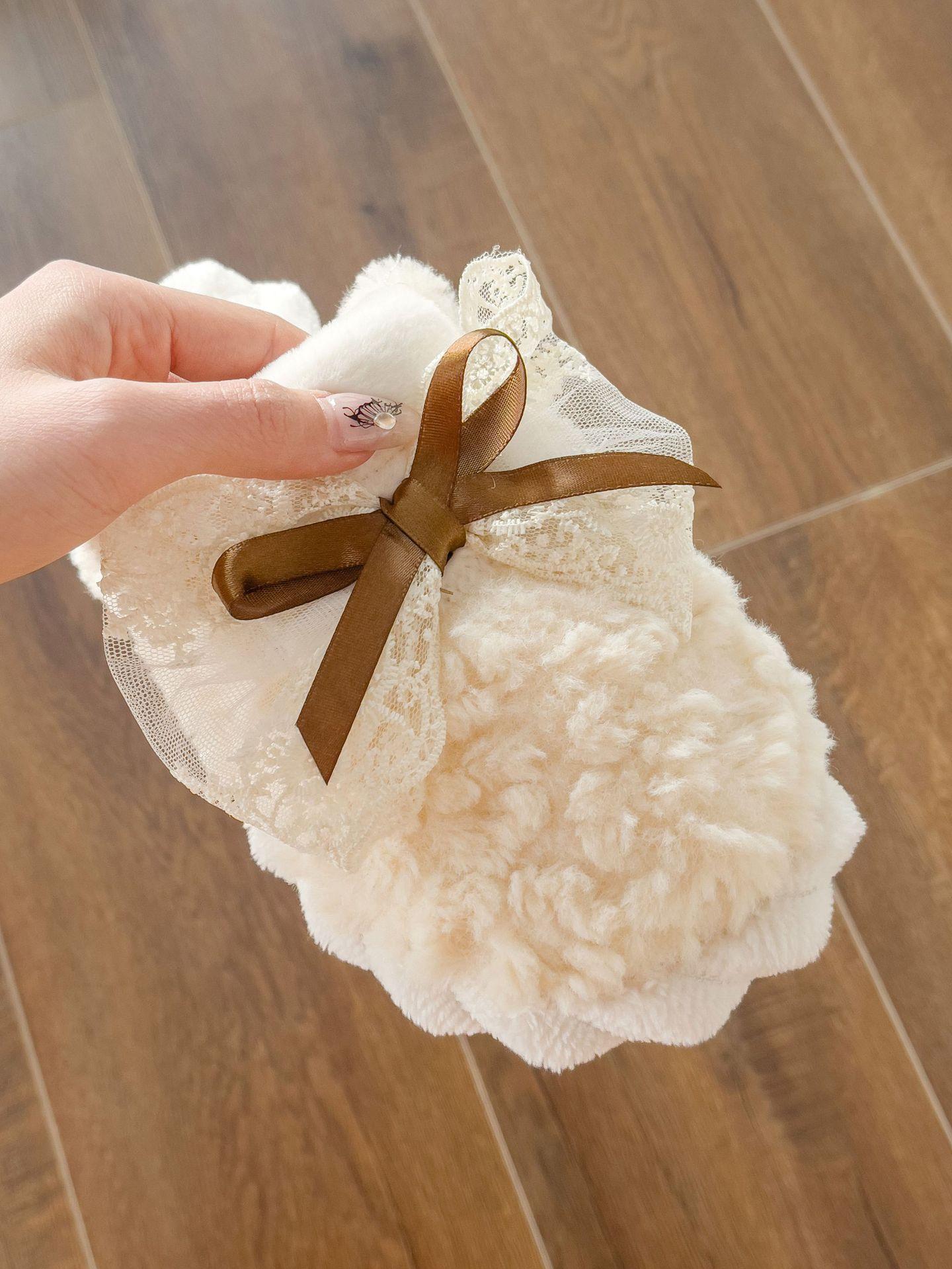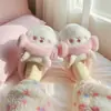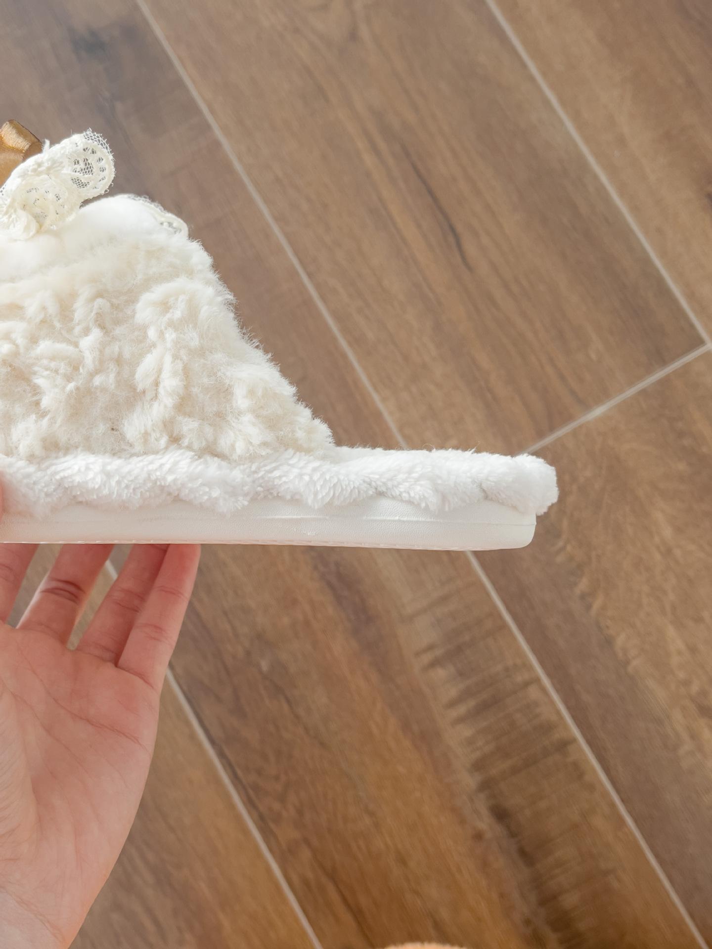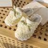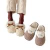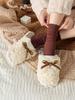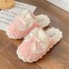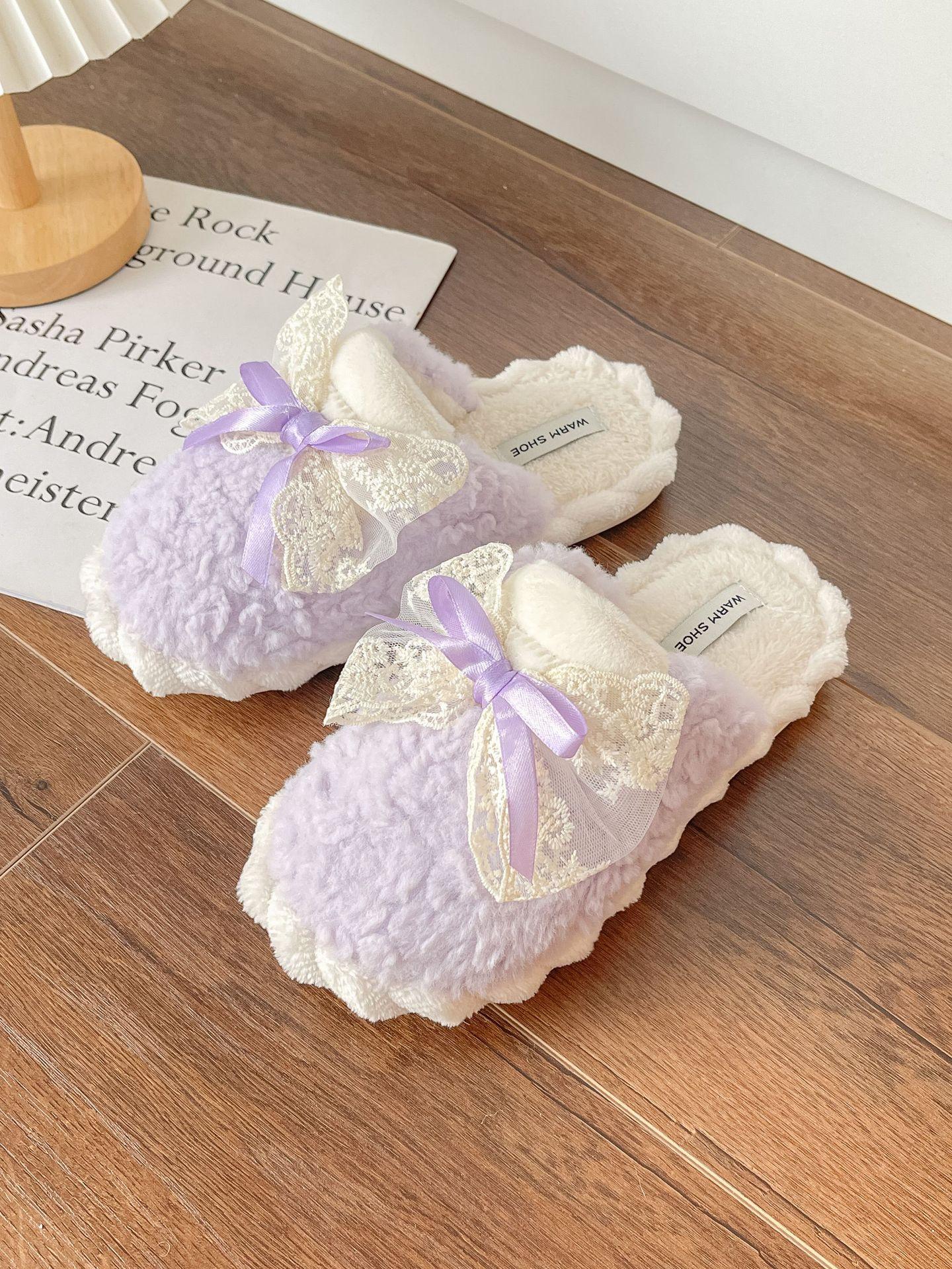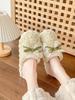 Pantuflas de algodón de invierno con lazo estilo coreano de hadas, lindas y peludas para el hogar, antideslizantes, cálidas y acogedoras para parejas.