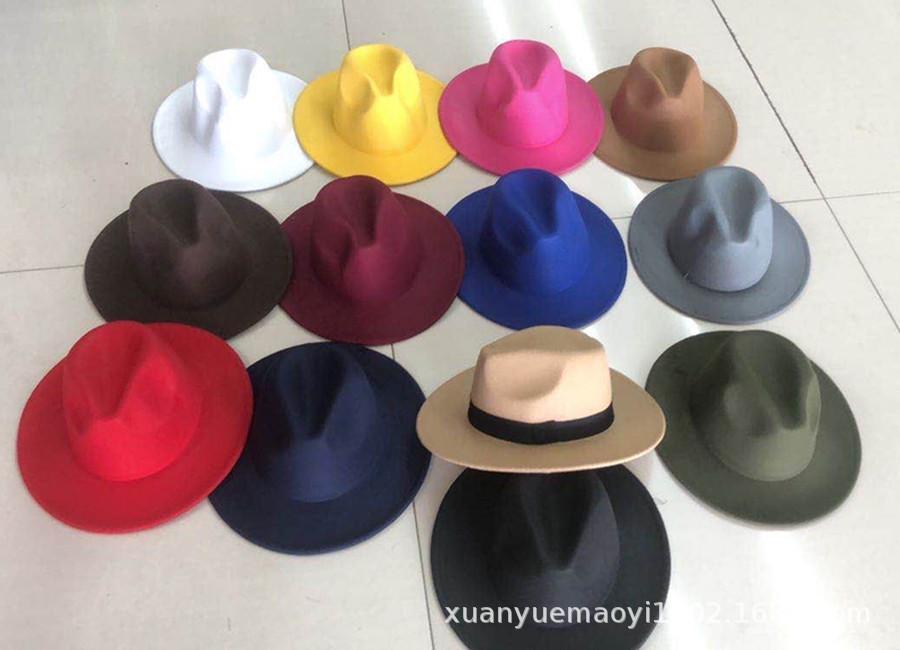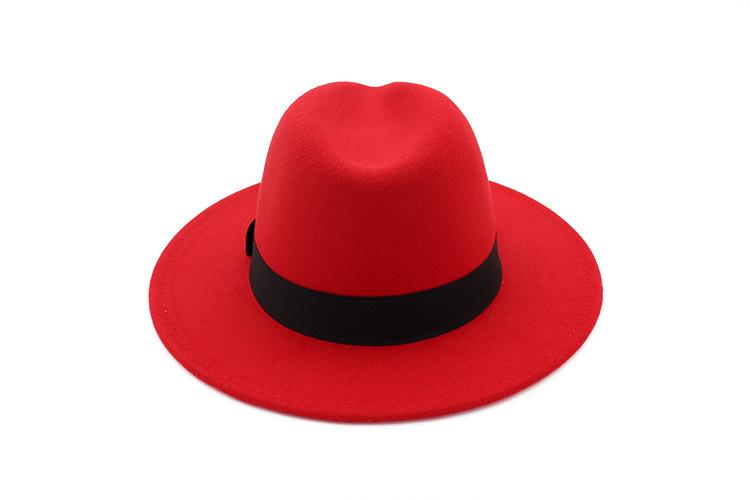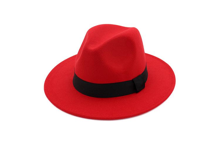 Sombrero Panamá Nuevo de Otoño e Invierno Estilo Europeo y Americano Británico Versátil Ala Plana Sombrero de Jazz Sombrero de Lana Sombrero para Hombre y Mujer