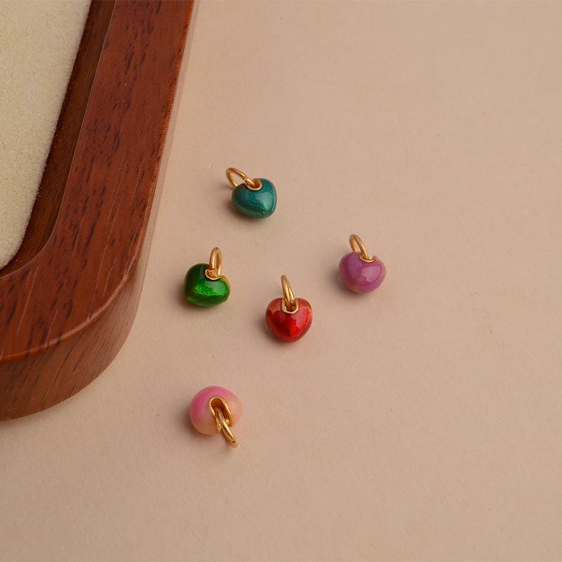 Accesorios de esmalte dorado arena, joyería hecha a mano, aretes pequeños de amor, pulsera, colgante, accesorios de color