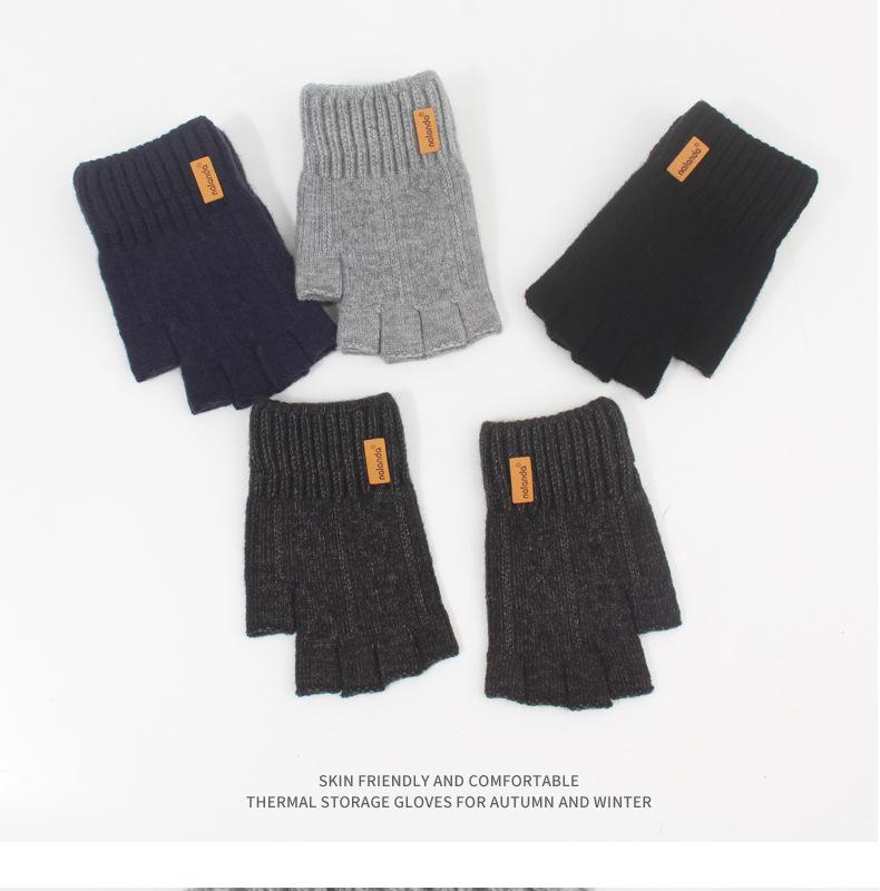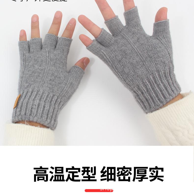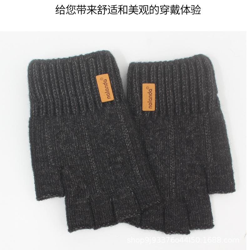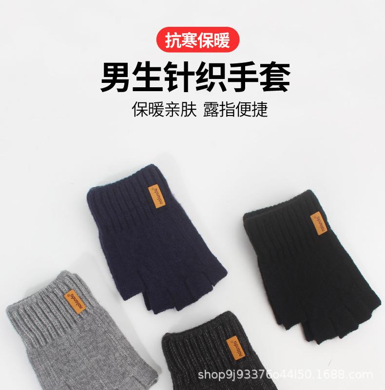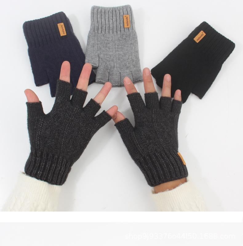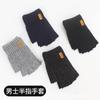 Guantes para hombre de medio dedo cálidos para otoño e invierno, tejidos, resistentes al frío, con jacquard de lana, para montar, escribir, estudiante, pantalla táctil, modernos