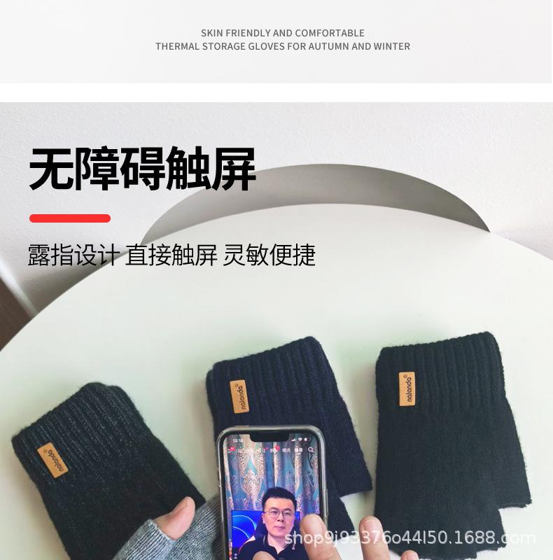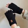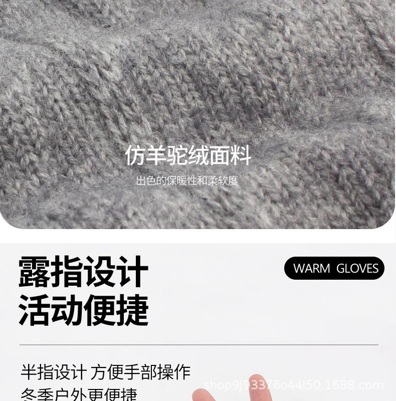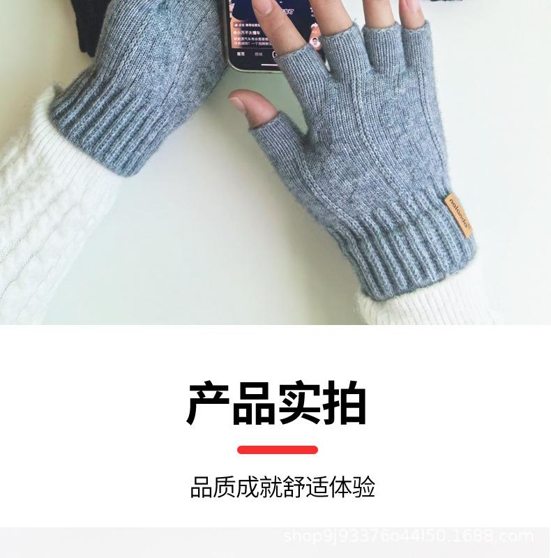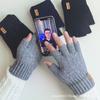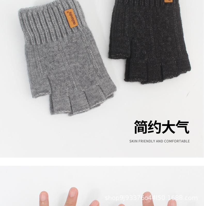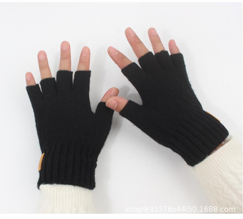 Guantes para hombre de medio dedo cálidos para otoño e invierno, tejidos, resistentes al frío, con jacquard de lana, para montar, escribir, estudiante, pantalla táctil, modernos