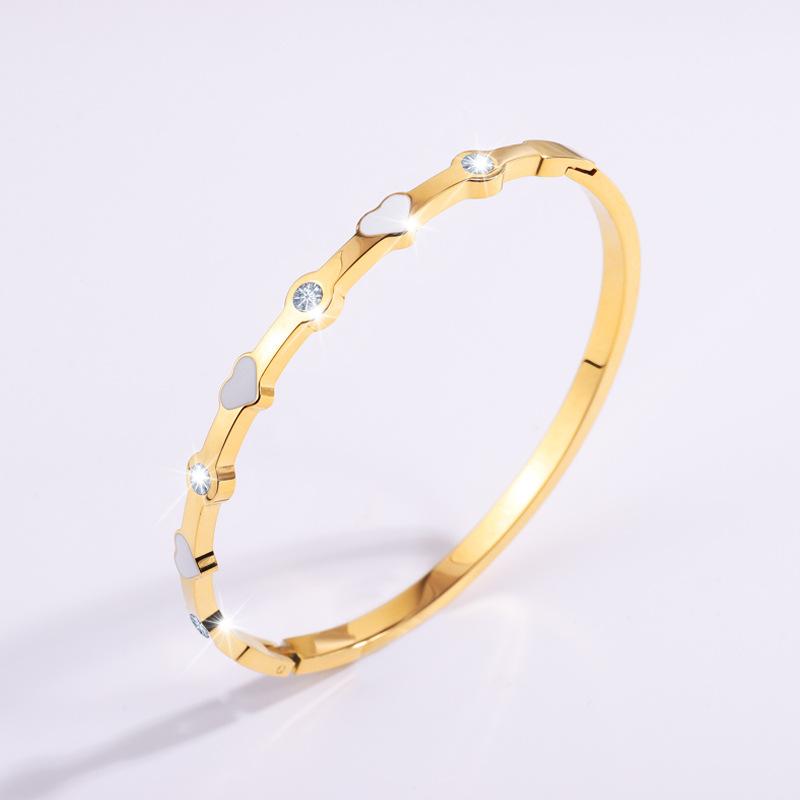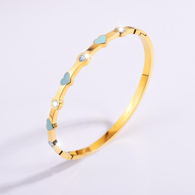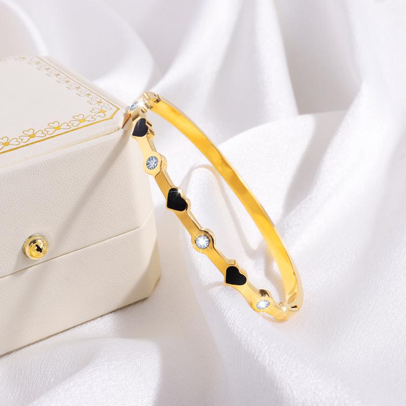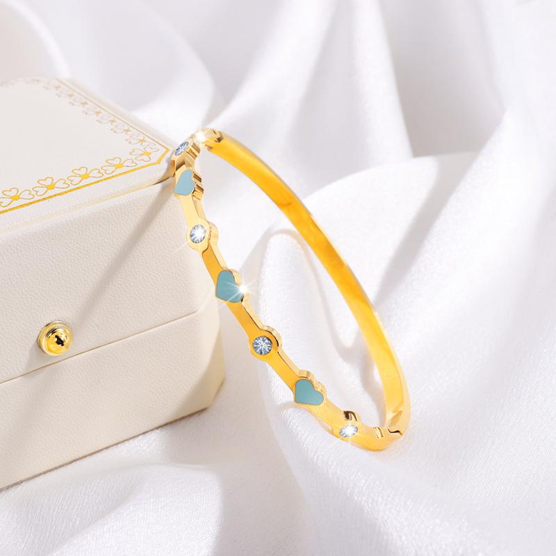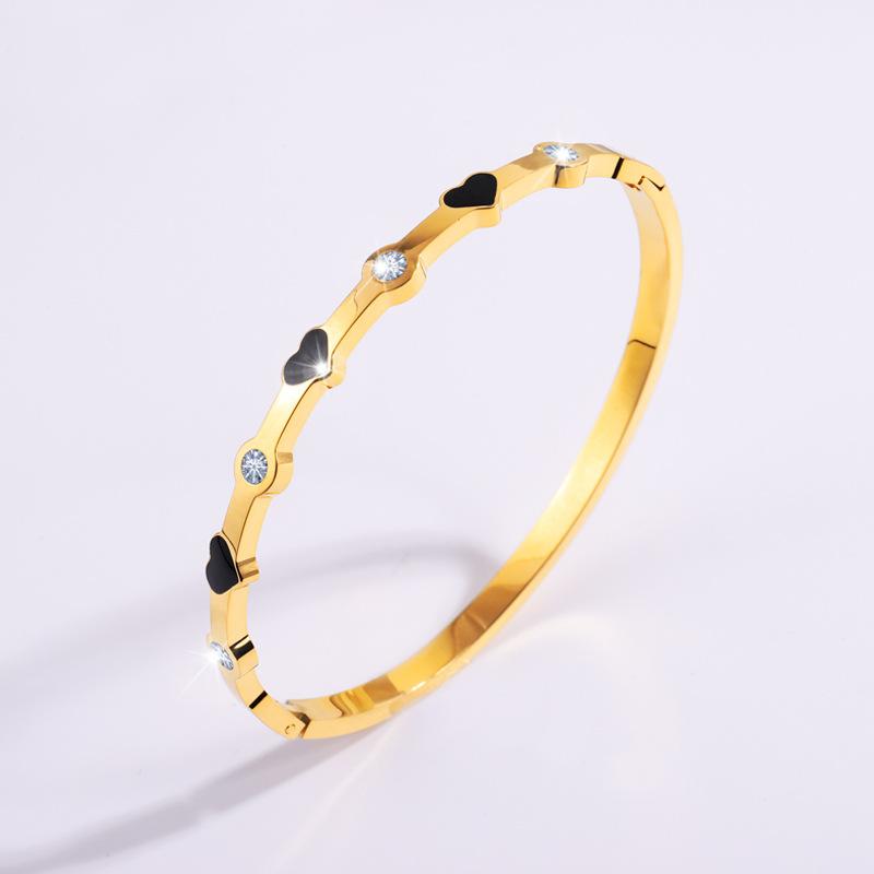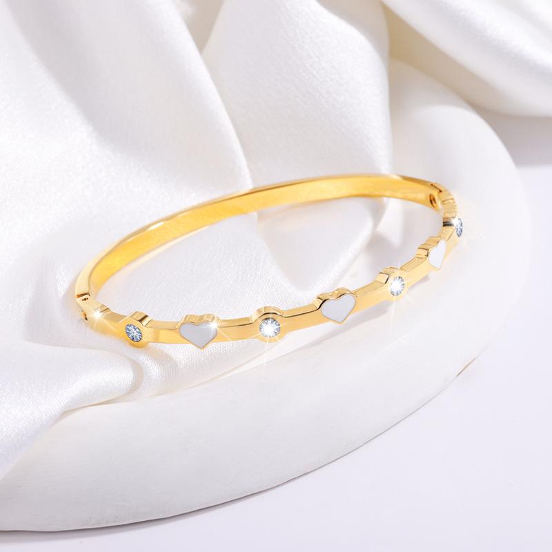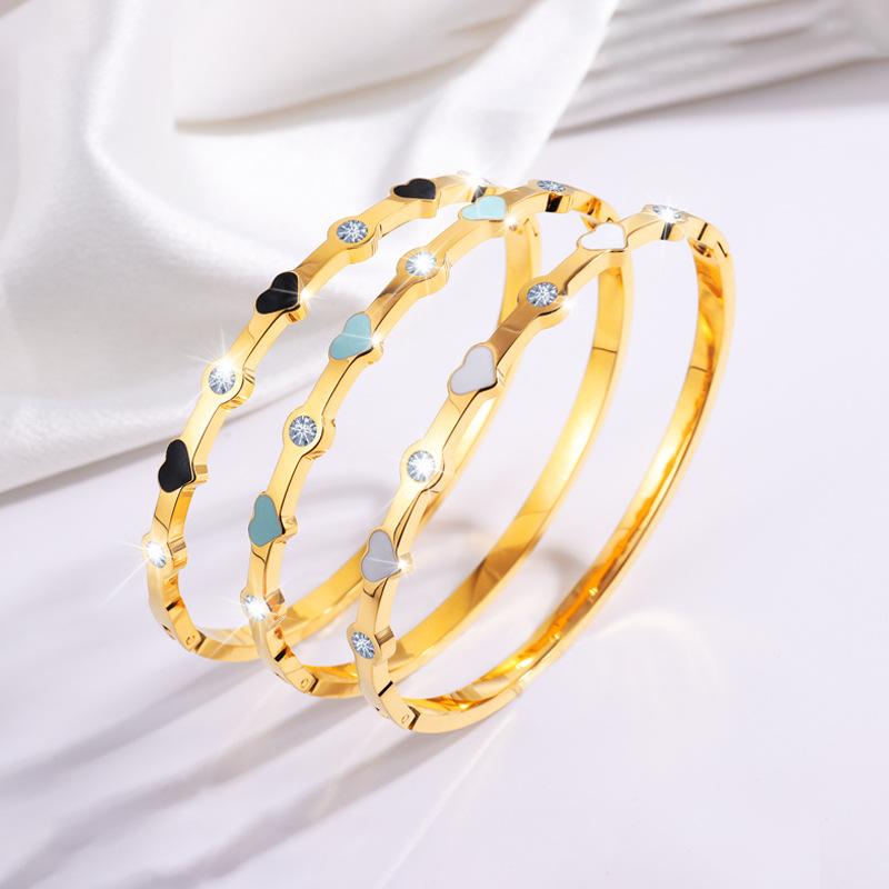 Pulsera de Acero de Titanio Corazón de Aceite Goteado Cuatro Pedrería Pulsera de Acero Inoxidable para Niñas Moda Europea y Americana de Alta Gama Pulsera Versátil