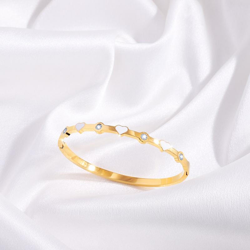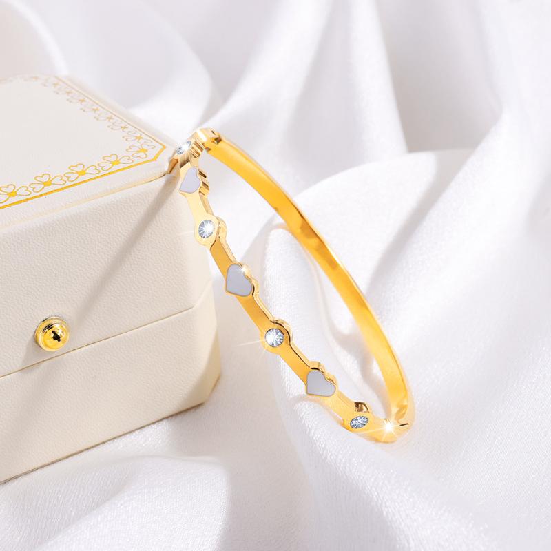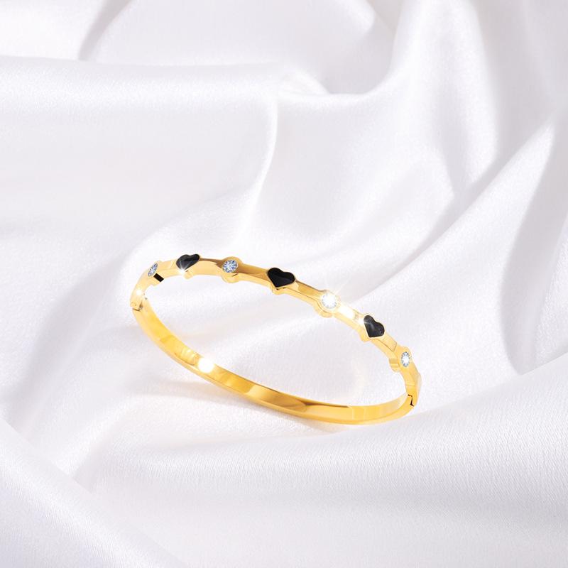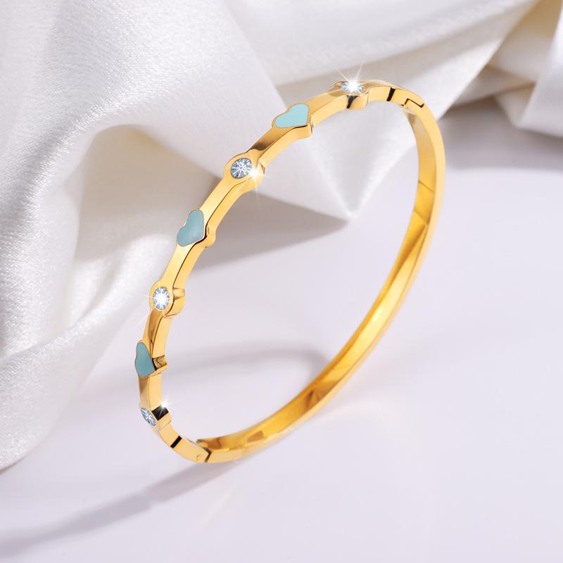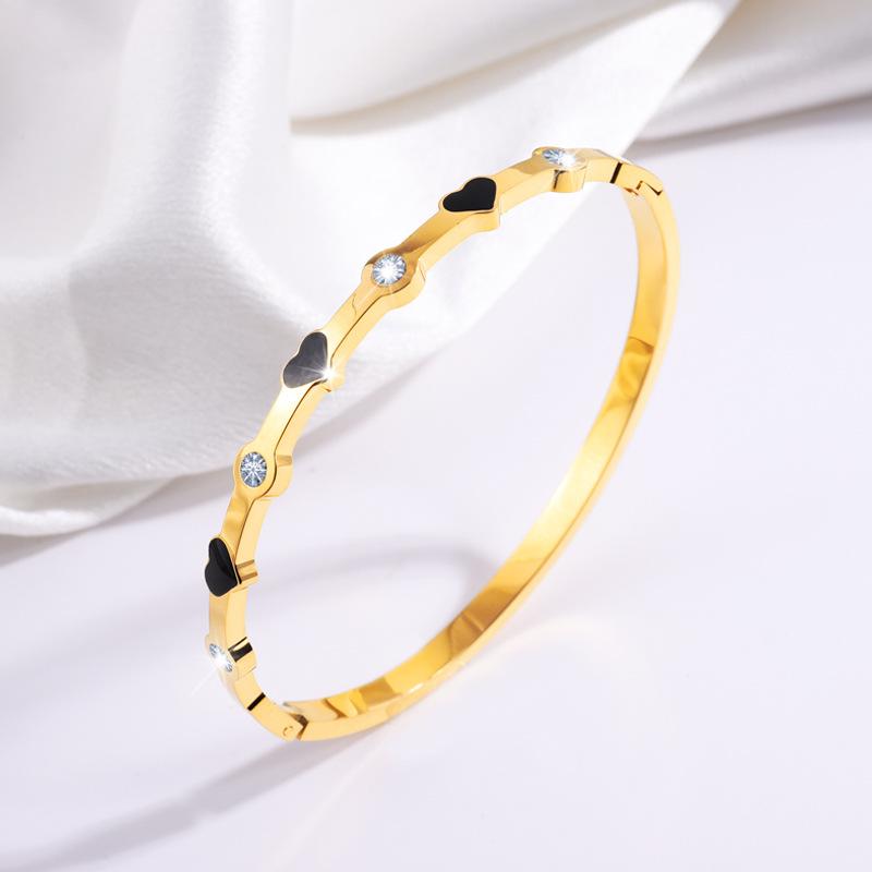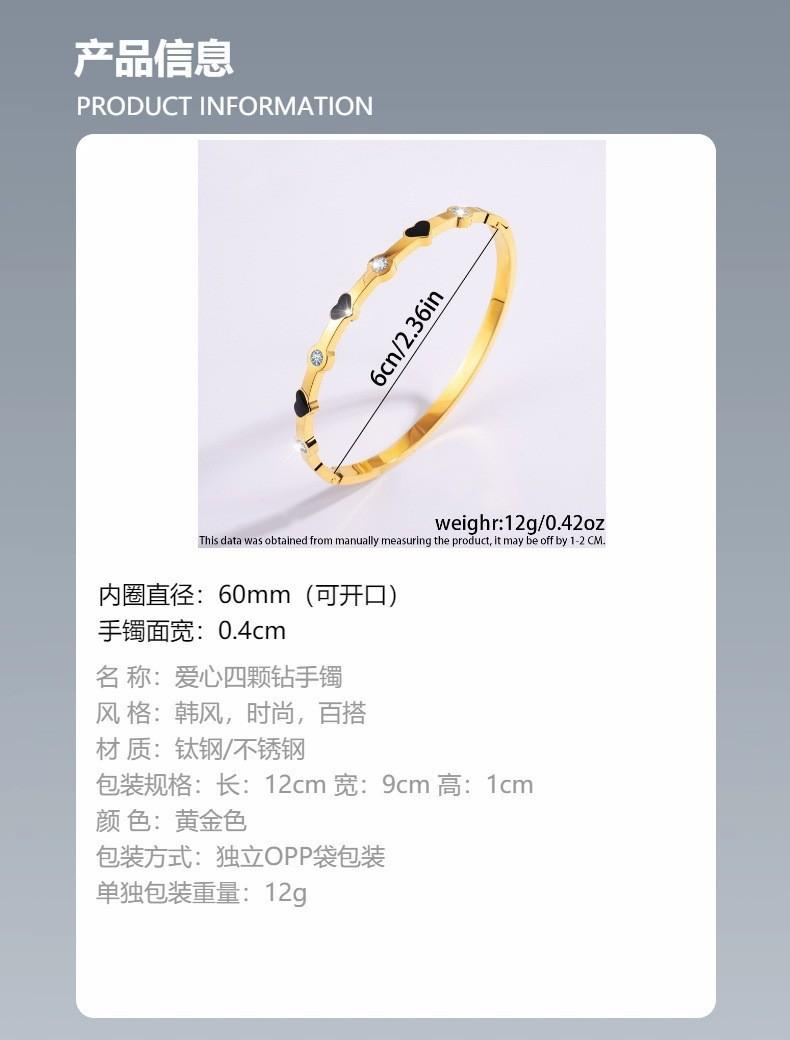 Pulsera de Acero de Titanio Corazón de Aceite Goteado Cuatro Pedrería Pulsera de Acero Inoxidable para Niñas Moda Europea y Americana de Alta Gama Pulsera Versátil