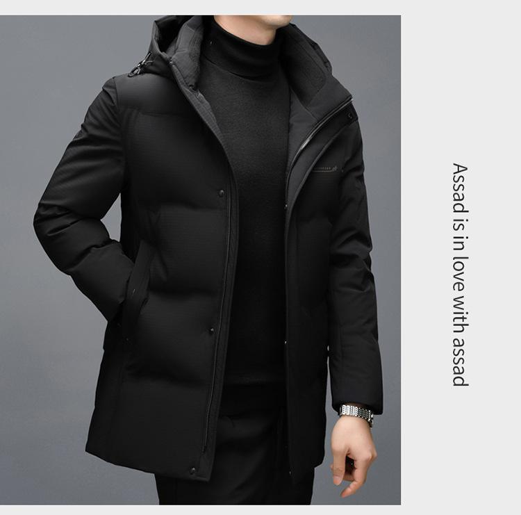 Chaqueta de plumón larga y gruesa de invierno para hombres de mediana edad y mayores, con capucha, informal, de negocios, ropa de papá