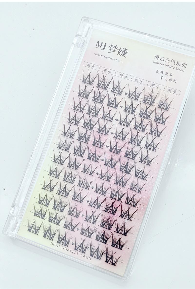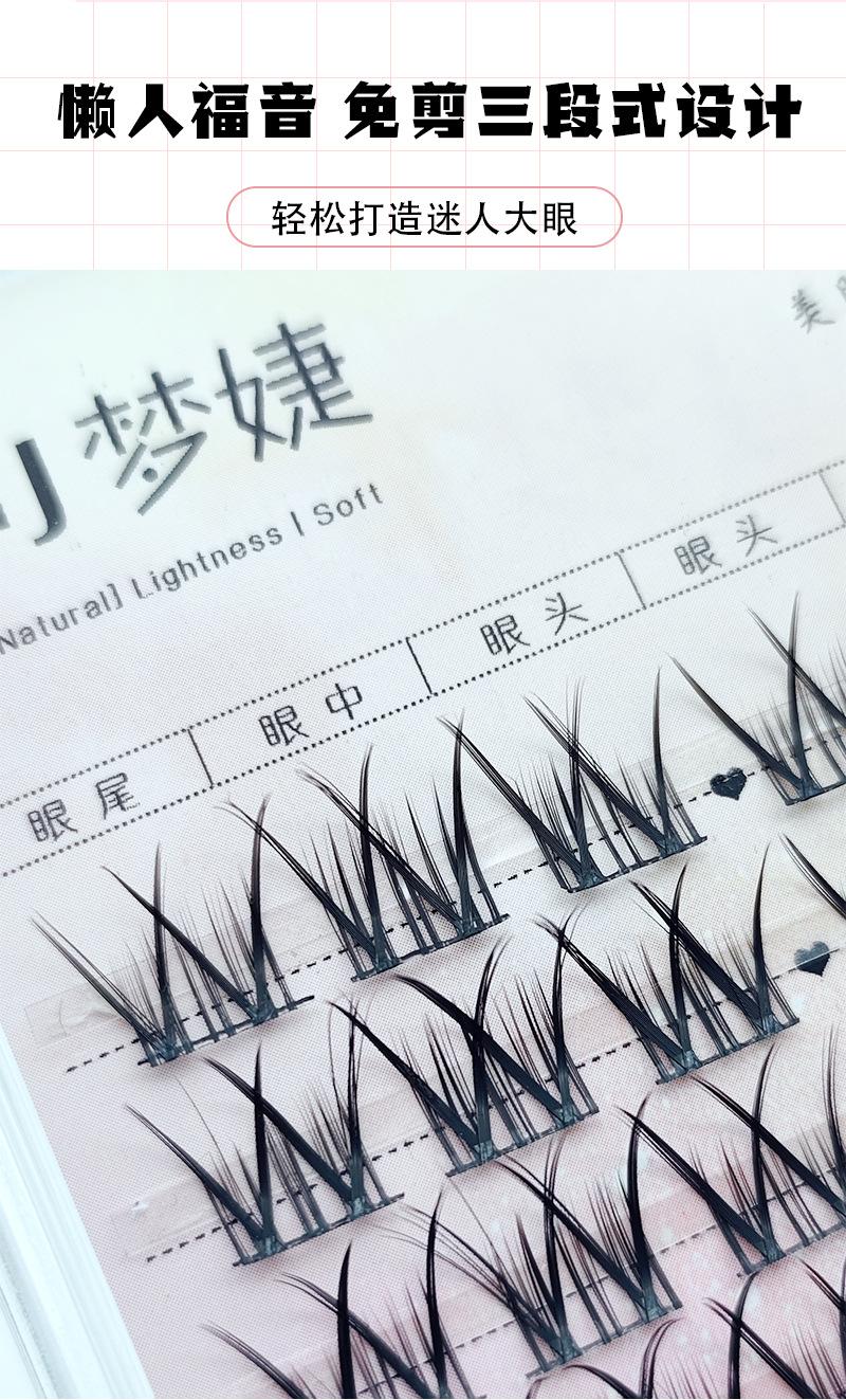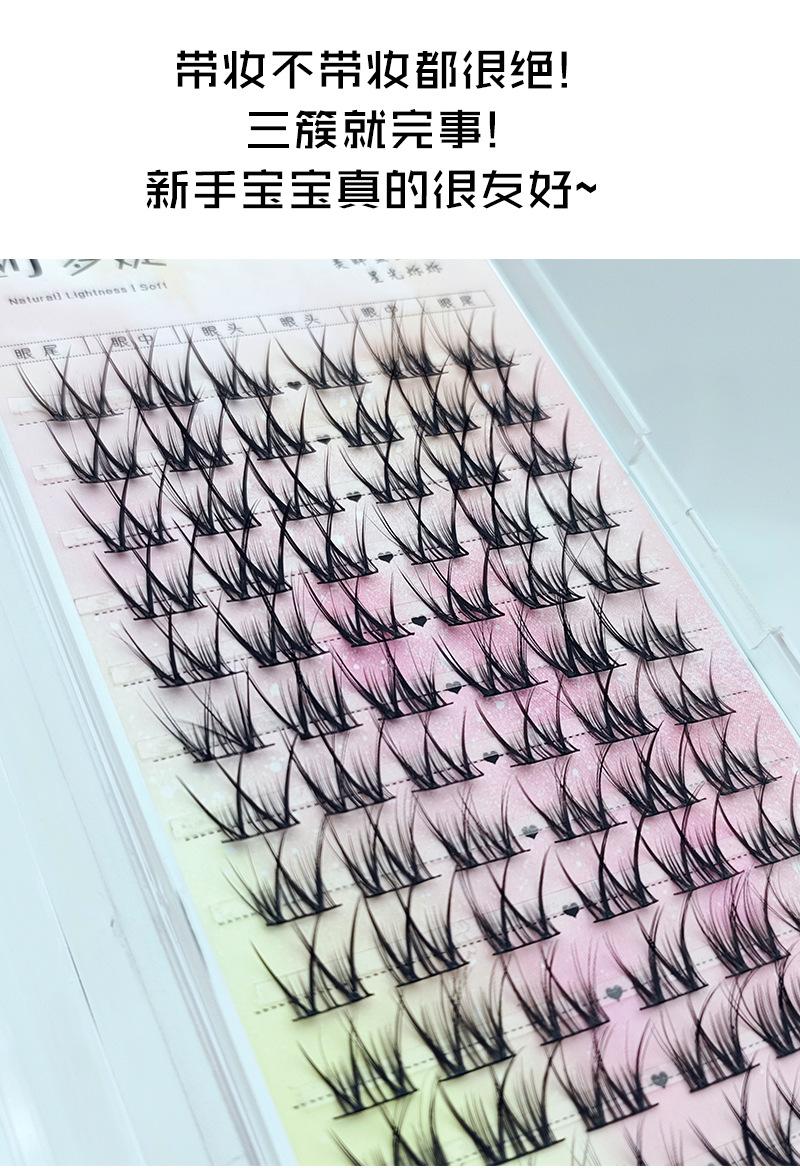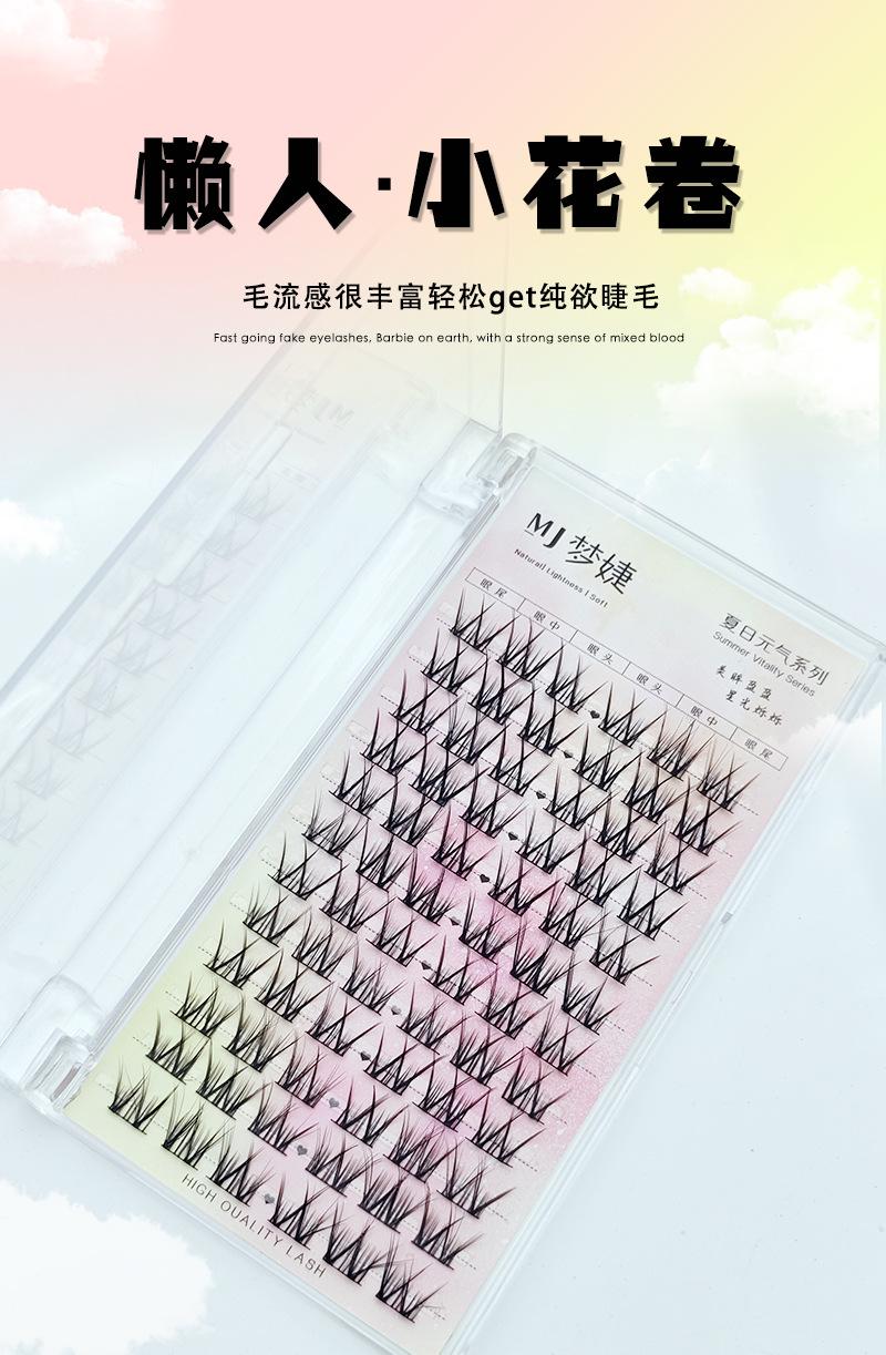 Pestañas postizas de volumen natural con flores pequeñas, pestañas segmentadas de trilogía perezosas, tallo negro, autoinjerto, uso repetido para principiantes