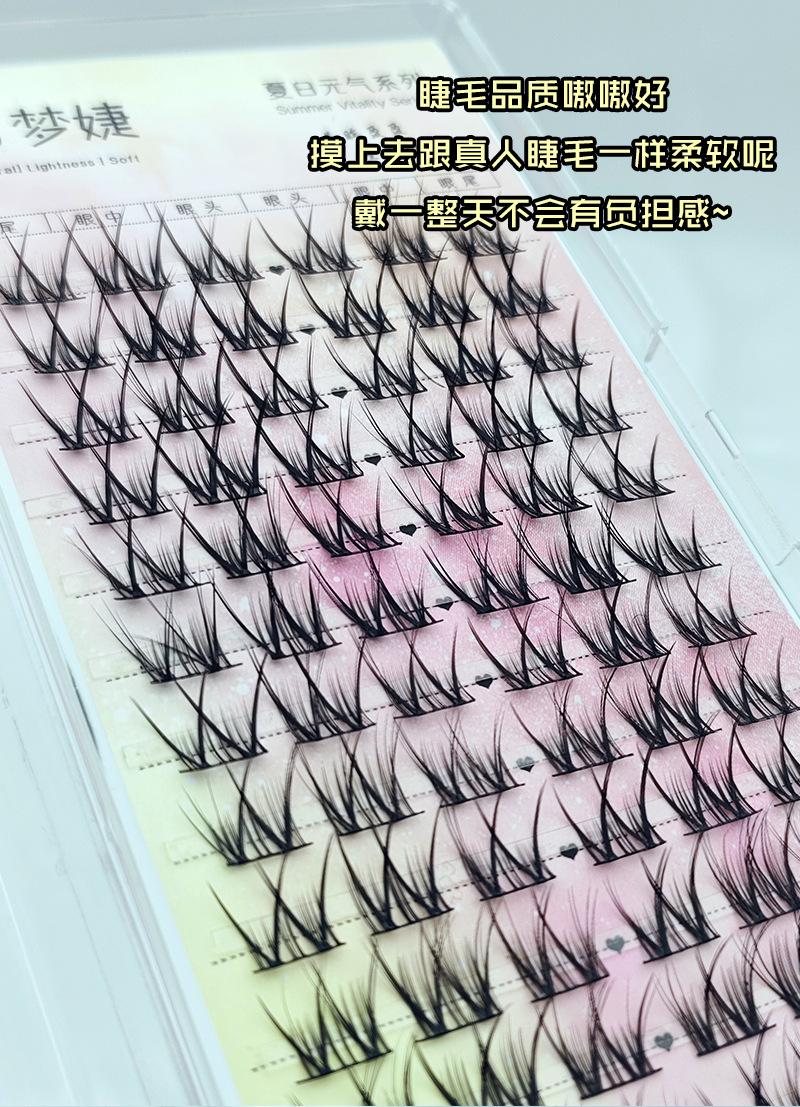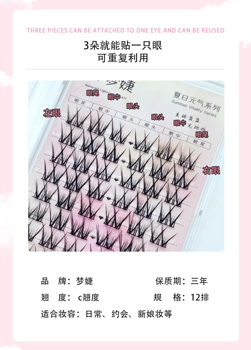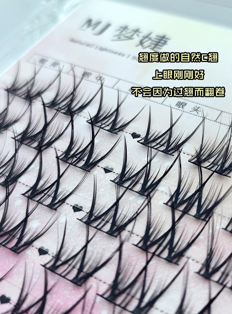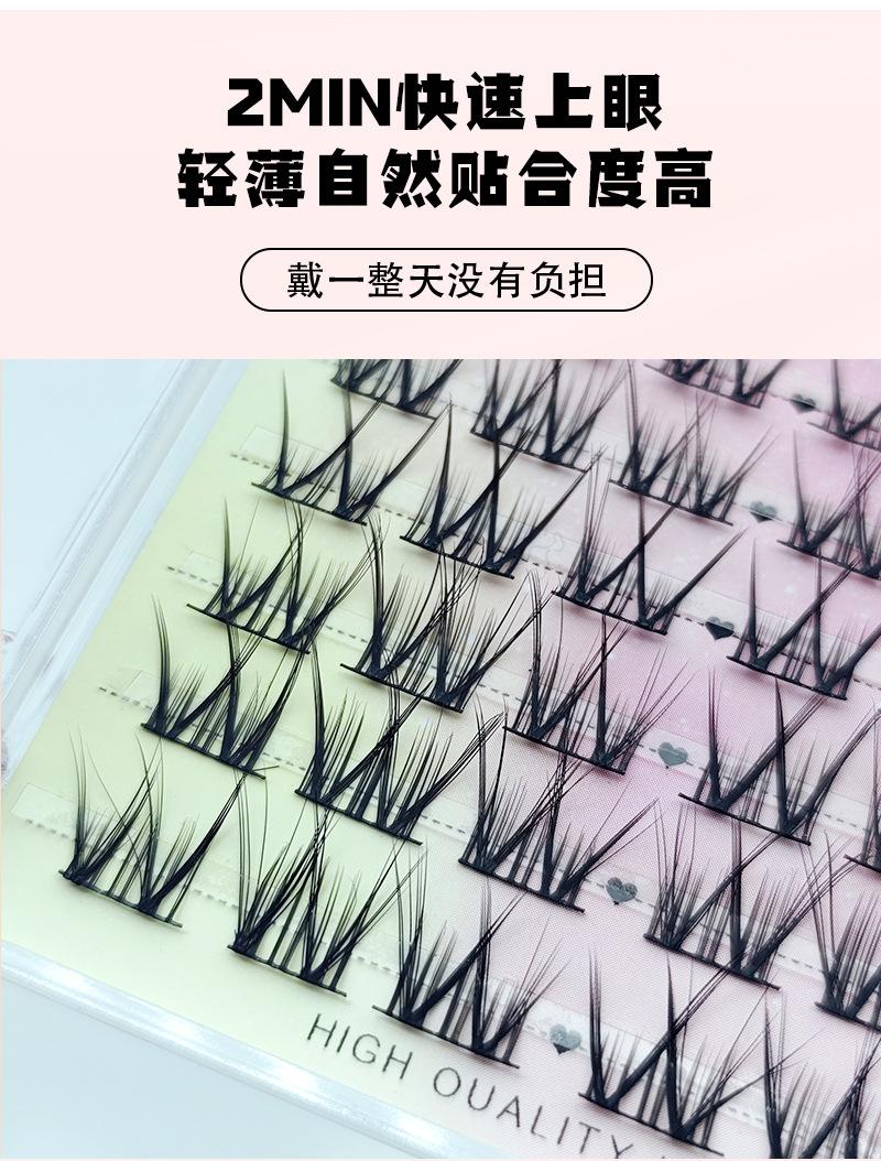 Pestañas postizas de volumen natural con flores pequeñas, pestañas segmentadas de trilogía perezosas, tallo negro, autoinjerto, uso repetido para principiantes
