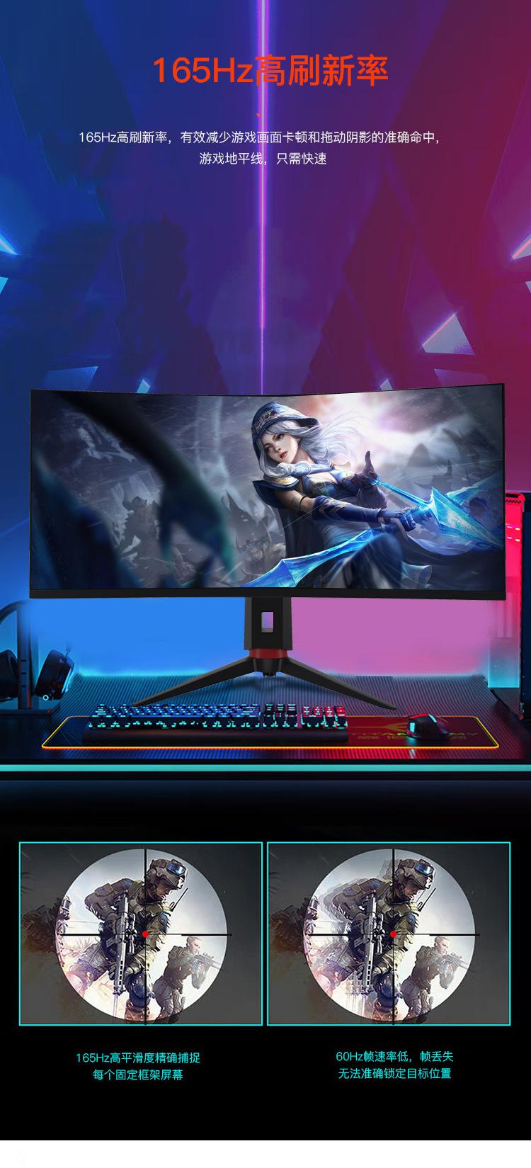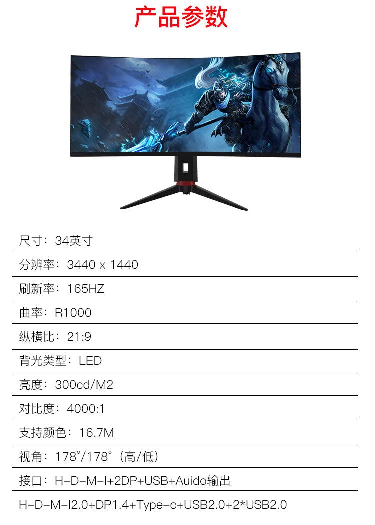 Compra Monitor HD para e-sports de 34 pulgadas Tasa de refresco de 165 Hz LCD Monitor de computadora de escritorio para el hogar Base elevable al por mayor en Joom.pro