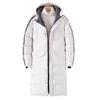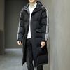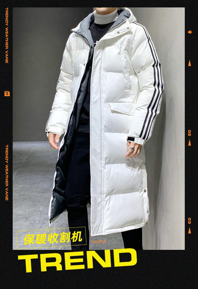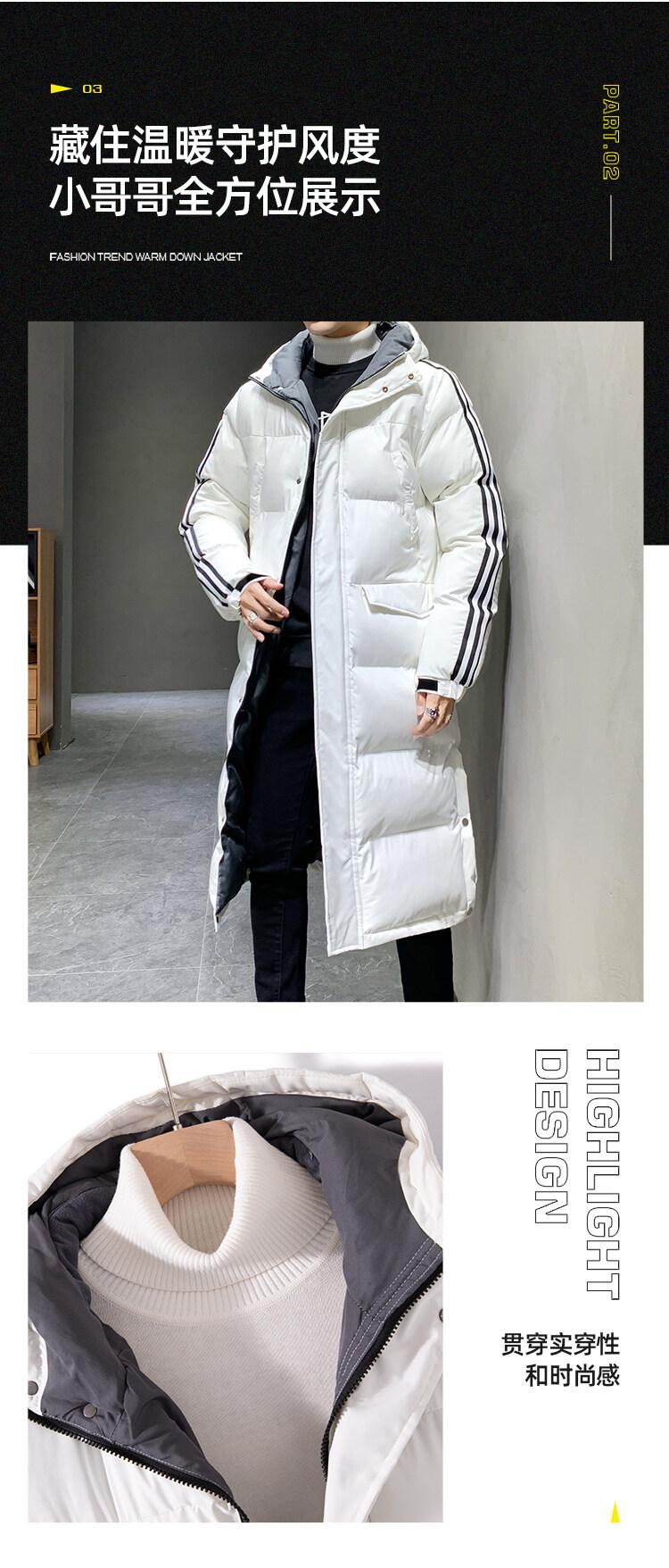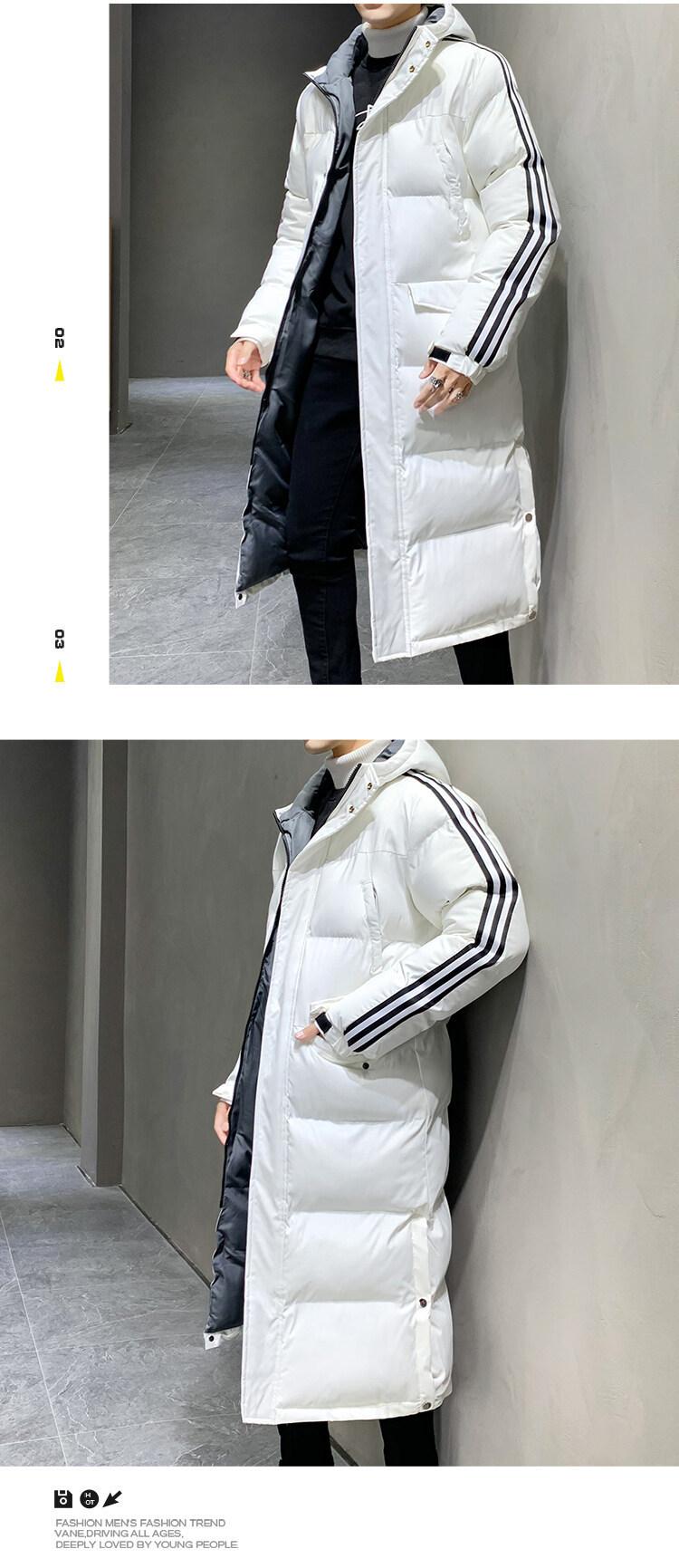 Chaqueta larga de plumón para hombre, nuevo estilo de invierno a la moda, engrosada con tres rayas, juvenil con capucha, chaqueta de moda estilo coreano para hombre