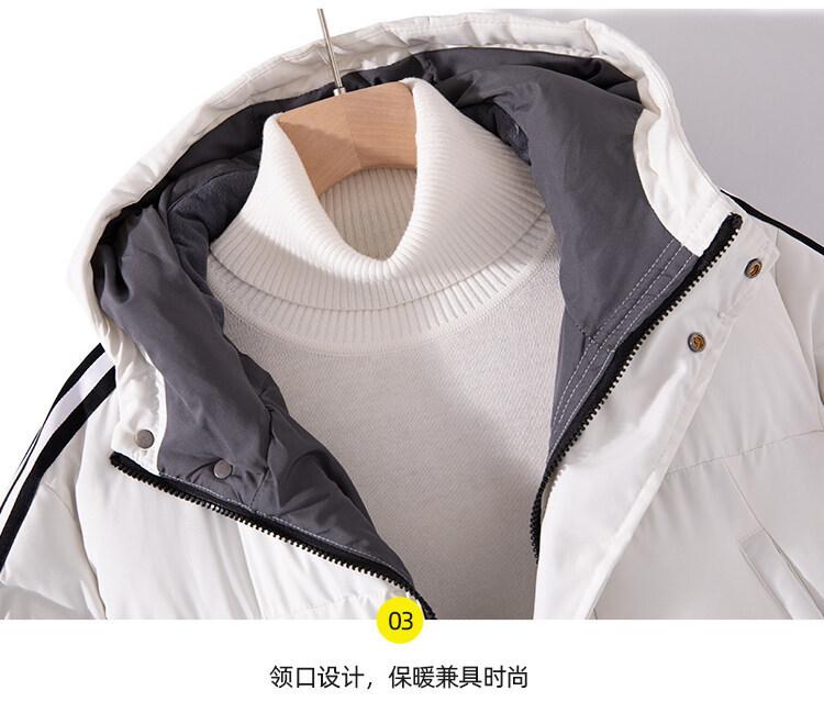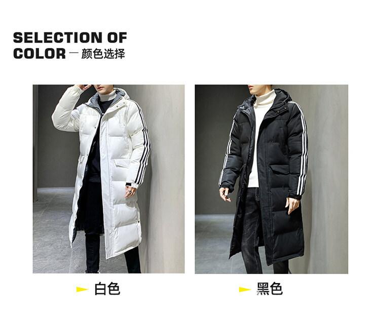 Compra Chamarra larga de plumón para hombre, moderna, invierno, nueva, de tres rayas, gruesa, juvenil, con capucha, a la moda, estilo coreano, abrigo para hombre al por mayor en Joom.pro