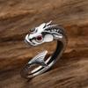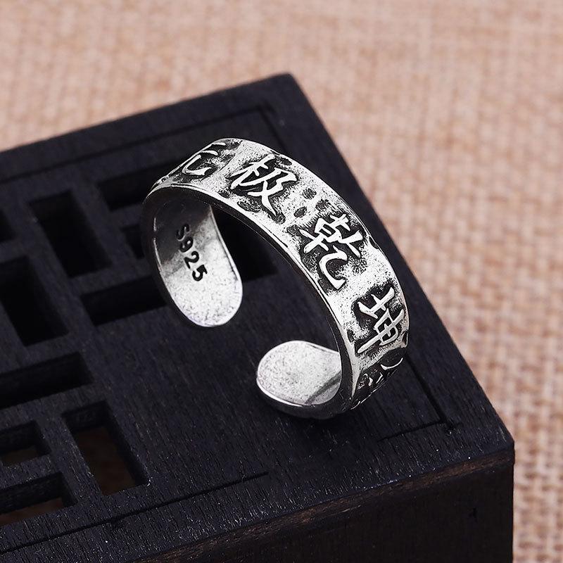 Anillo Wuji Qiankun de plata S925 para hombre, personalidad moderna, estilo retro tailandés, plata envejecida, boca abierta, ajustable