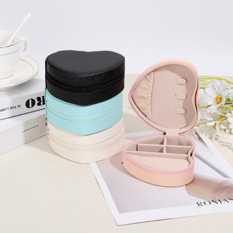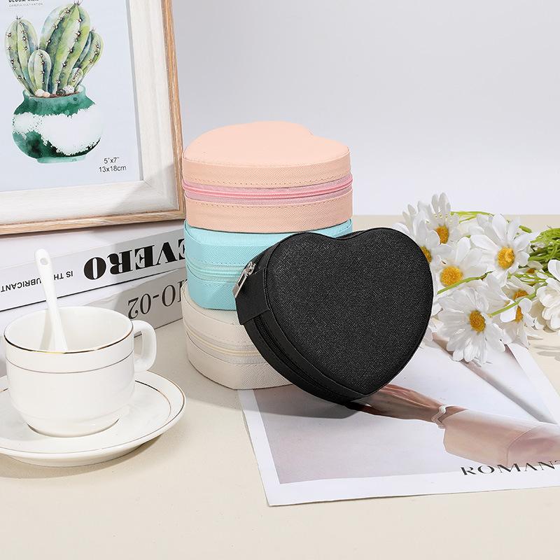 Caja de Almacenamiento de Cuero PU Creativa Caja de Joyería de Viaje con Forma de Corazón Aretes Collar Joyería Viaje Compacta Caja de Regalo Corazón de Durazno