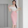 Traje cruzado otoño 2024 nuevo temperamento socialité top de encaje falda de cadera delgada de dos piezas para mujer