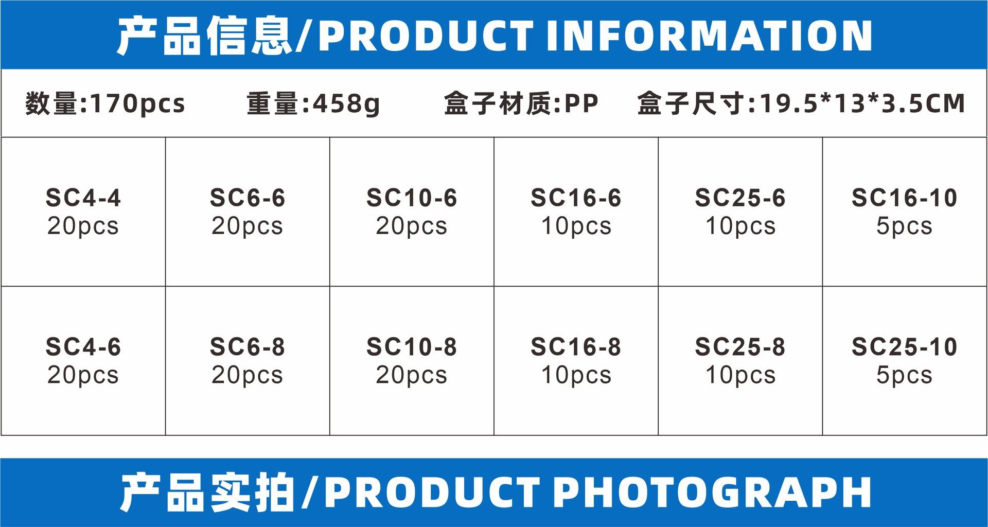 Terminal de cobre peep serie SC en caja de 170 piezas transfronterizas, calibre AWG de EE. UU., punta de cobre desnuda