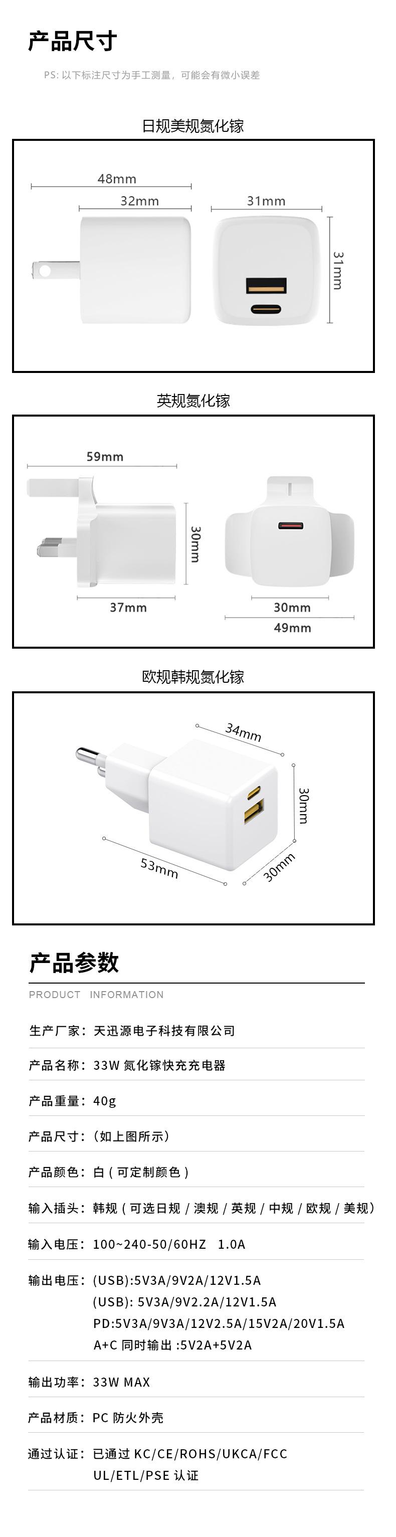 33W gallium nitride American standard single C port, 33W gallium nitride Korean standard single C port, 33W ga...