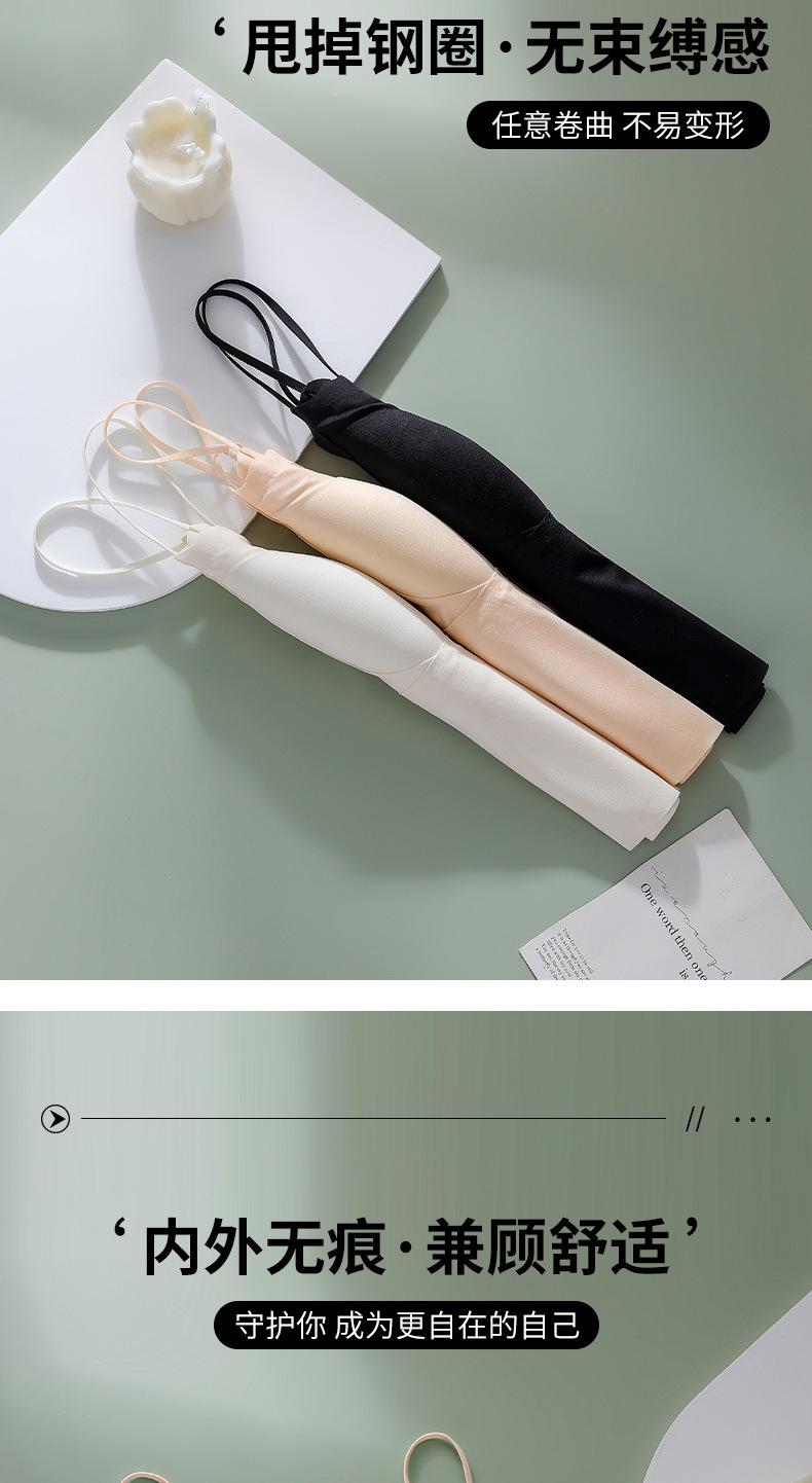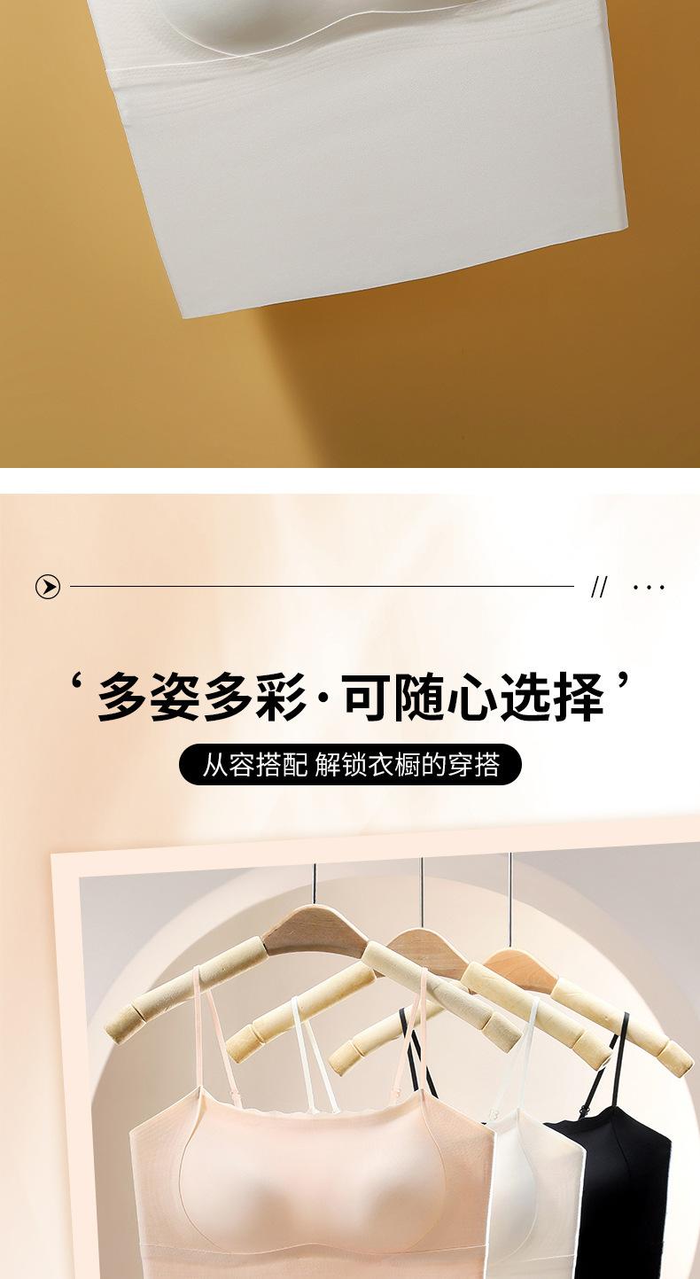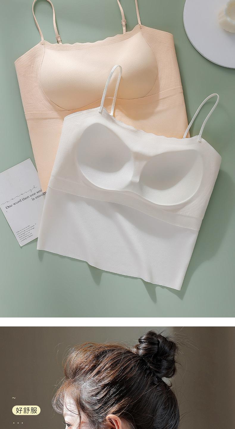Camisola sin costuras con espalda descubierta, copa fija integrada, pecho pequeño sin aro de acero, top de tubo de seda fina fruncido para mujer