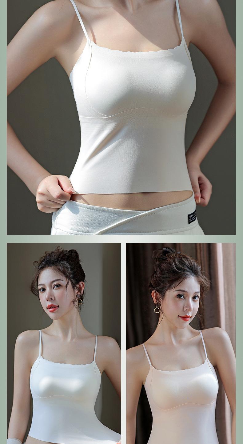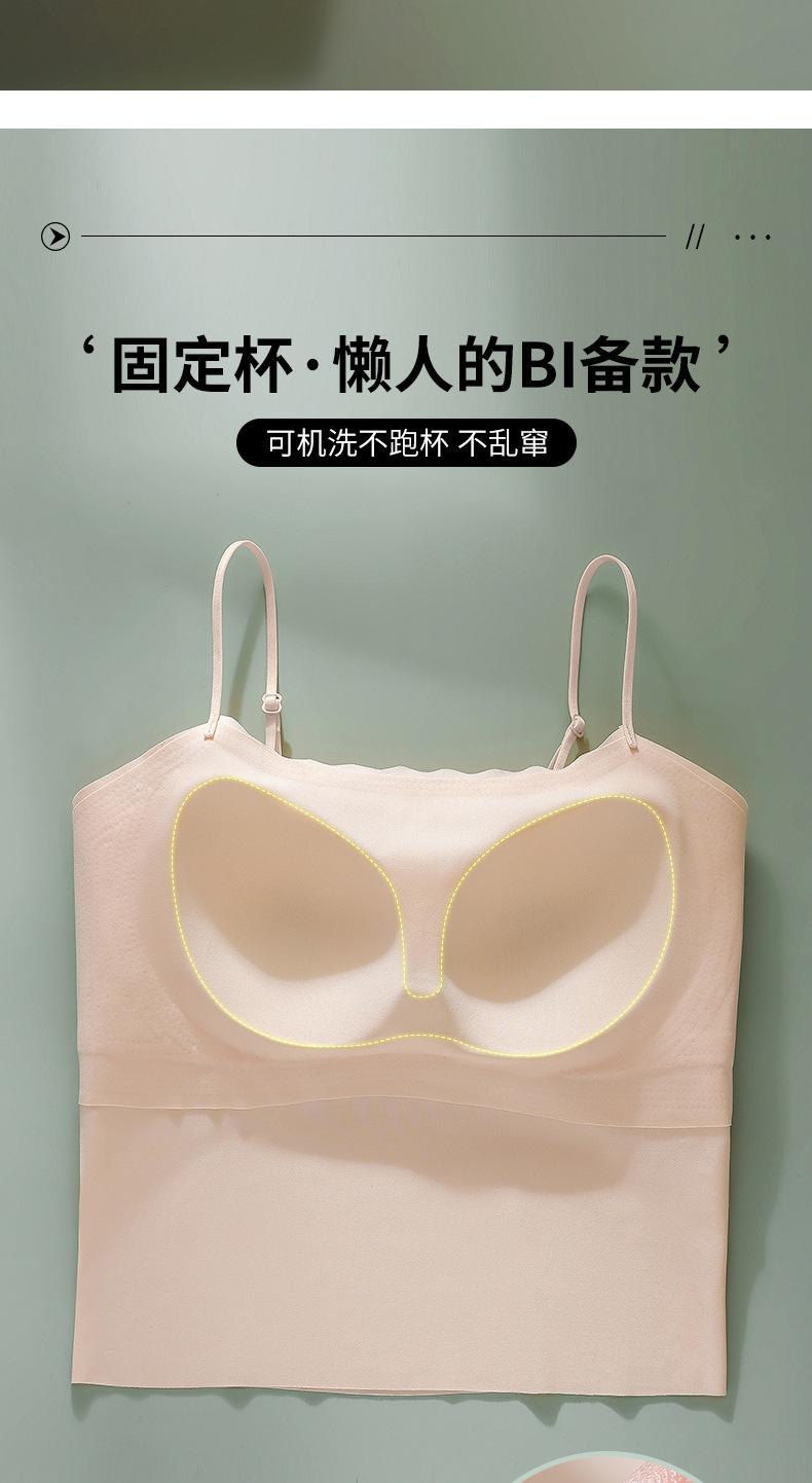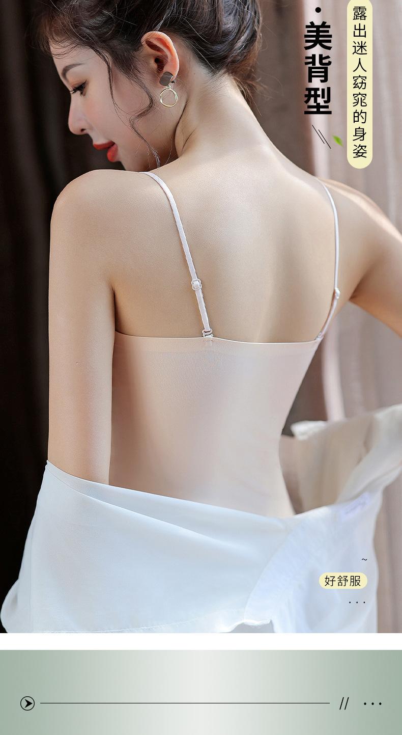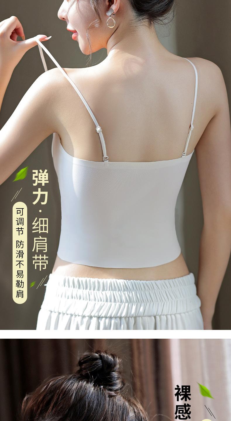 Camisola sin costuras con espalda descubierta, copa fija integrada, pecho pequeño sin aro de acero, top de tubo de seda fina fruncido para mujer