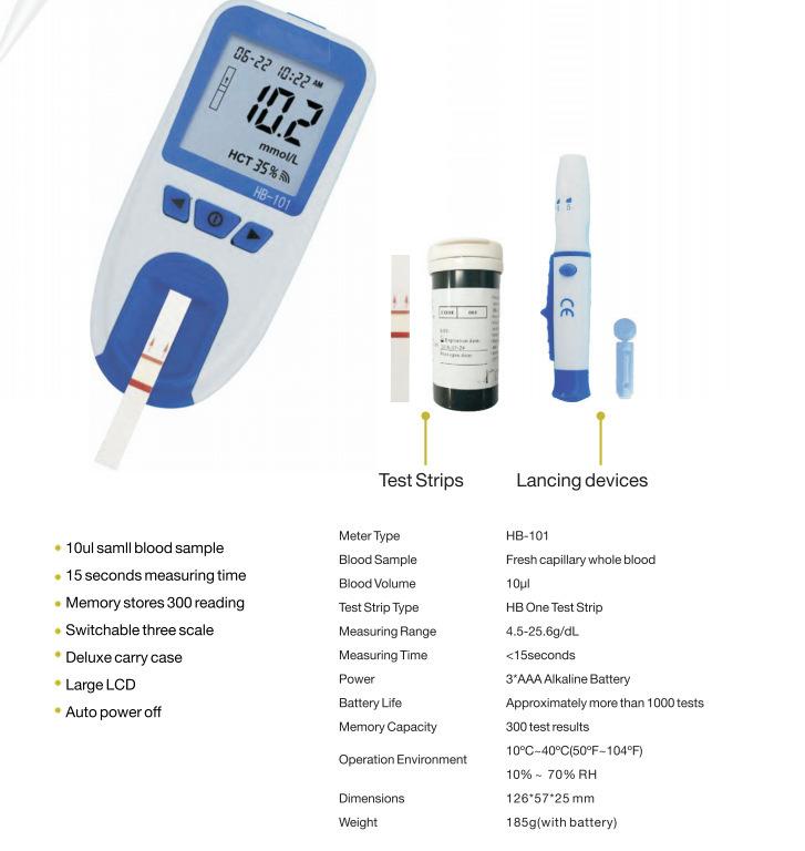 Kit de prueba de anemia para el hogar con analizador de hemoglobina de fábrica que contiene 25 tiras reactivas de hemoglobina.