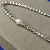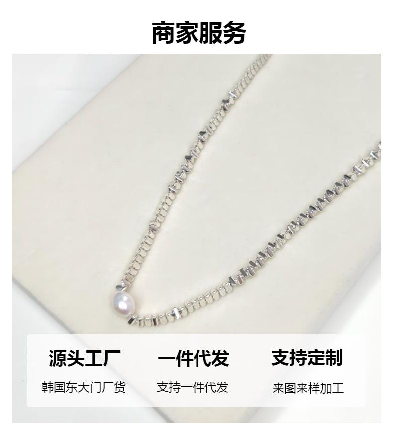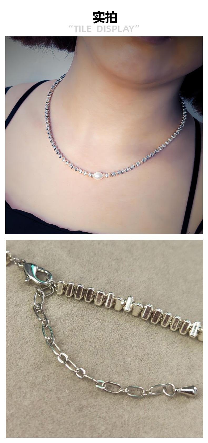 Collar de Perlas de Agua Dulce Simple Elegante para Mujer Mini Triángulo Geométrico Plata Rota Cadena Clavícula Collar Venta al por Mayor Elegante