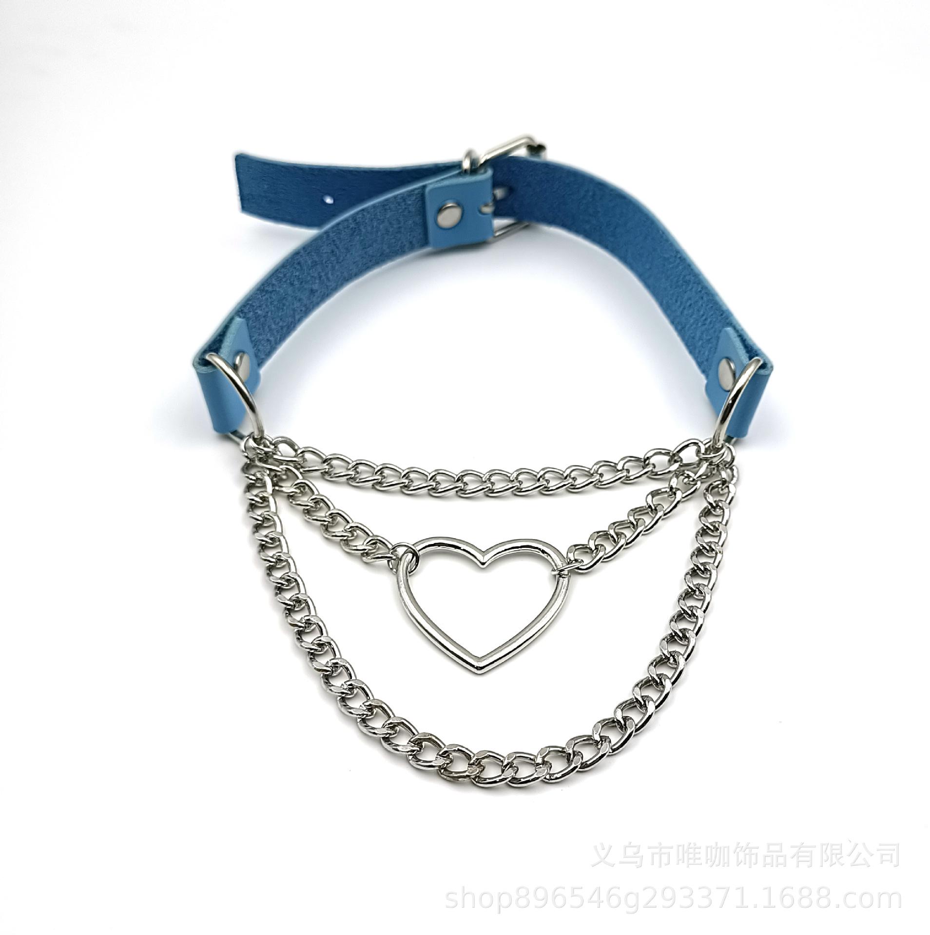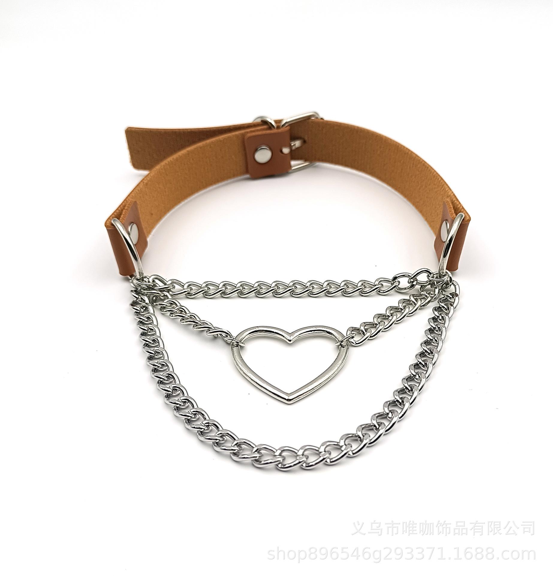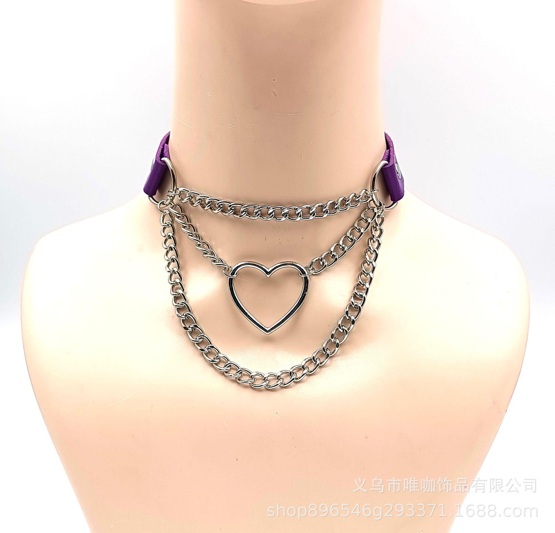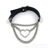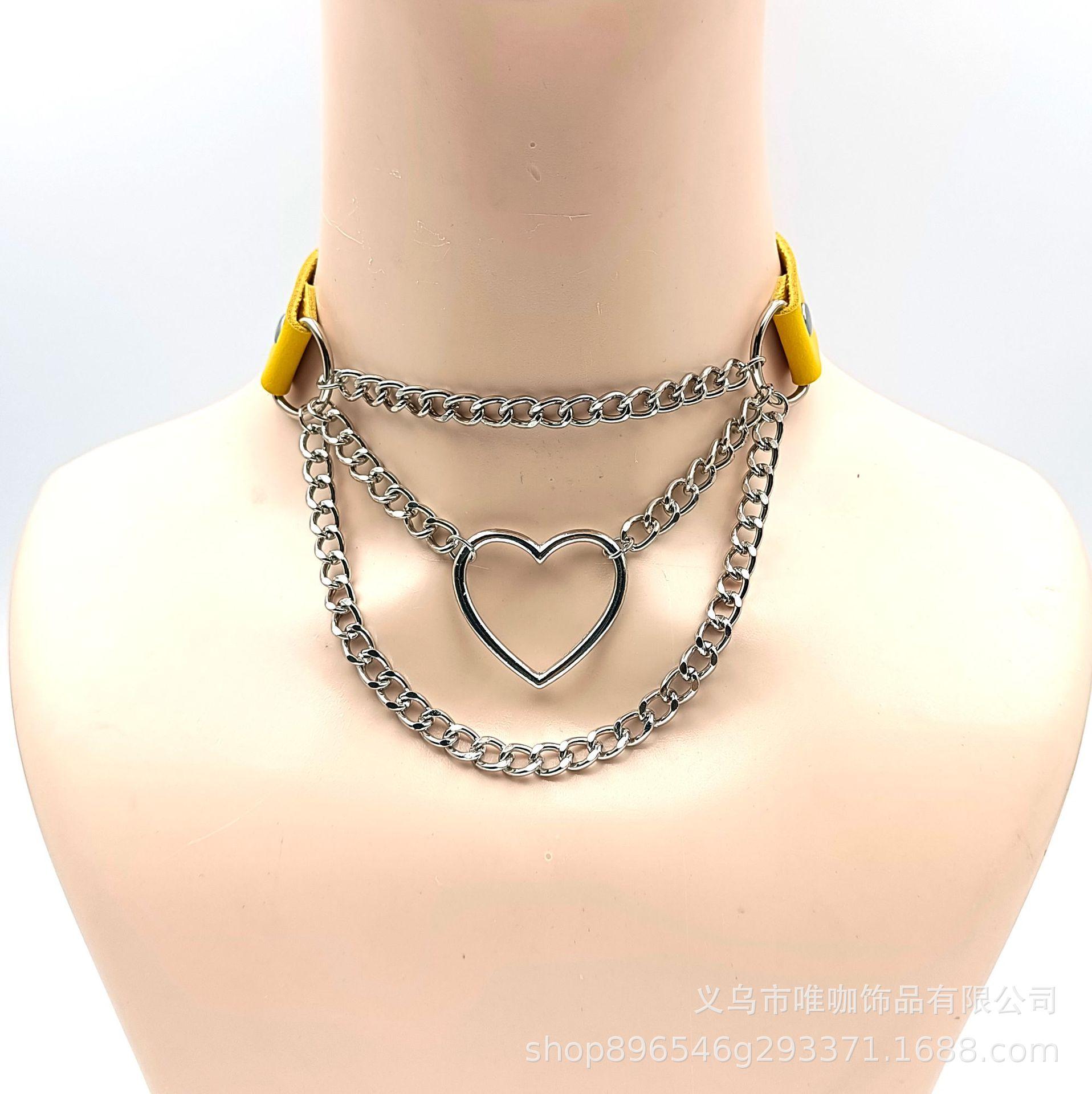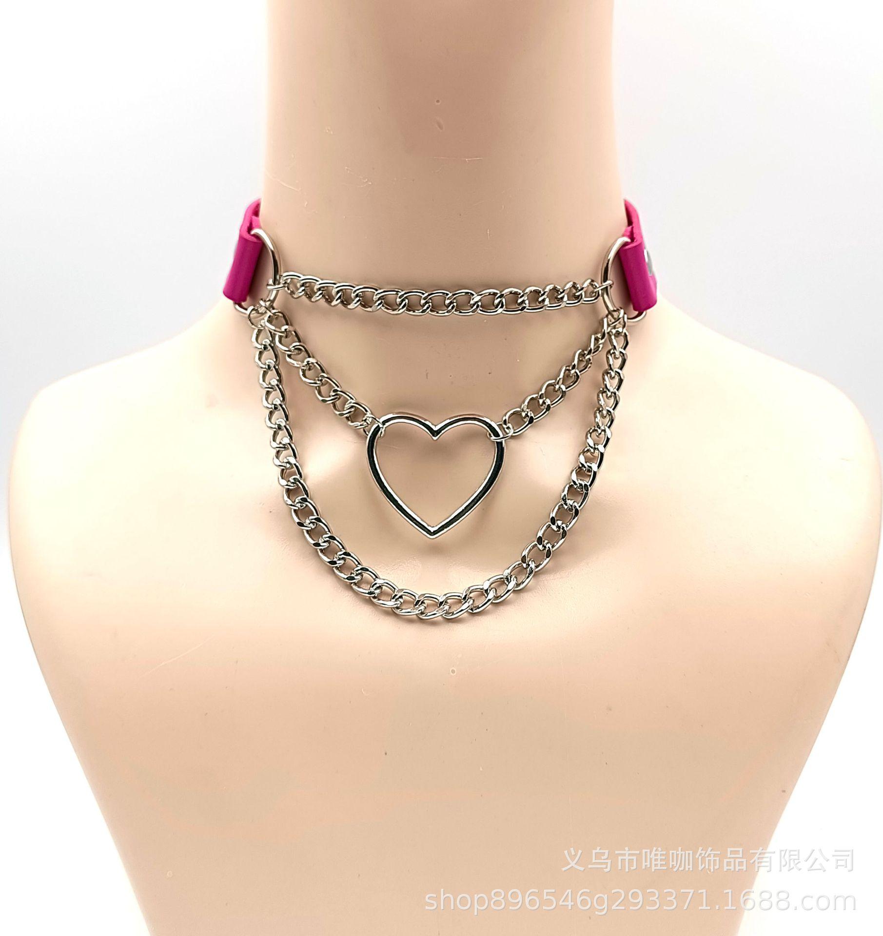 Cadena Multicapa en Forma de Corazón Europea y Americana Transfronteriza Gargantilla de Cuero con Cadena Múltiple de Corazón de Personalidad de Moda Dulce Cool Punk Collar Gargantilla