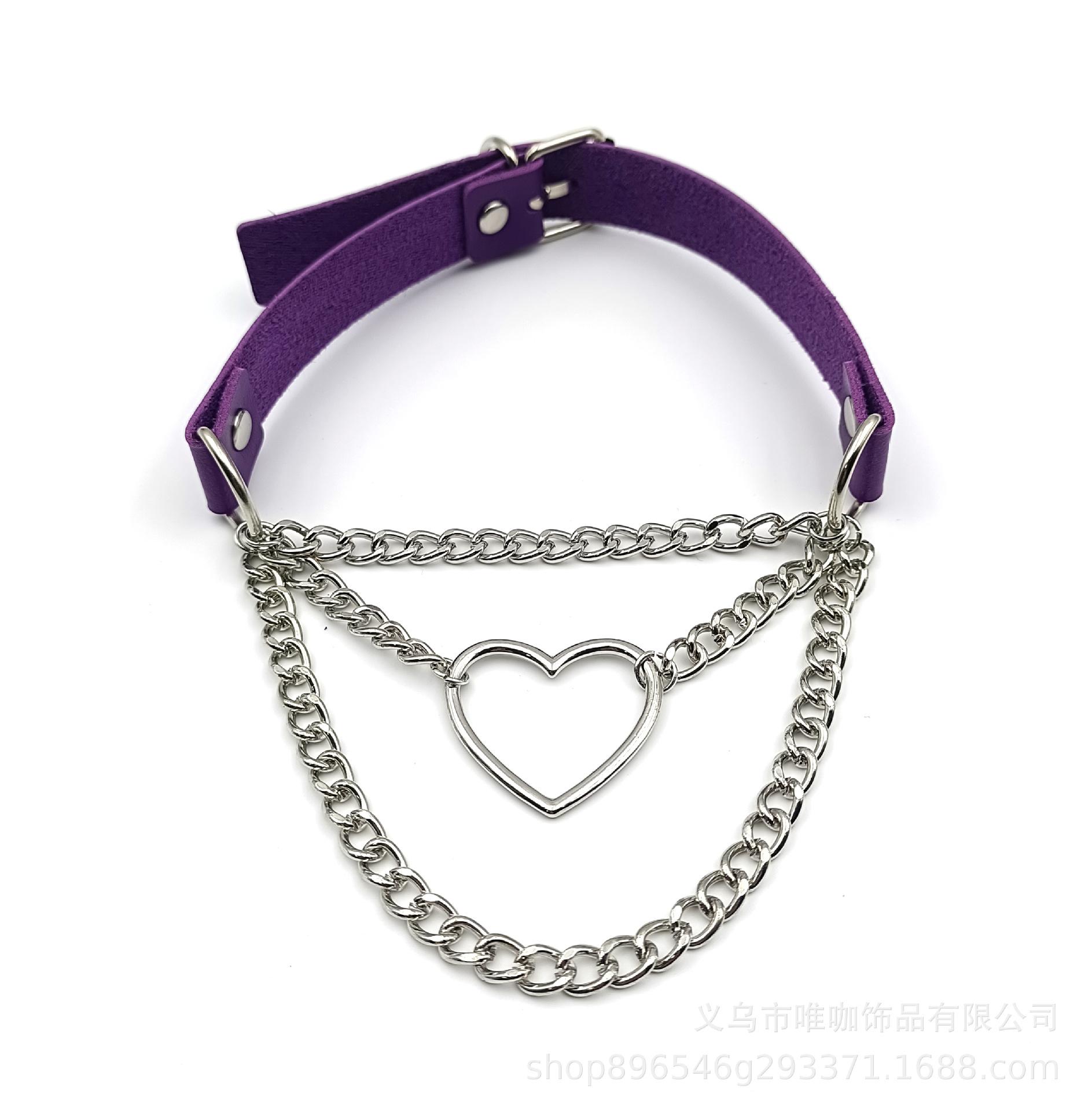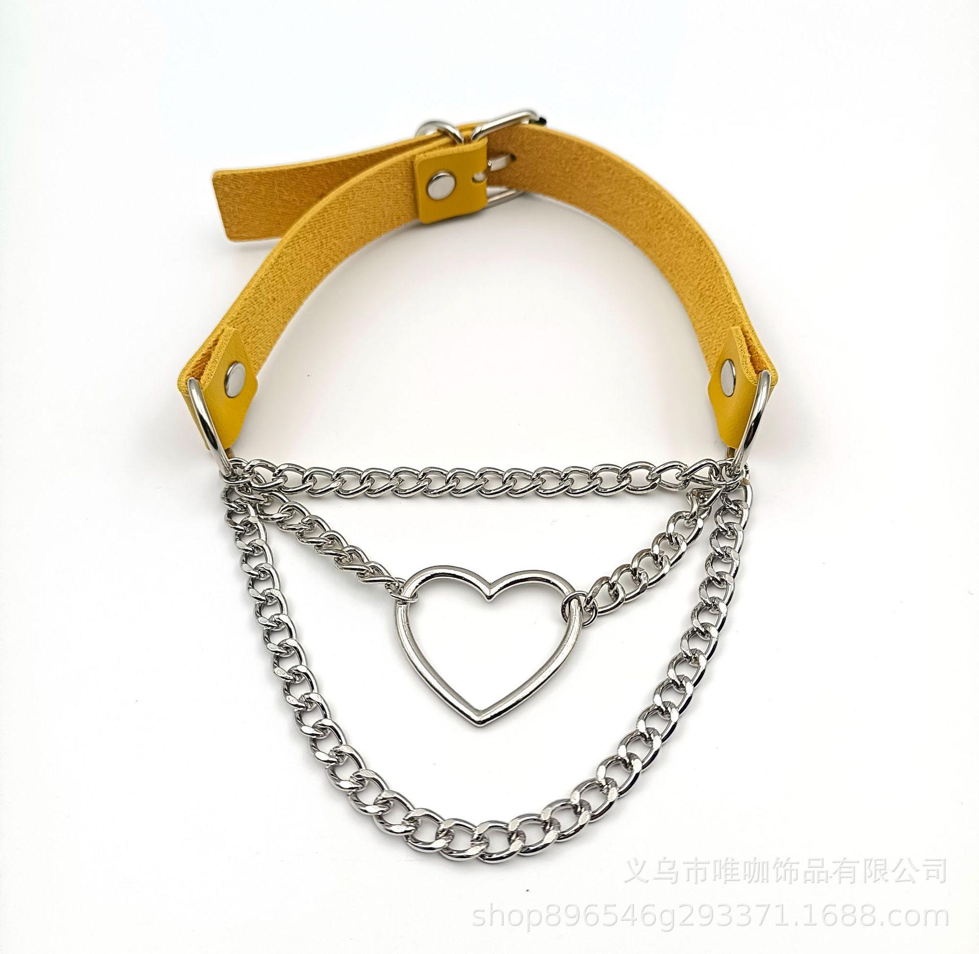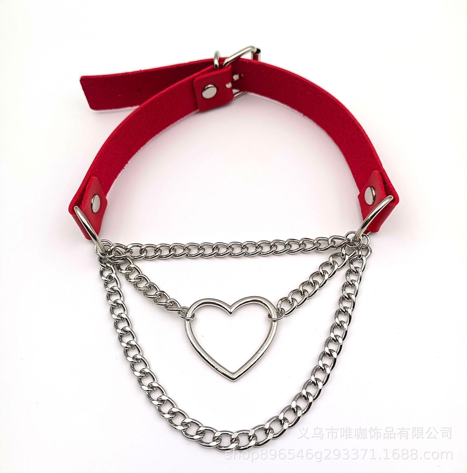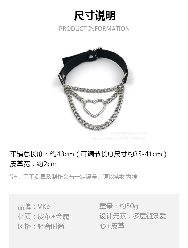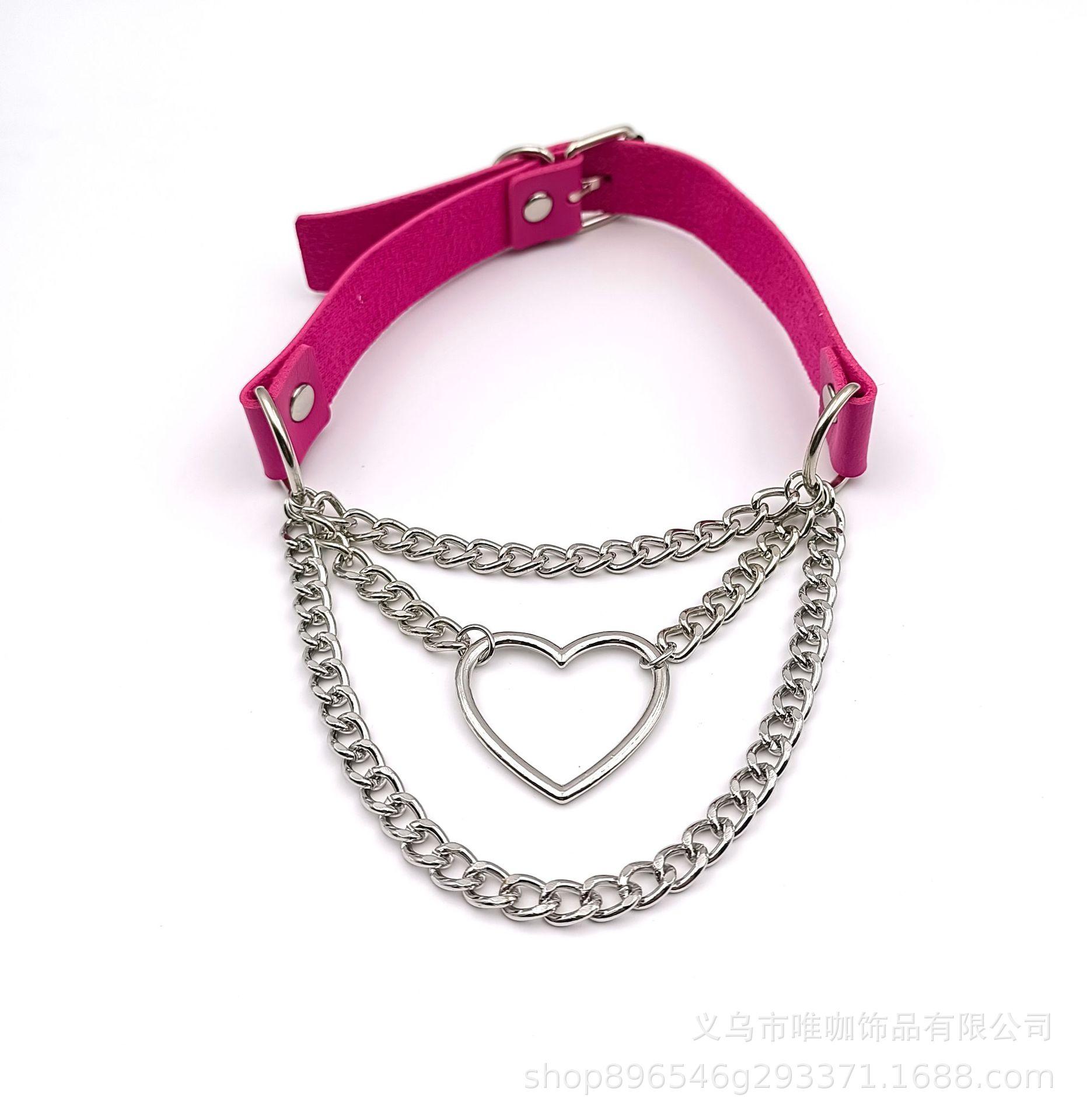 Cadena Multicapa en Forma de Corazón Europea y Americana Transfronteriza Gargantilla de Cuero con Cadena Múltiple de Corazón de Personalidad de Moda Dulce Cool Punk Collar Gargantilla