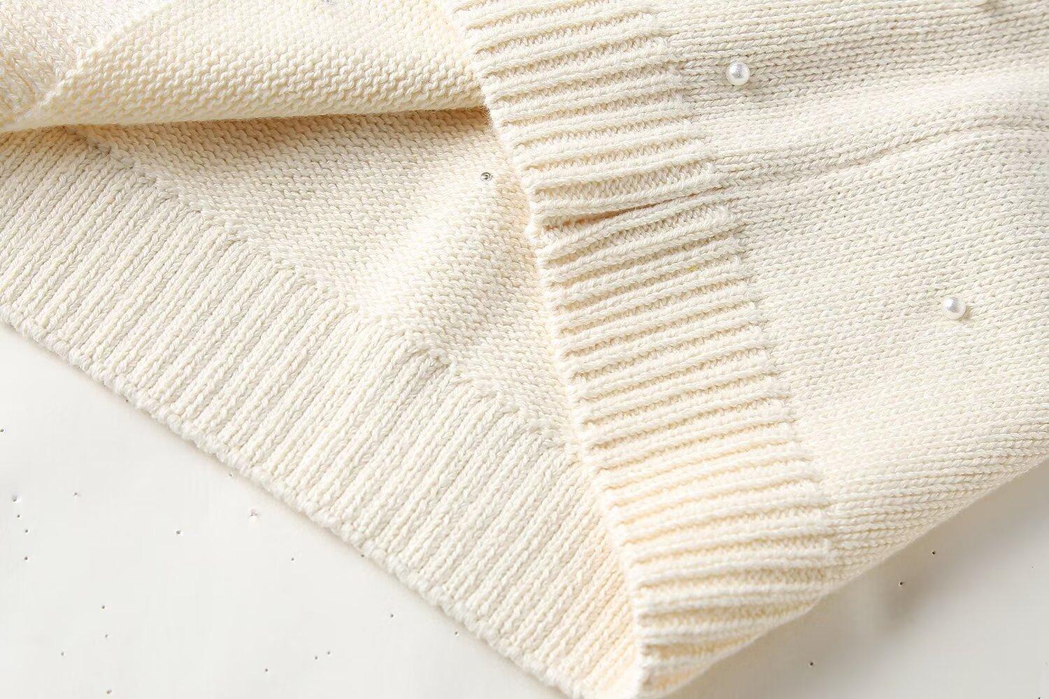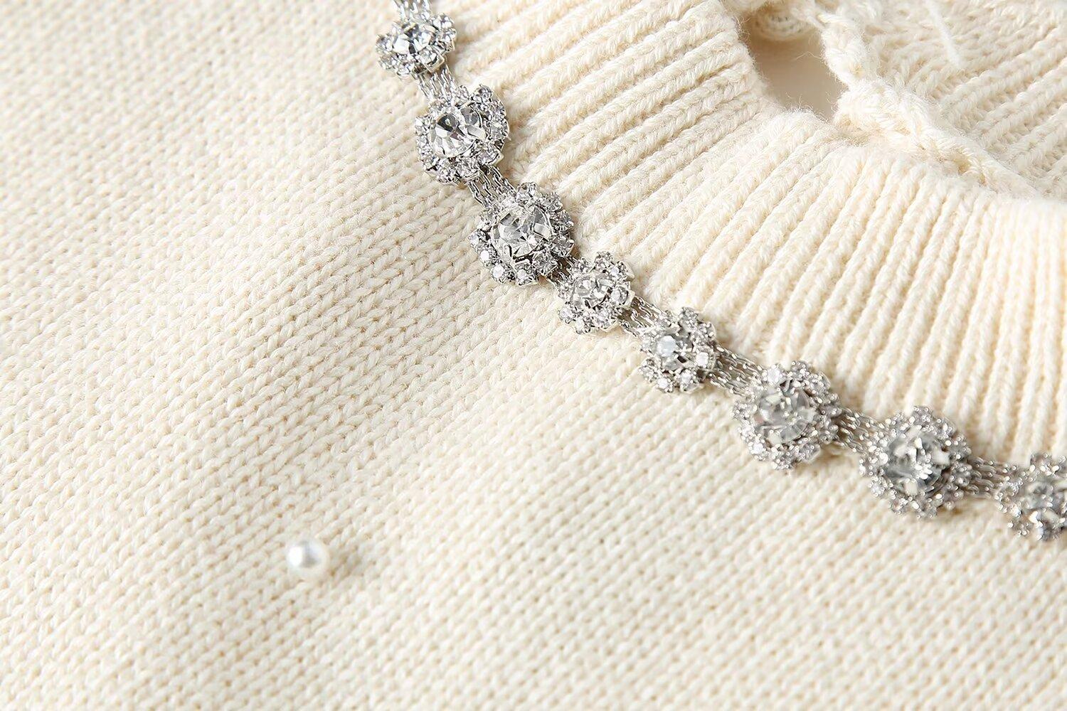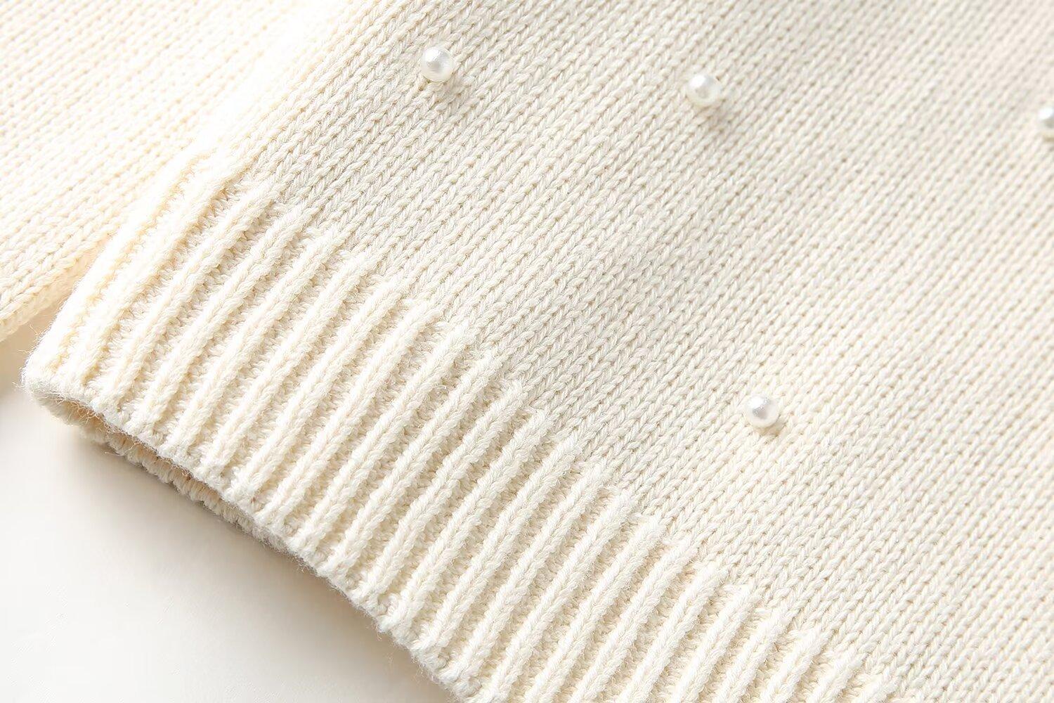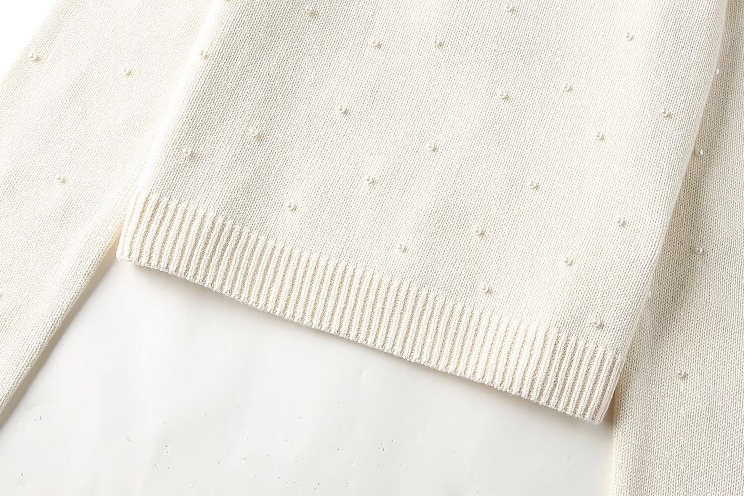 Primavera 2024 Nueva Llegada Moda Femenina Transfronteriza Europea y Americana Jersey Jersey de Cuello Redondo Adorno de Perla Artificial Jersey