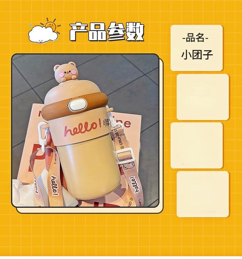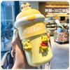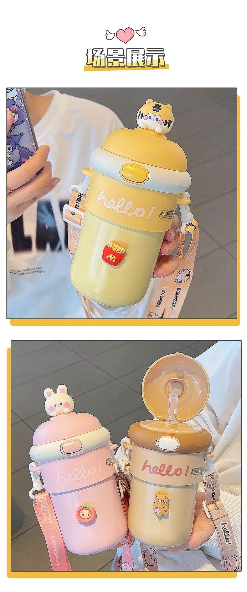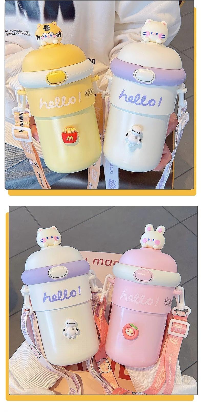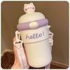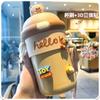 Taza de agua con correa de dibujos animados de color rojo de alta calidad para niña, linda taza de paja de gran capacidad, taza de vidrio portátil para estudiantes