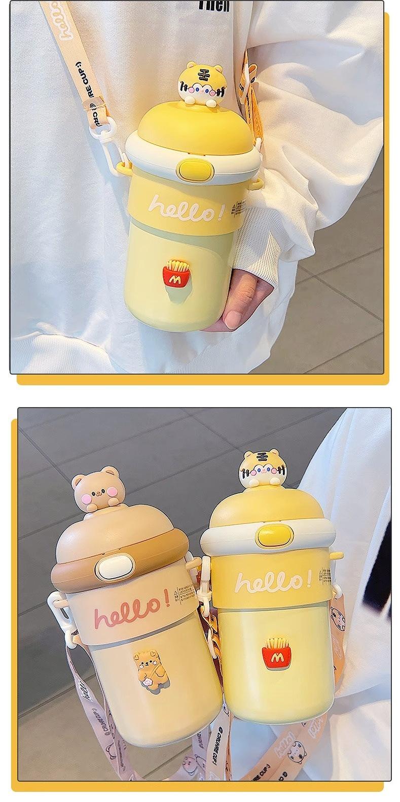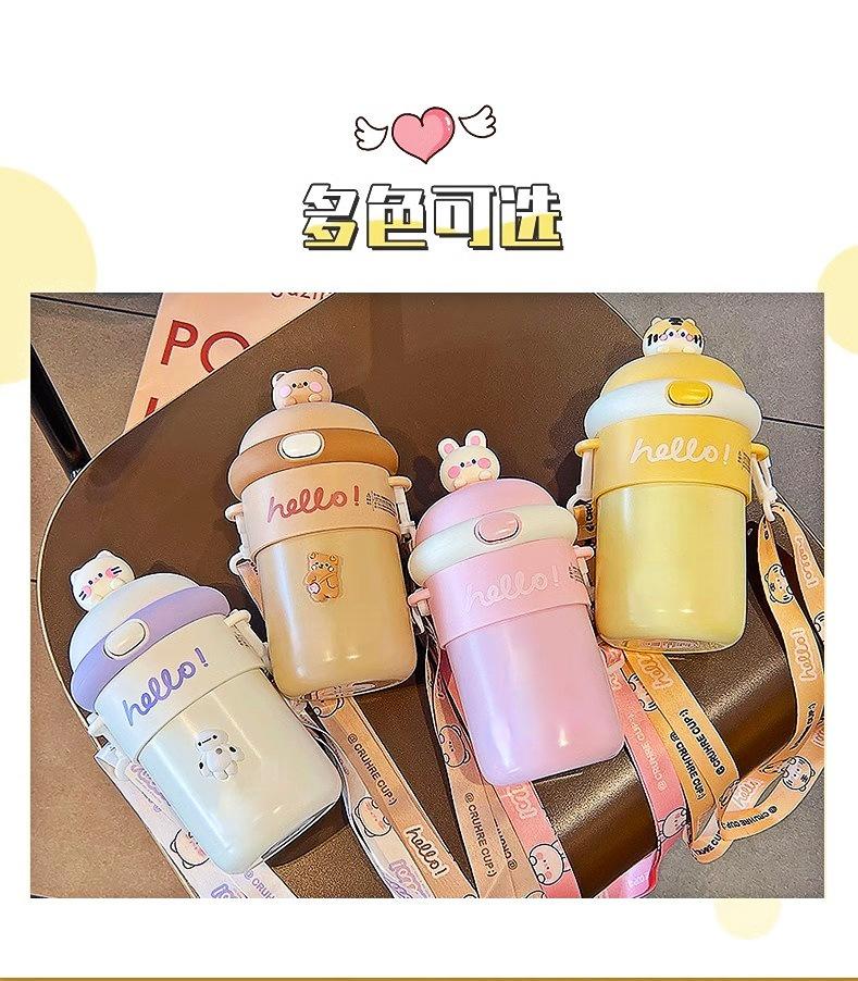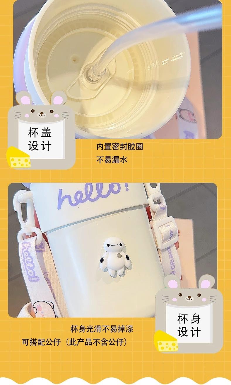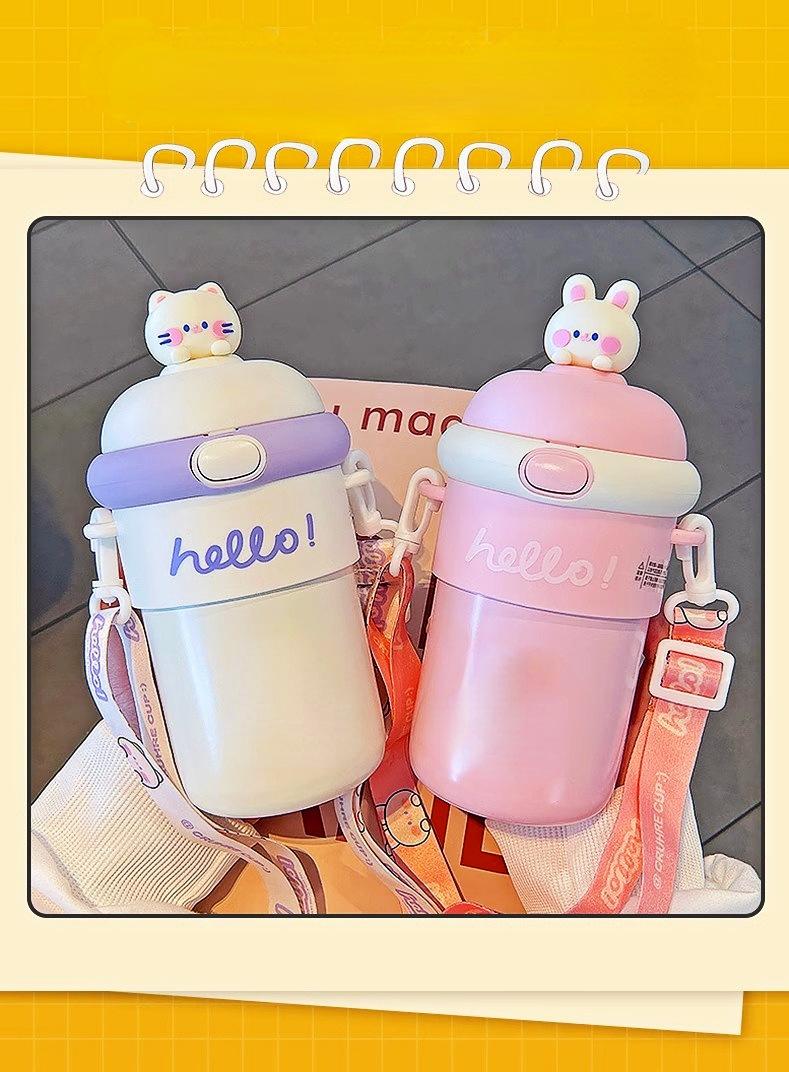Taza de agua con correa de dibujos animados de color rojo de alta calidad para niña, linda taza de paja de gran capacidad, taza de vidrio portátil para estudiantes