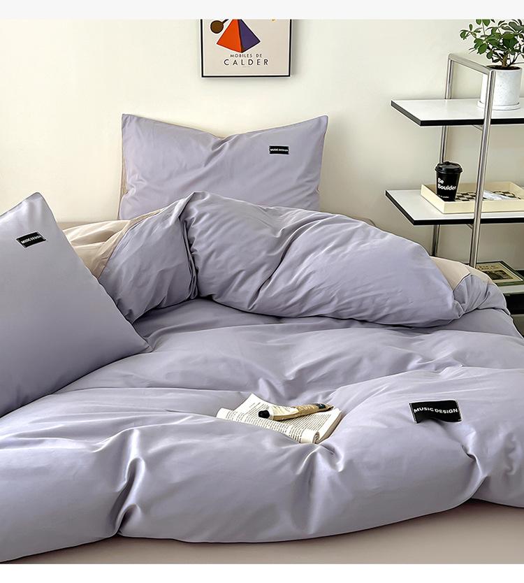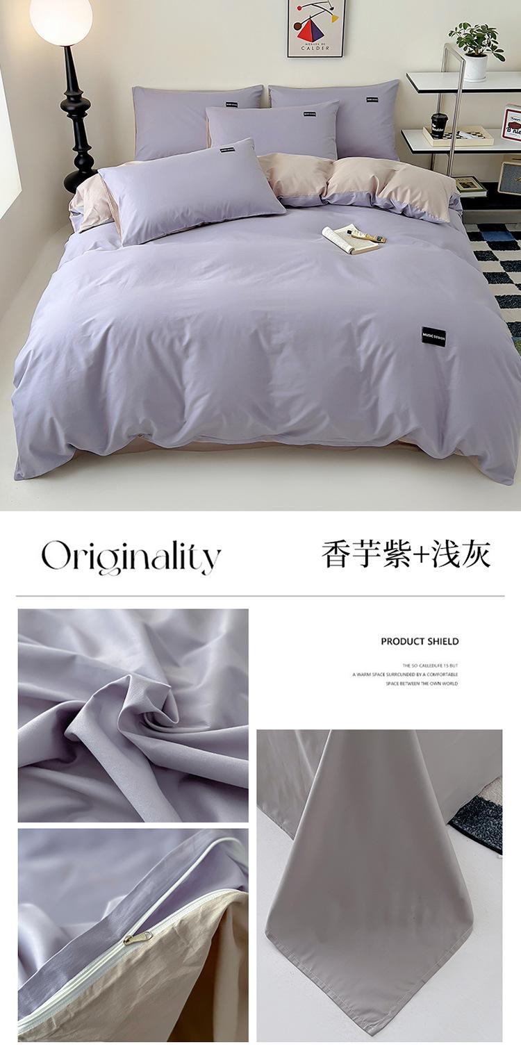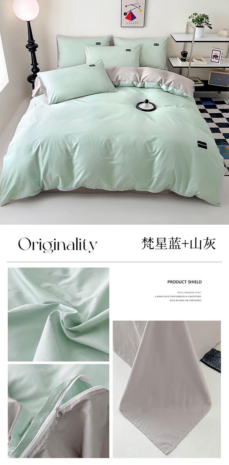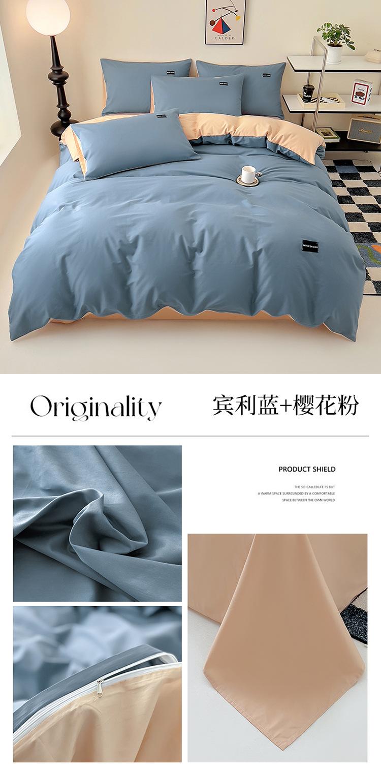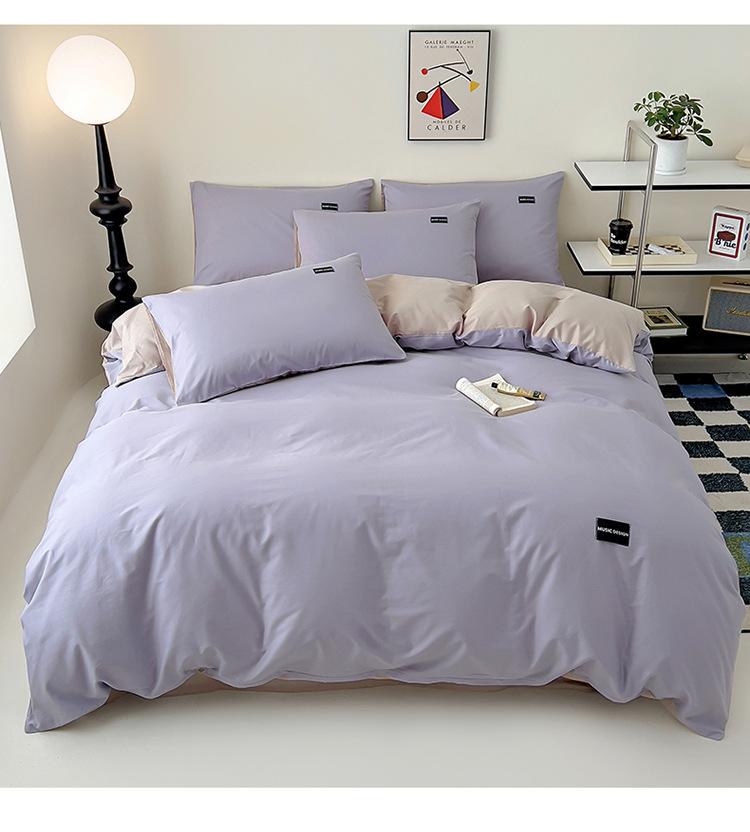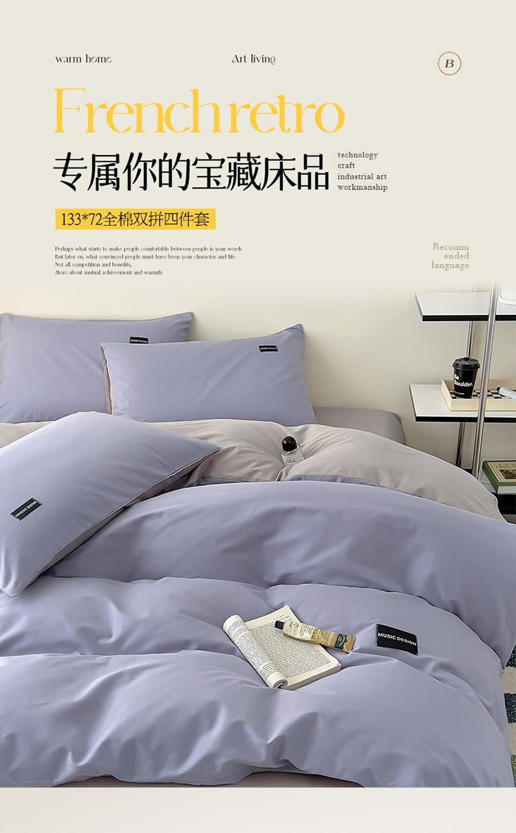 Juego de cuatro piezas de algodón 100%, funda de cama de algodón, funda de edredón sencilla para dormitorio de estudiantes, sábana, suministros para cama doble, juego de tres piezas 4