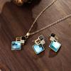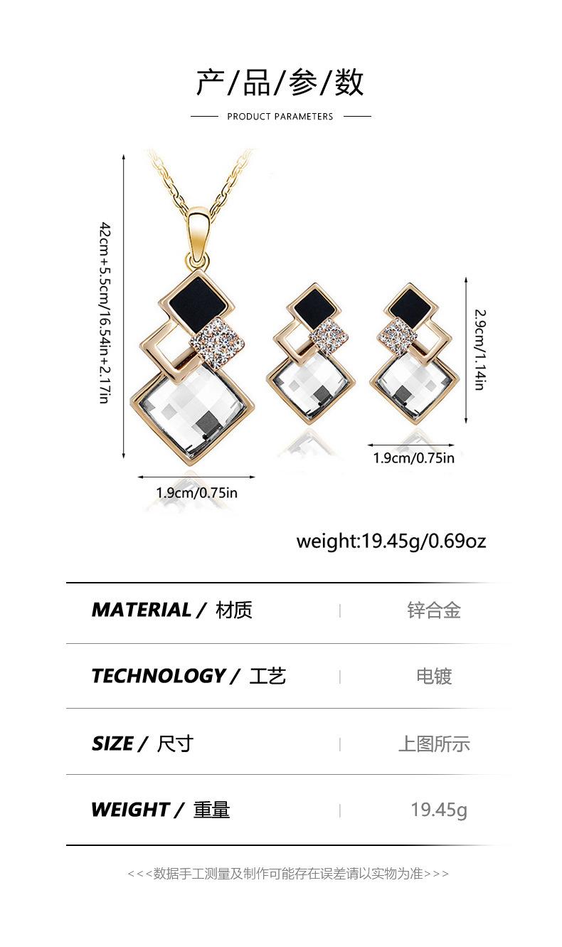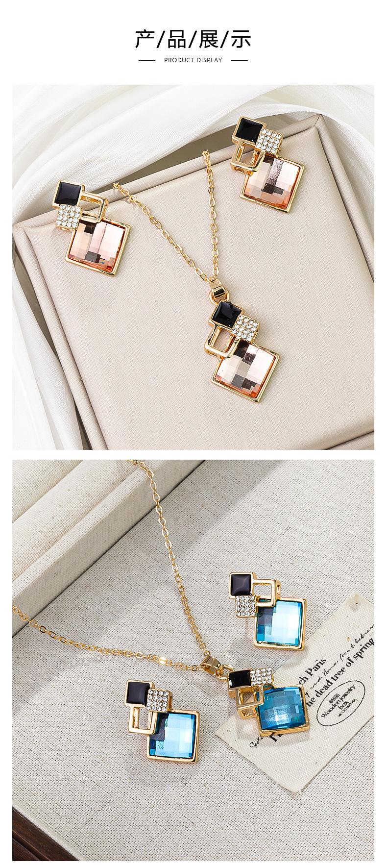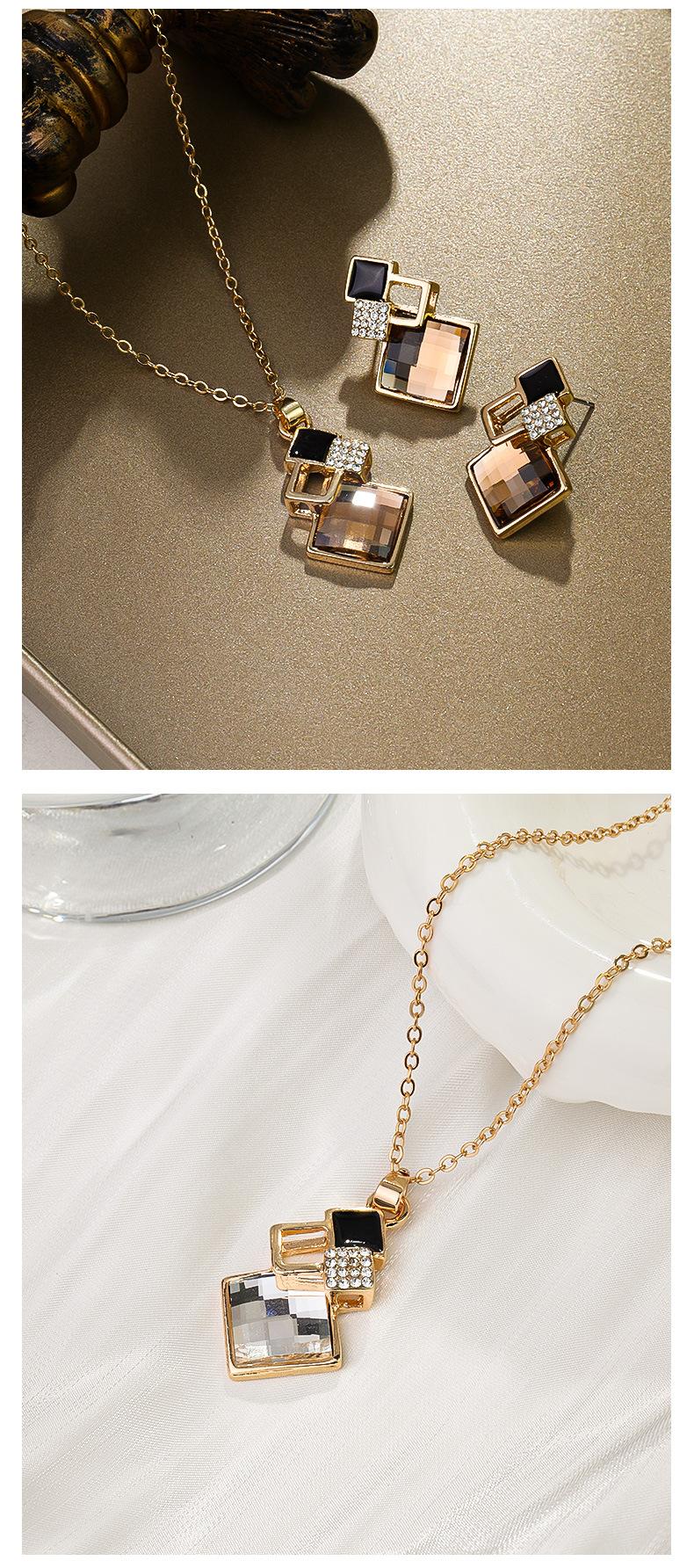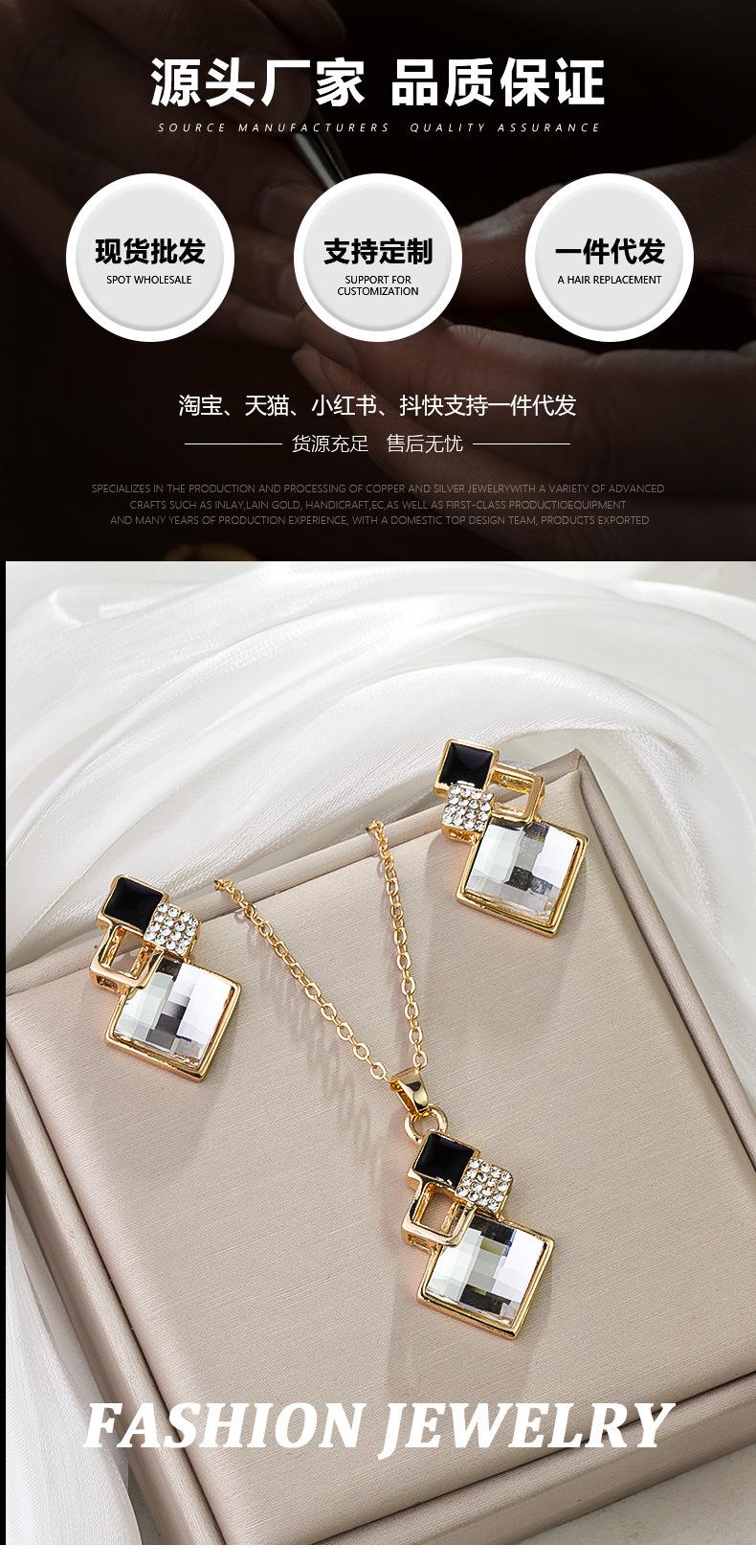 Pendientes cuadrados geométricos con incrustaciones de diamantes de moda europea y americana transfronteriza, nicho simple versátil, collar, pendientes, aretes de tuerca plateados