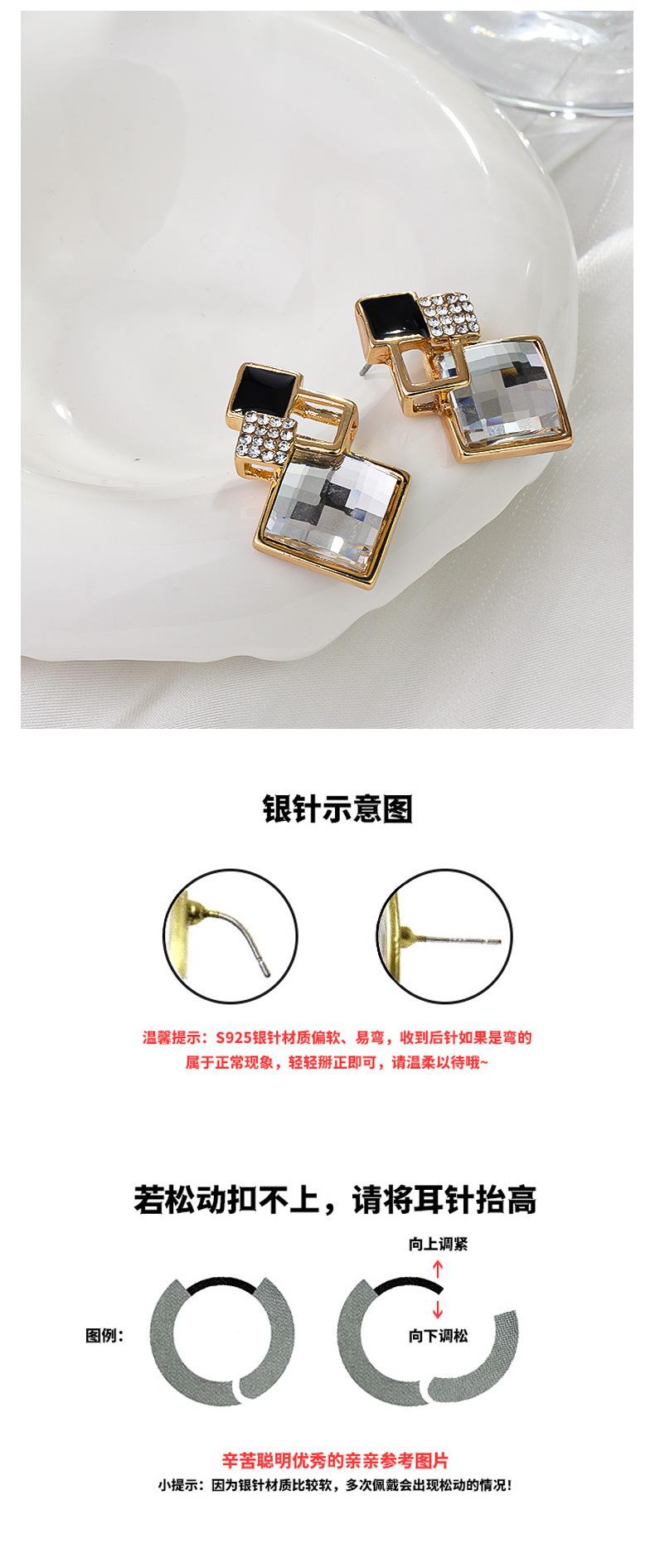 Compra Pendientes cuadrados geométricos con incrustaciones de diamantes de moda europea y americana transfronteriza, nicho simple versátil, collar, pendientes, aretes de tuerca plateados al por mayor en Joom.pro