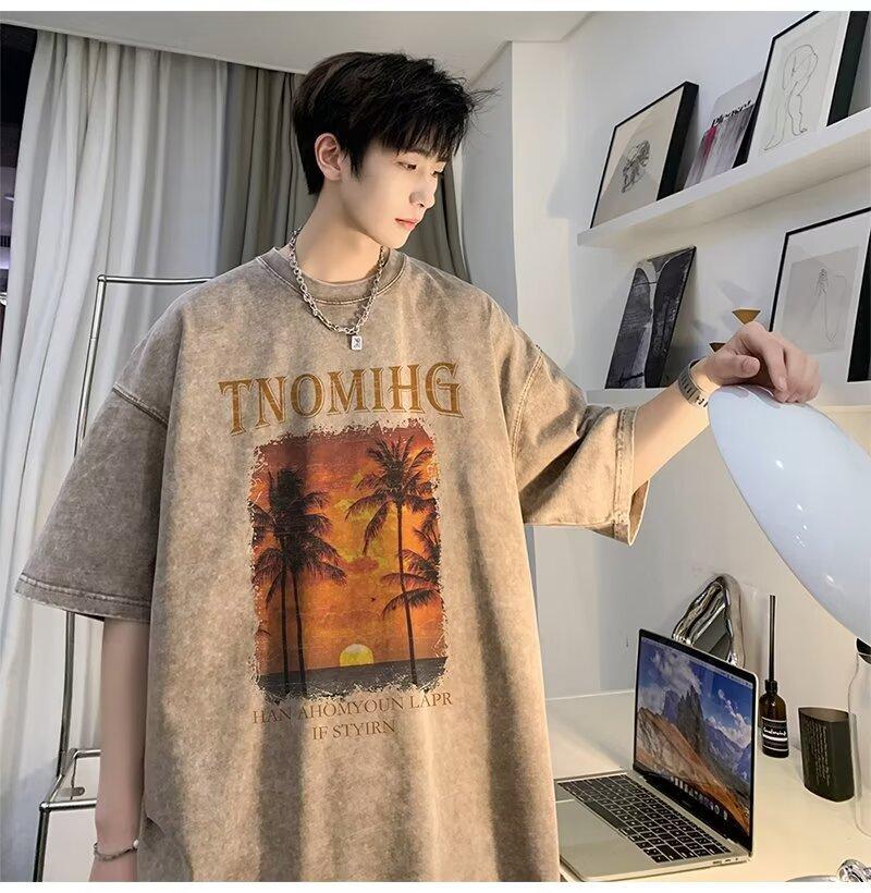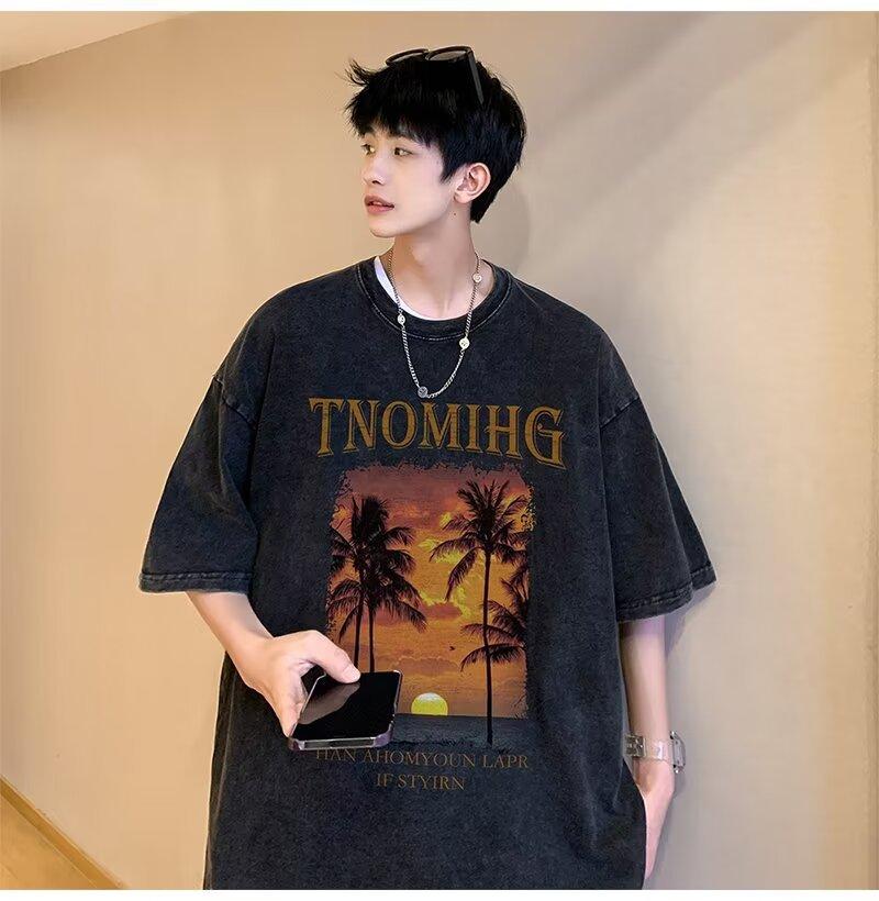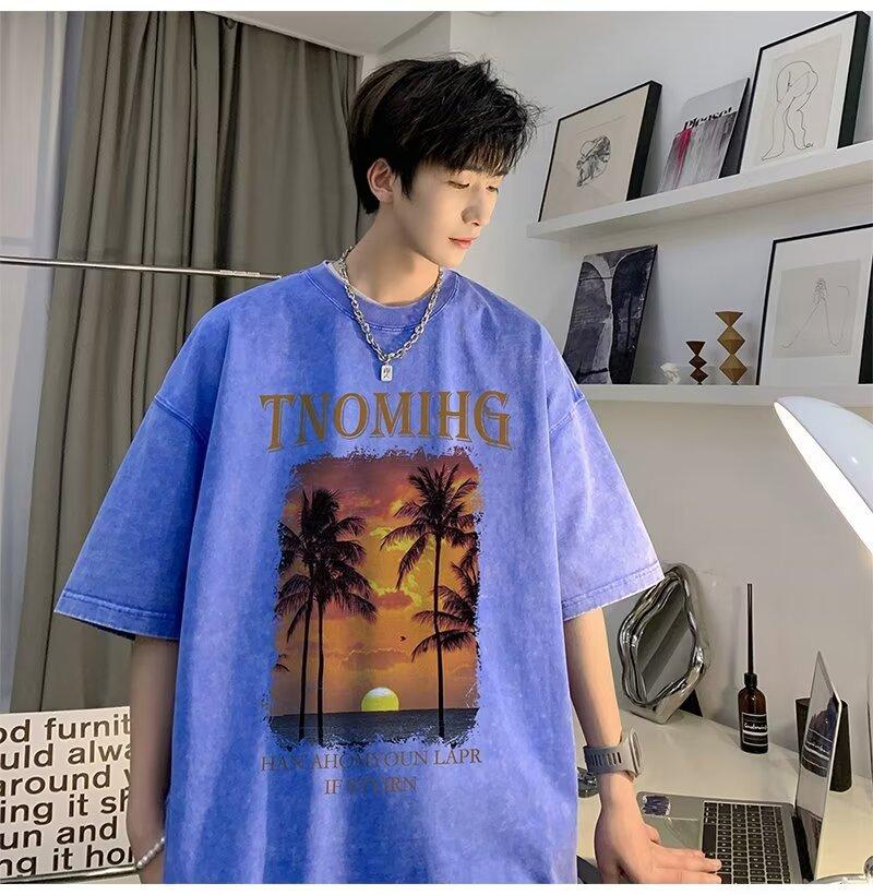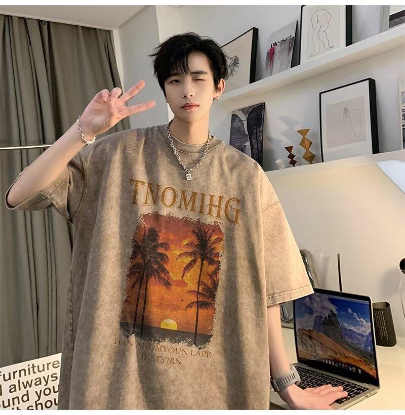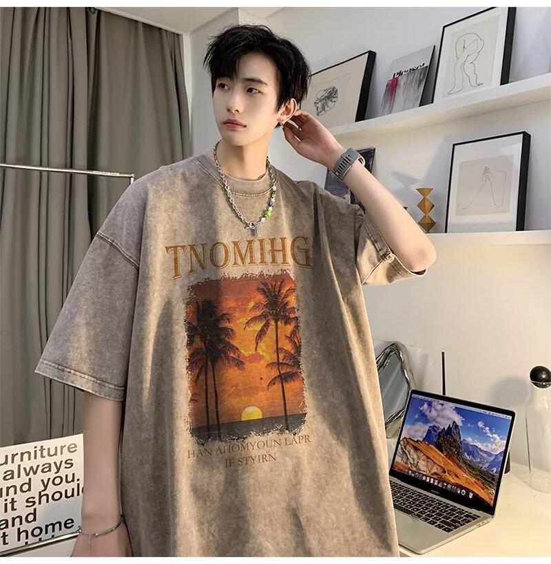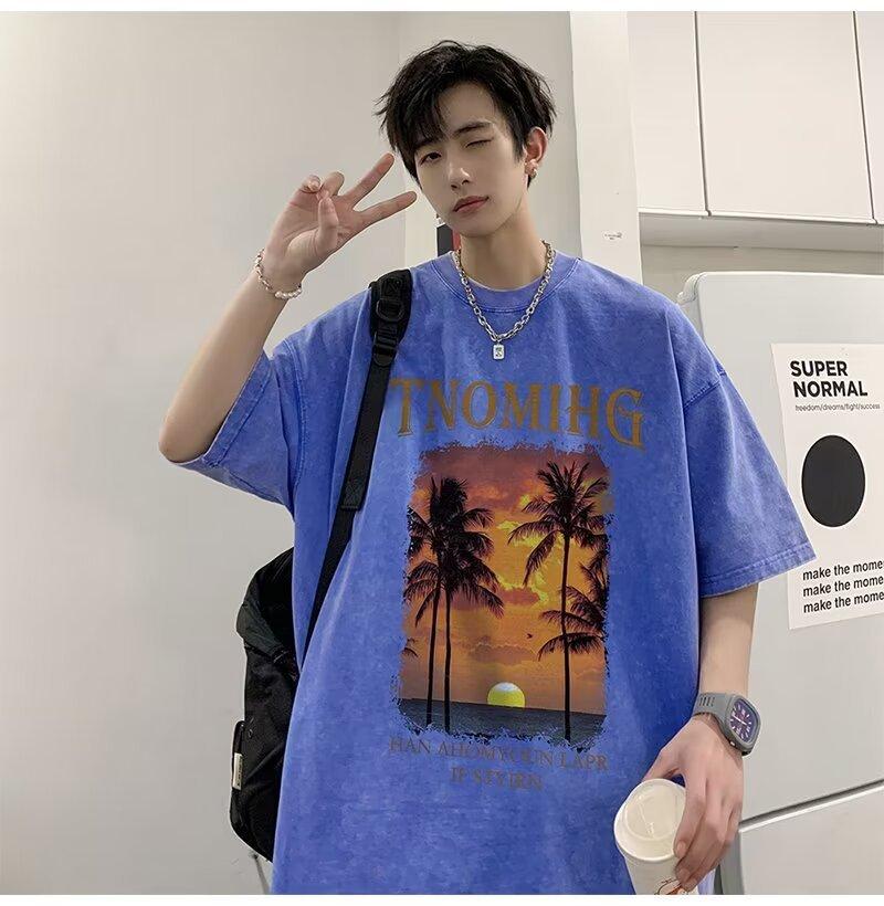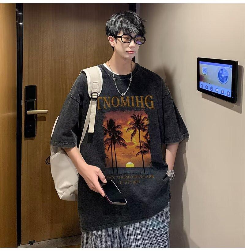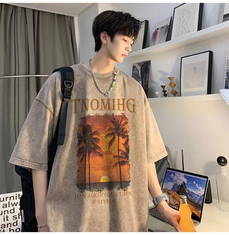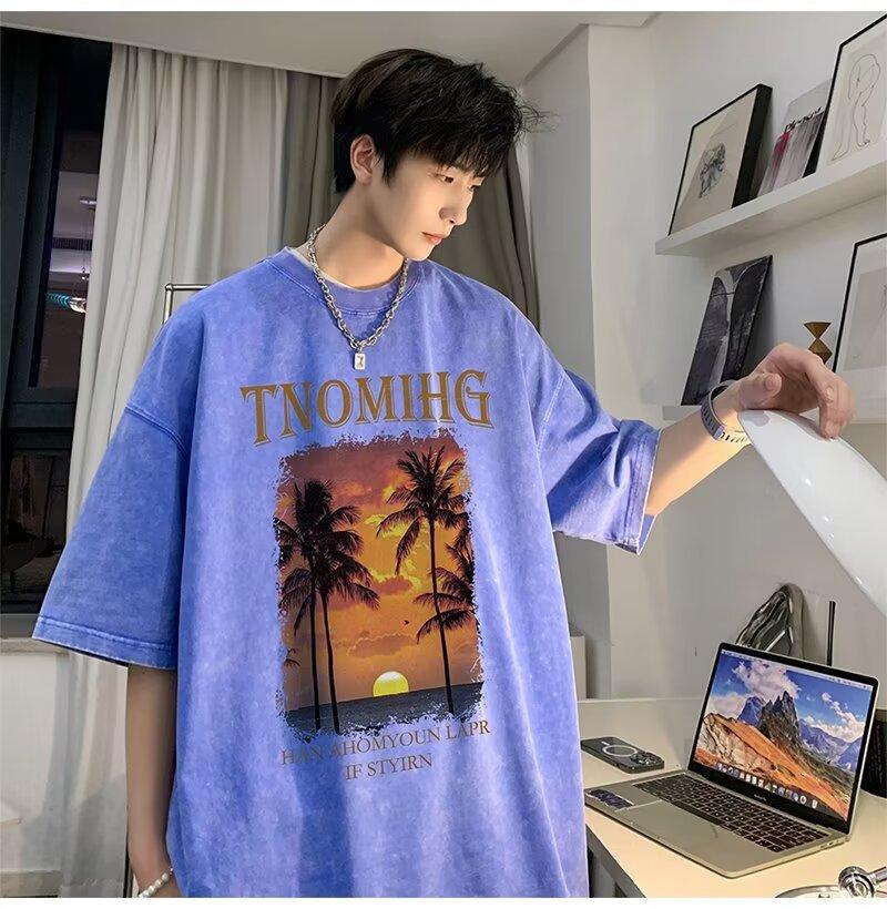 Nueva camiseta de manga corta para hombre, estilo coreano de verano, moderna, estampada, de algodón de media manga, holgada, informal, de marca.