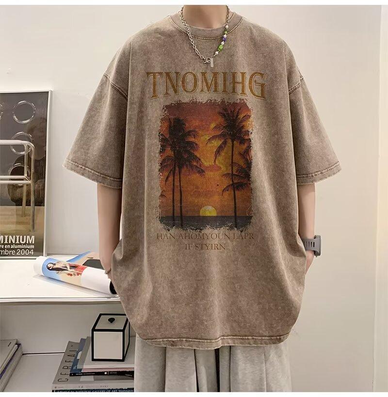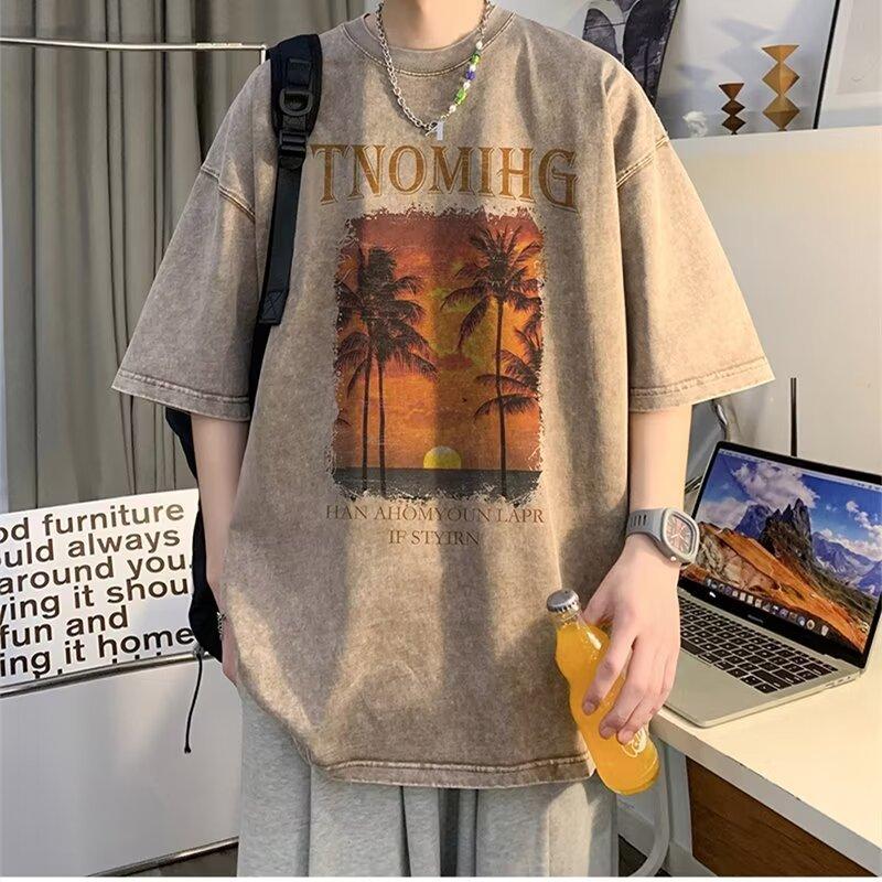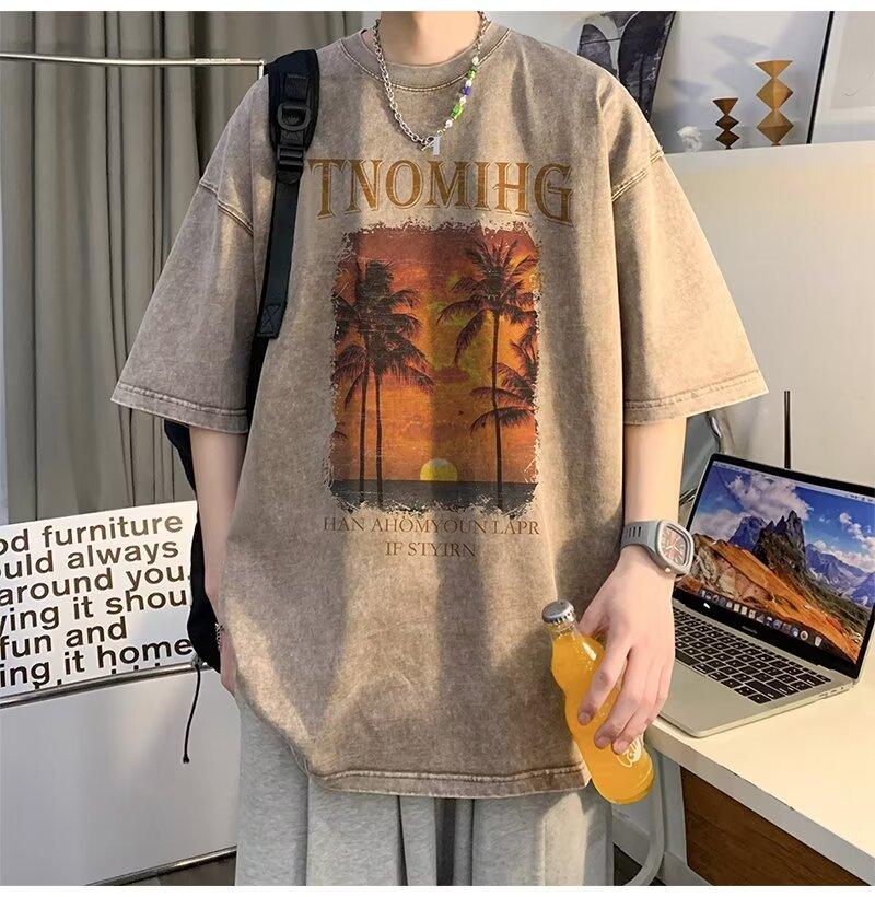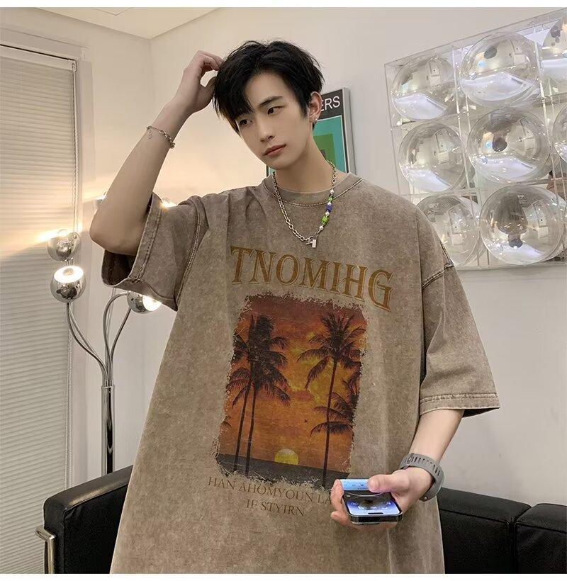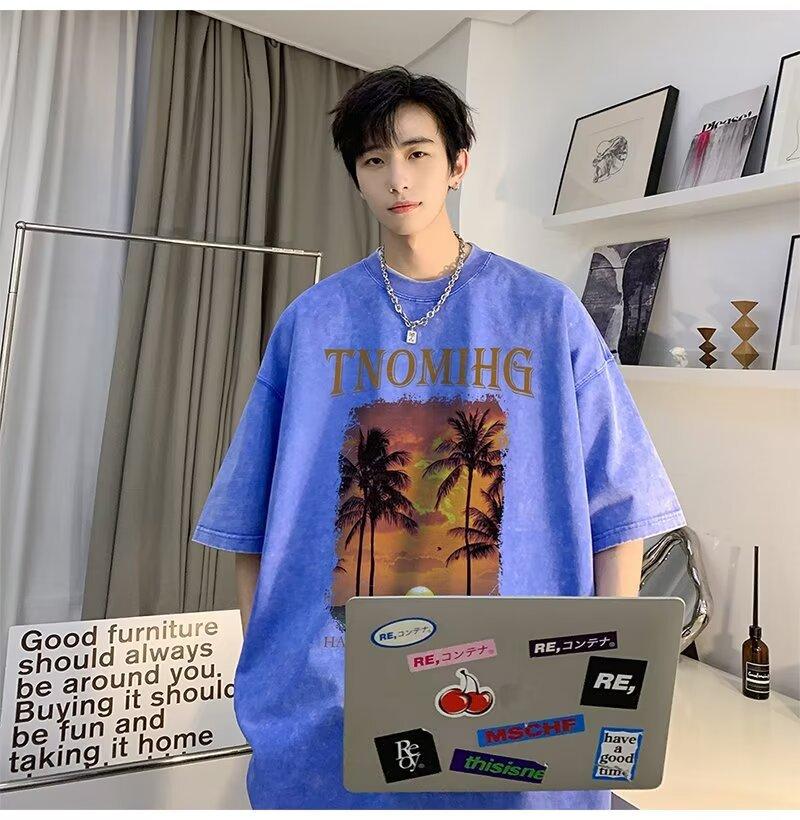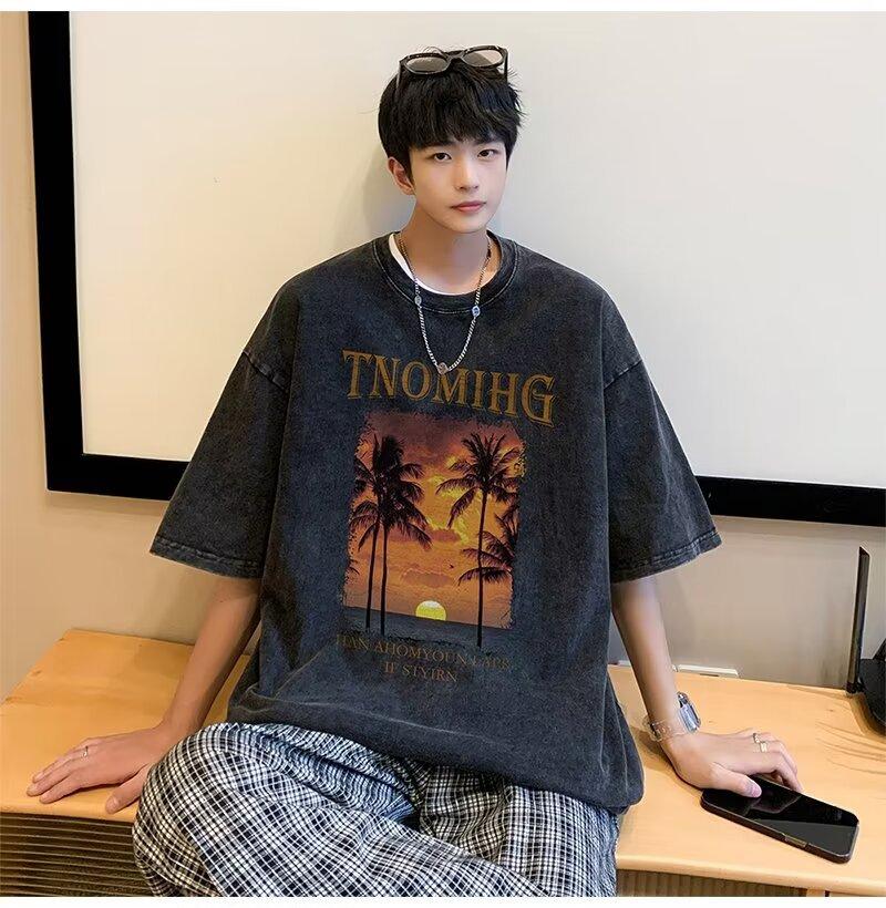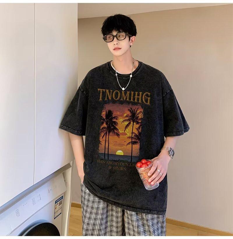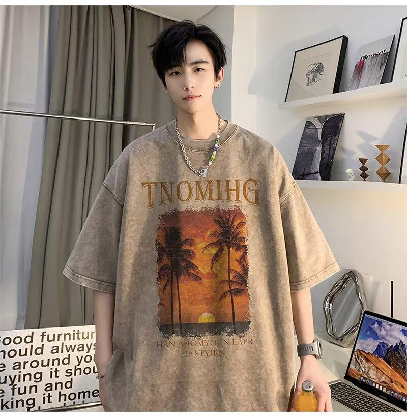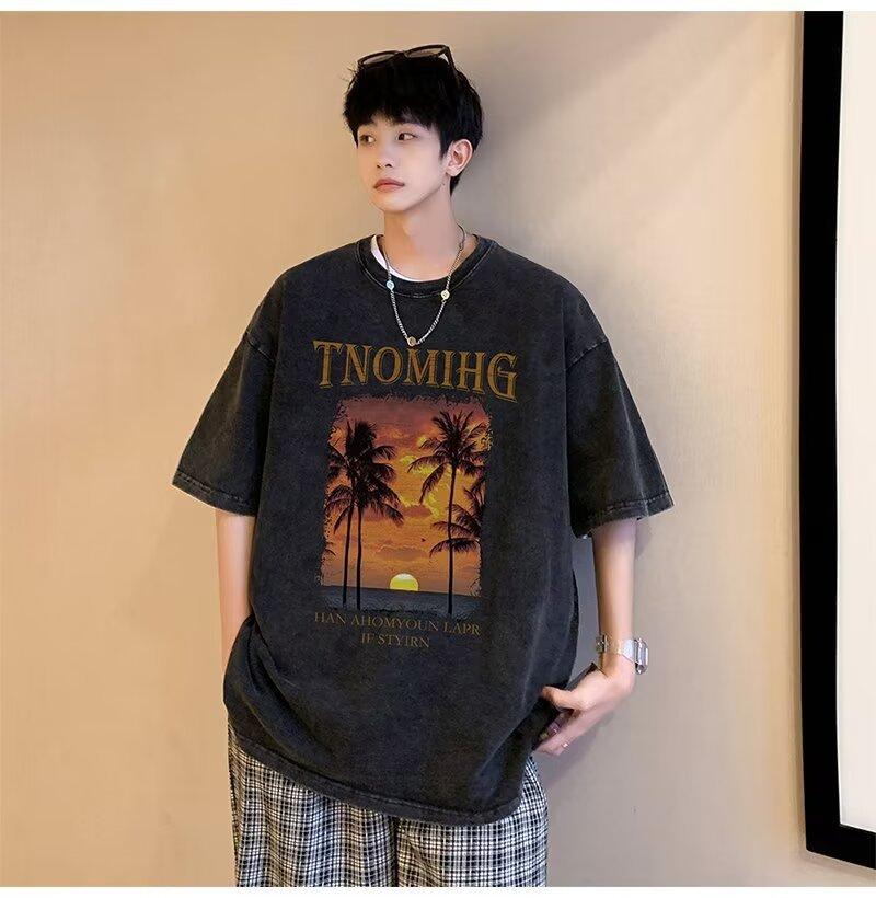 Nueva camiseta de manga corta para hombre, estilo coreano de verano, moderna, estampada, de algodón de media manga, holgada, informal, de marca.