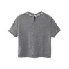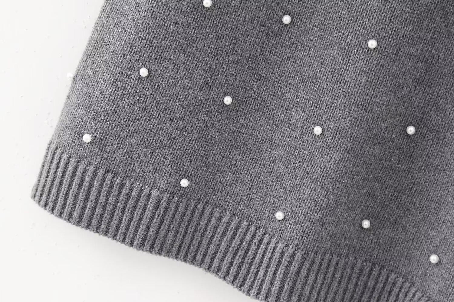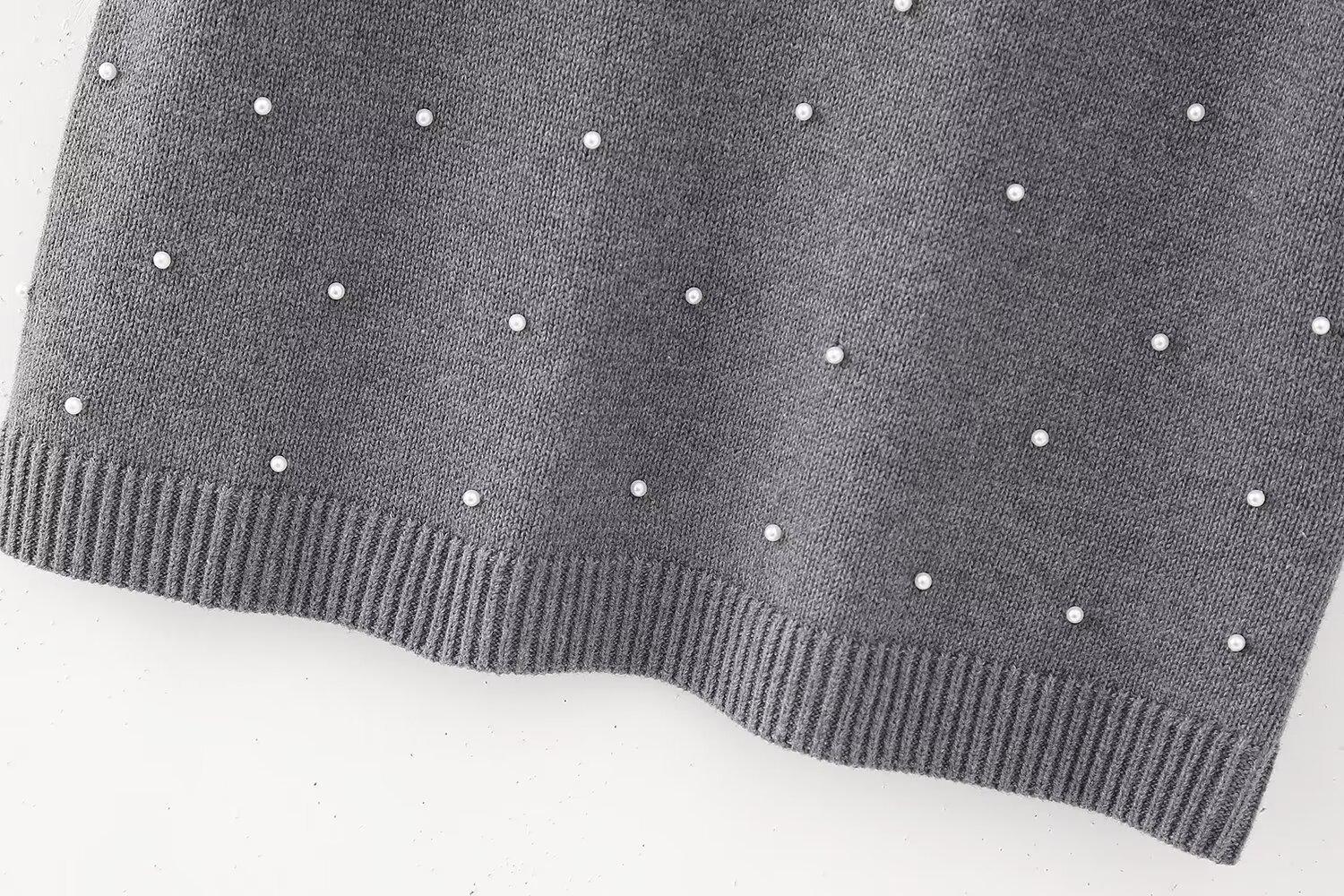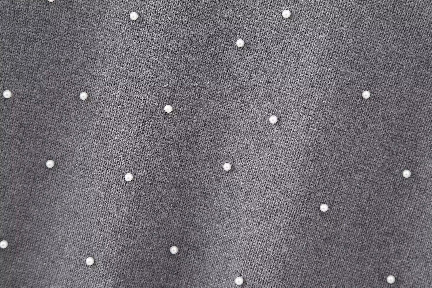 Compra Suéter de punto de manga corta con cuello redondo y perlas artificiales grises de moda transfronteriza europea y americana para mujer primavera y verano 2024 al por mayor en Joom.pro