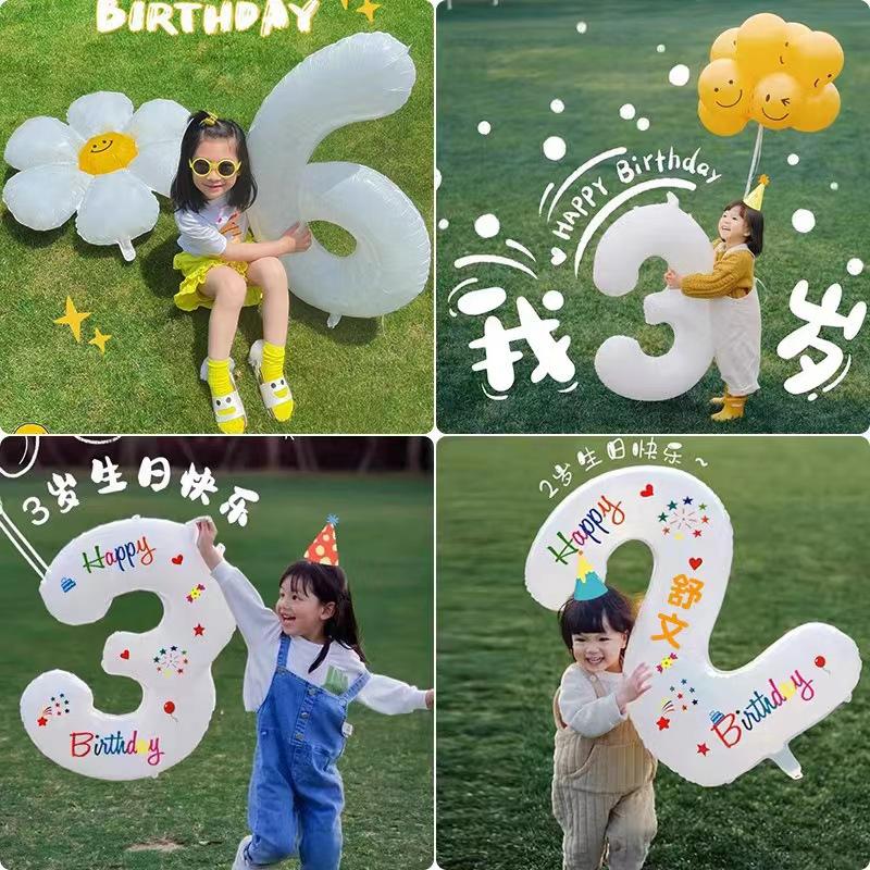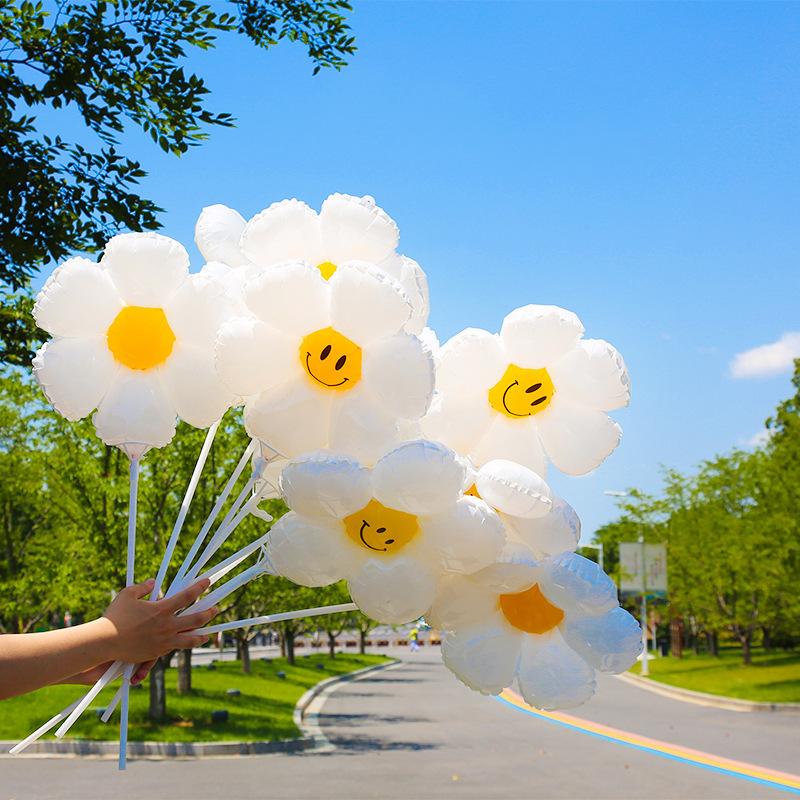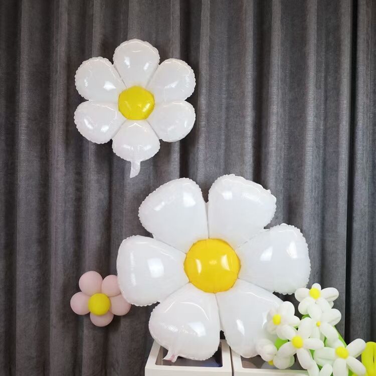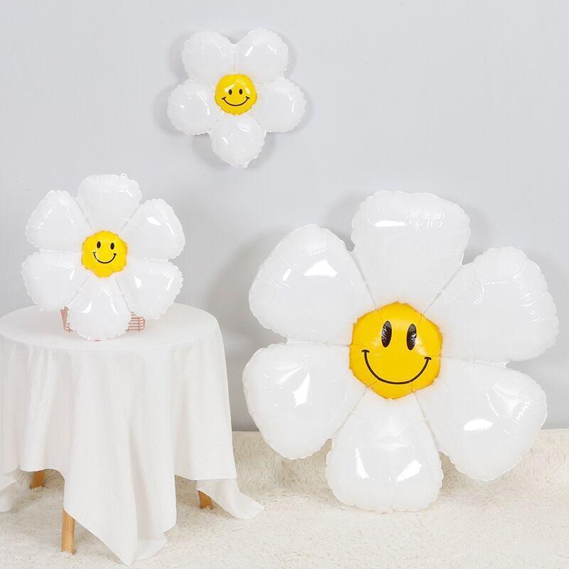 Globo de aluminio con forma de margarita y expresión sonriente para fotos digitales de cumpleaños de bebé