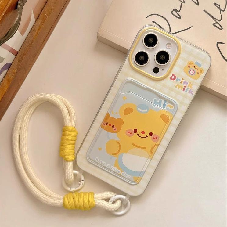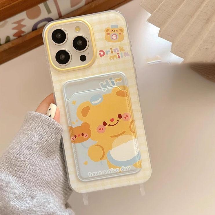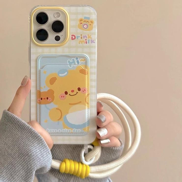 Funda con diseño de oso de mantequilla para Apple Pro Max de 15 pulgadas, iPhone 16, orificio grande, 14 ranuras para tarjetas, 13 ranuras para cordón, 12 ranuras para tarjetas.