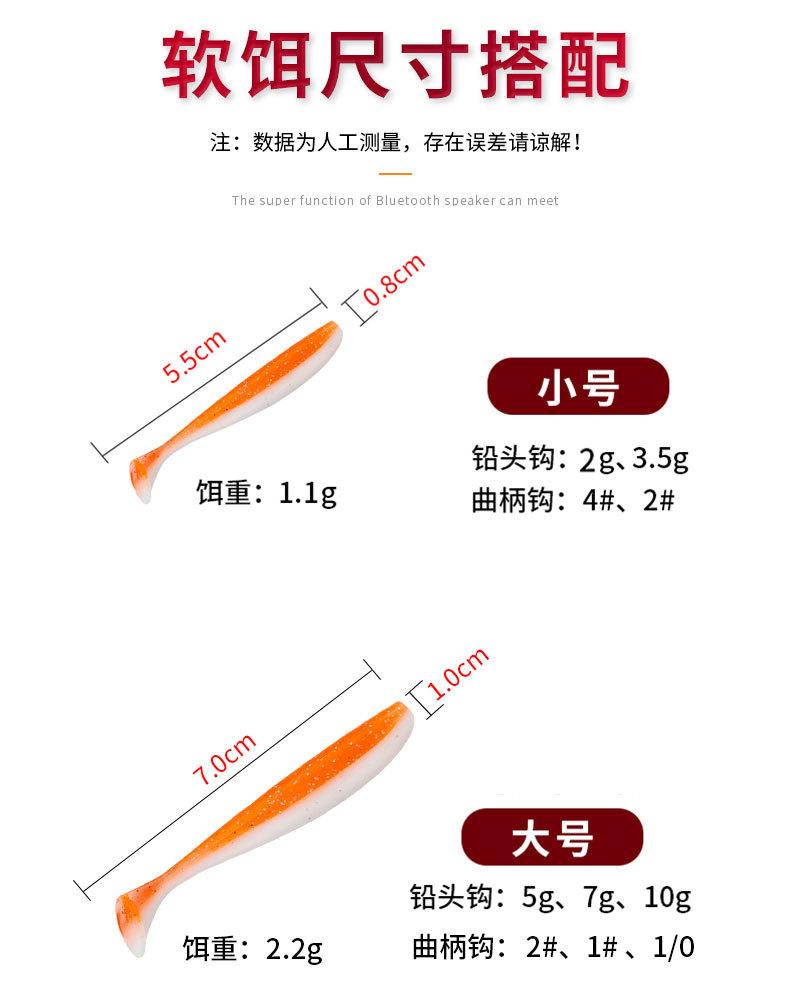 Compra Fábrica al por mayor Luya Soft Bait 2G bicolor T-tail pez blando con ranura para anzuelo pesca pez mandarín amartillado lubina bolsa de cebo falso al por mayor en Joom.pro